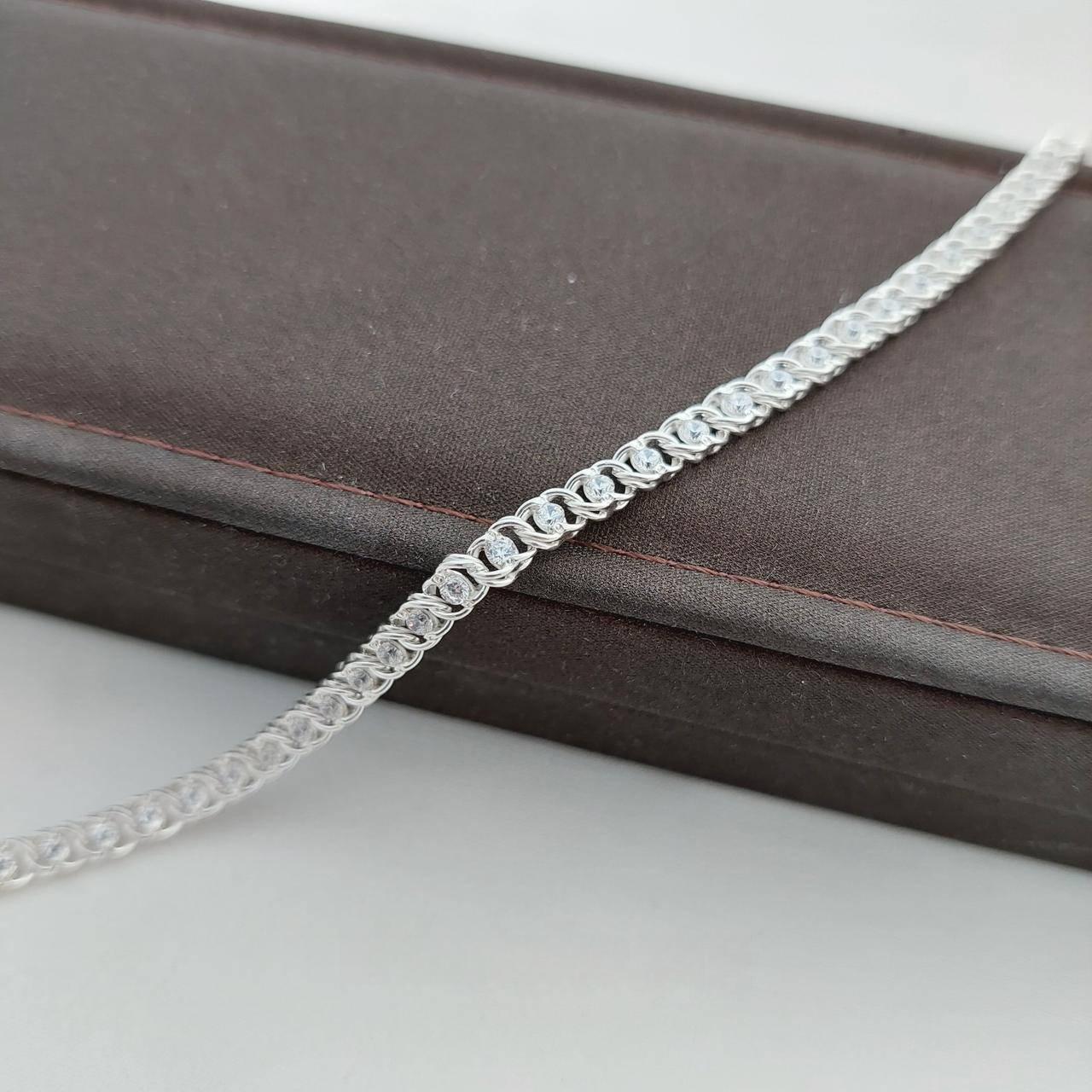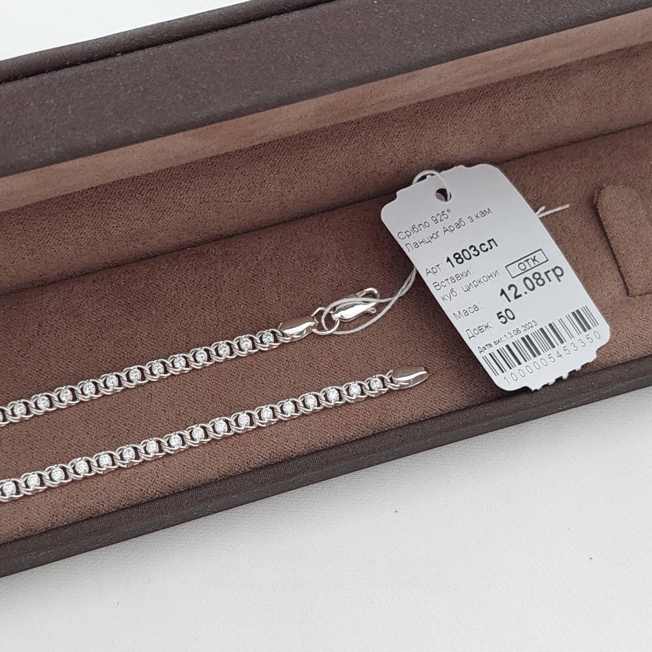Срібний ланцюжок з плетінням Арабський Бісмарк та цирконами 1803сл-2 50см - це вишукана та витончена прикраса, яка додасть вашому стилю неповторного шарму та вишуканості. Цікаве плетіння Арабський Бісмарк надає цьому ланцюжку унікального вигляду. Він пожвавлюється блиском білих цирконів, вставлених у кожну ланку. Ці маленькі камінчики гарно мерехтять і переливаються при потраплянні на них світла, додаючи вашому образу яскравого акценту. Ланцюжок зі срібла з плетінням Арабський Бісмарк і цирконами 1803сл-2 50см ідеально доповнить ваш вигляд, незалежно від того, в чому ви перебуваєте. Вона розбавить строгість ділового костюма, додасть нотку блиску повсякденному вбранню і додасть елегантності образу для вечірнього заходу. Срібло і білі циркони поєднуються класично і гармонійно, роблячи цей ланцюжок універсальним аксесуаром.. Виготовлений ланцюжок зі срібла 925 проби, тому він довго залишатиметься таким наче ви його щойно купили. Але все-таки мінімальний догляд необхідний, достатньо раз на місяць промити ланцюжок зі срібла в мильній воді та просушити рушником.
