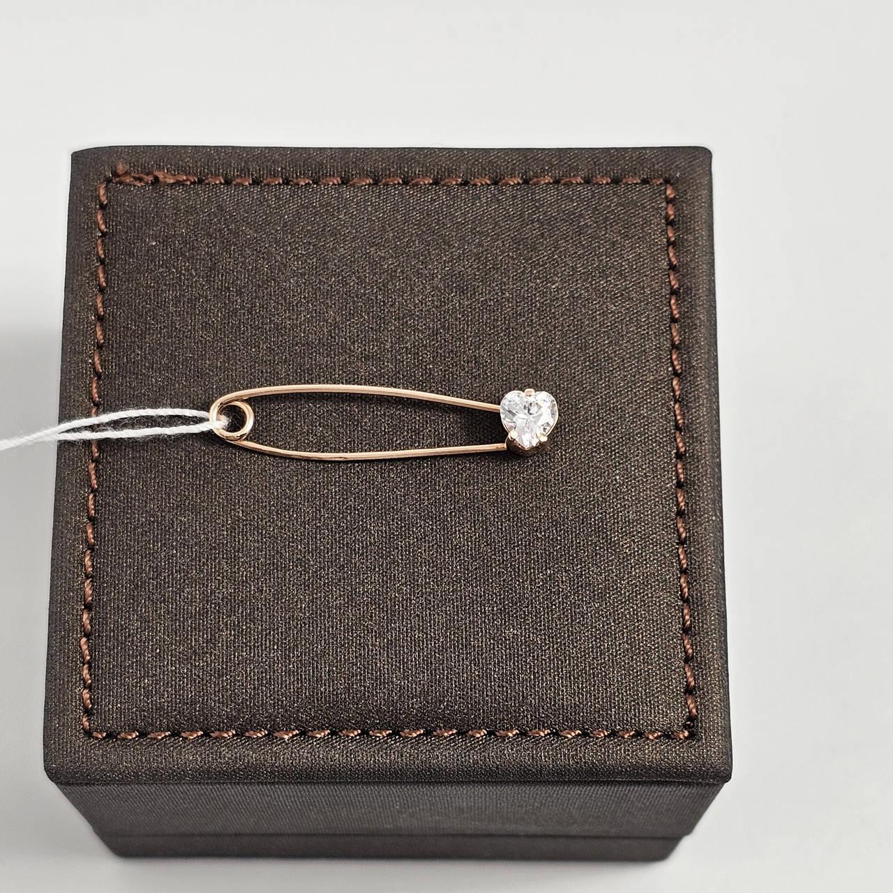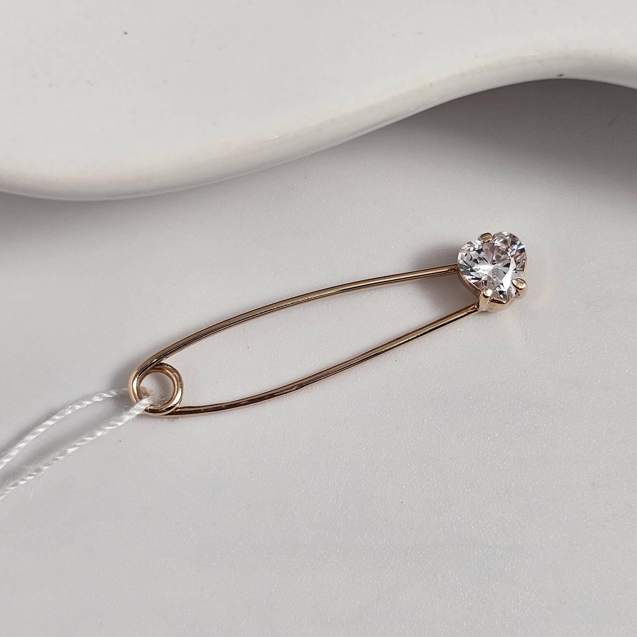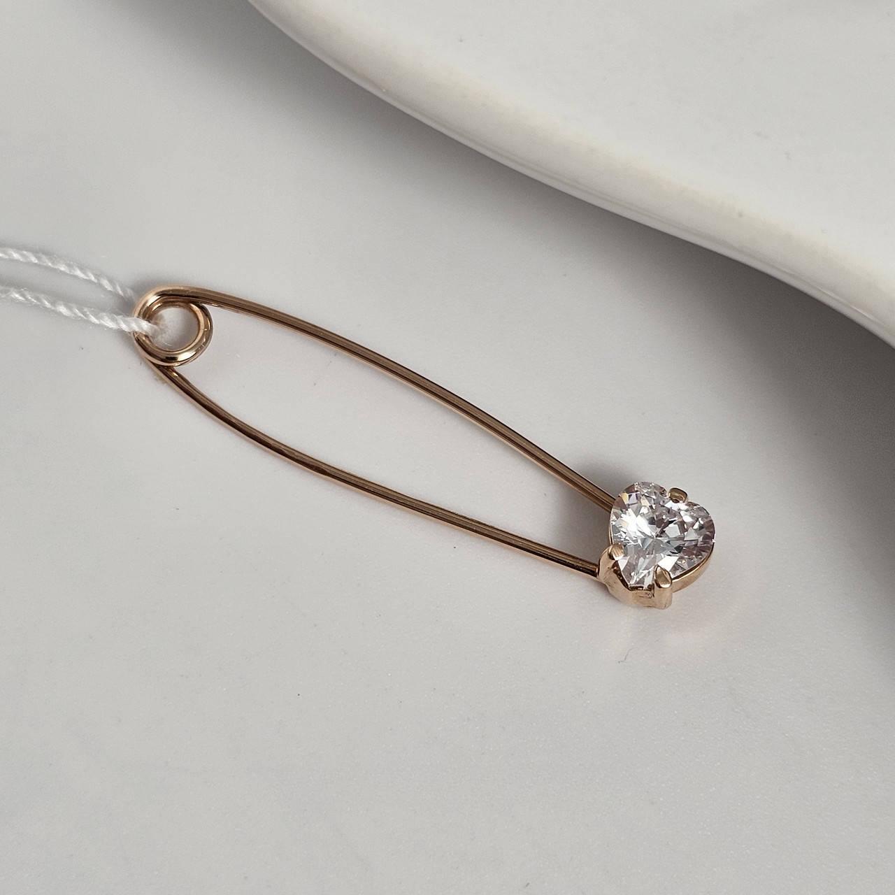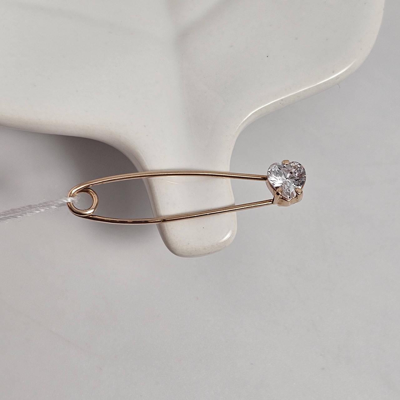 Брошка шпилька золота гладка з білим фіанітом сердечком