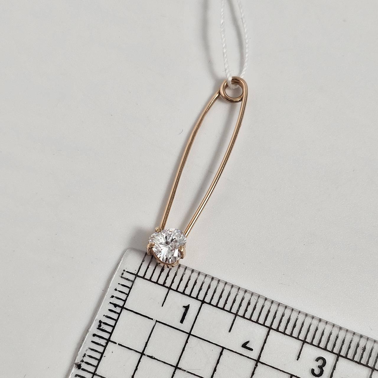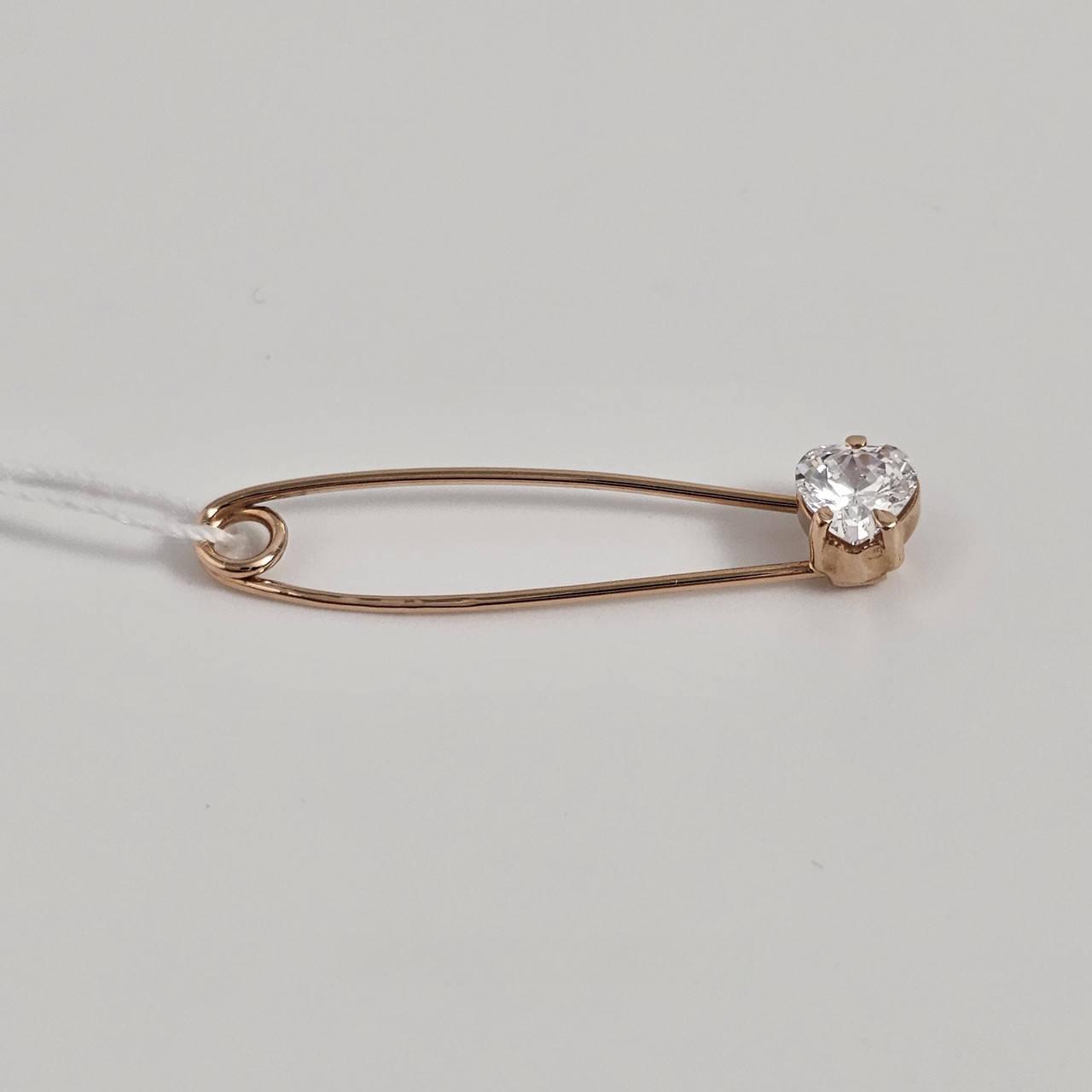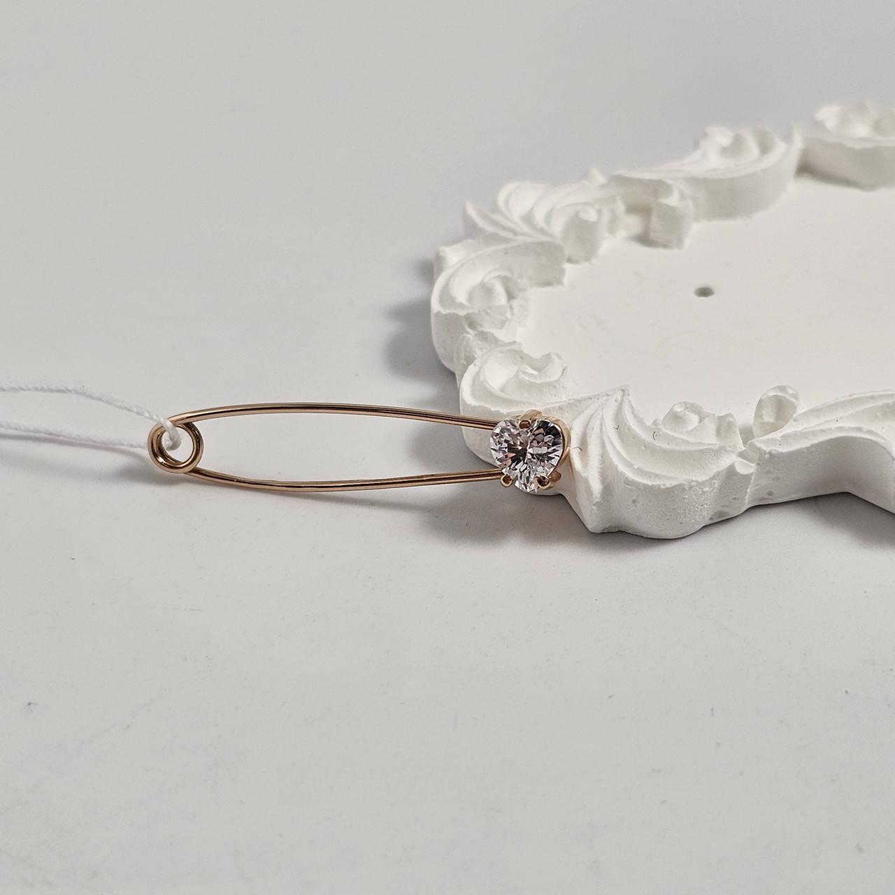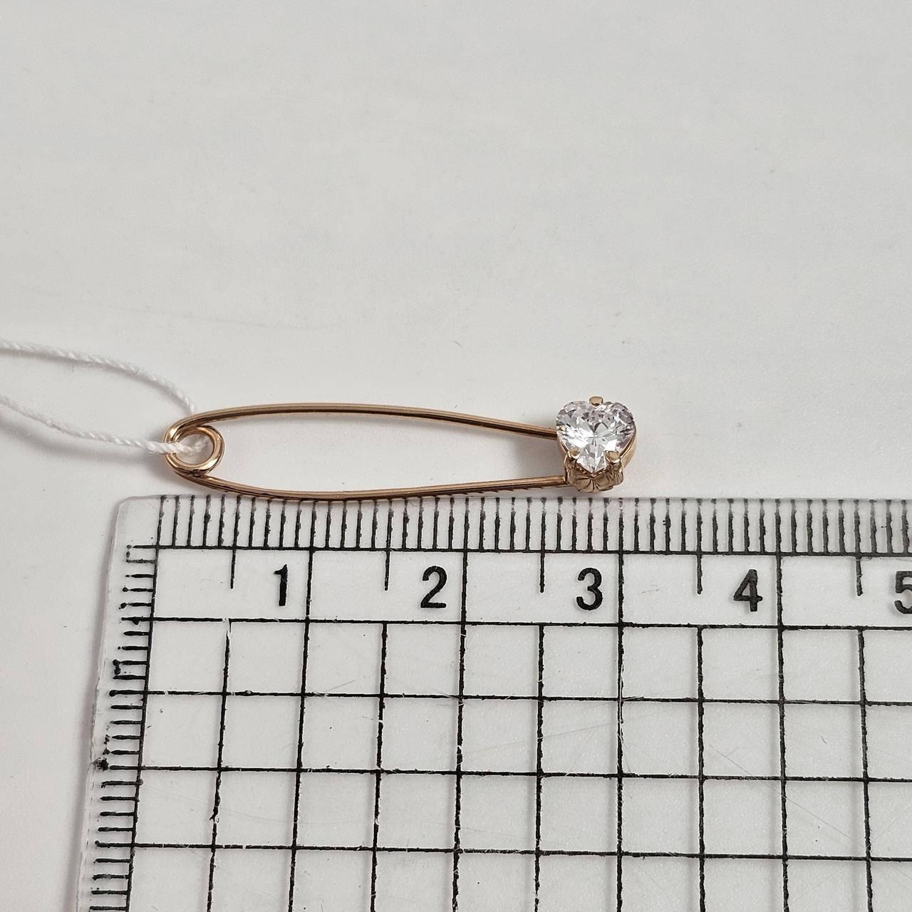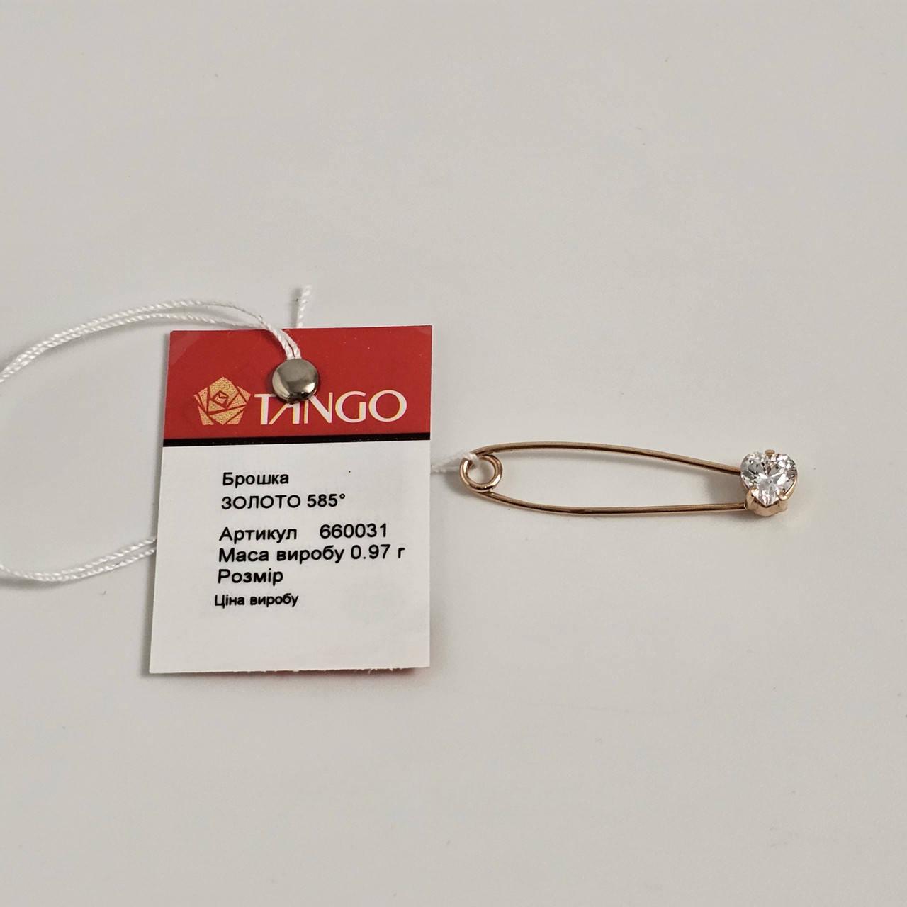Брошка шпилька золота гладка з білим фіанітом сердечком