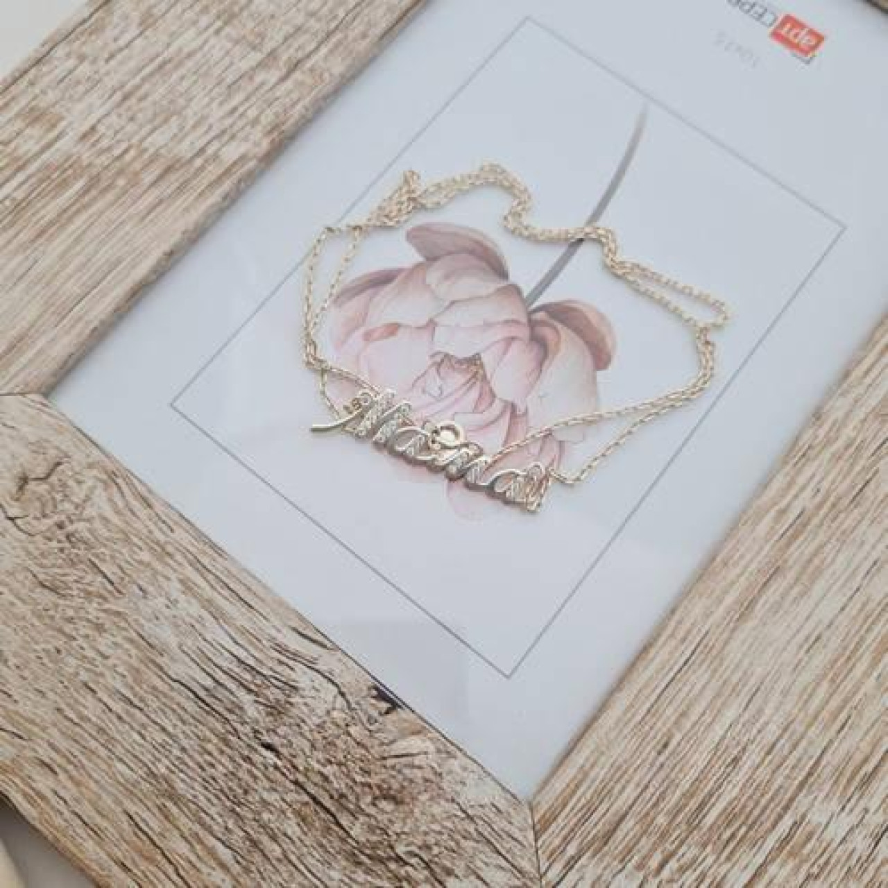 Кольє срібне тонкий ланцюжок і підвіска слово Мама з білими фіанітами 2.72