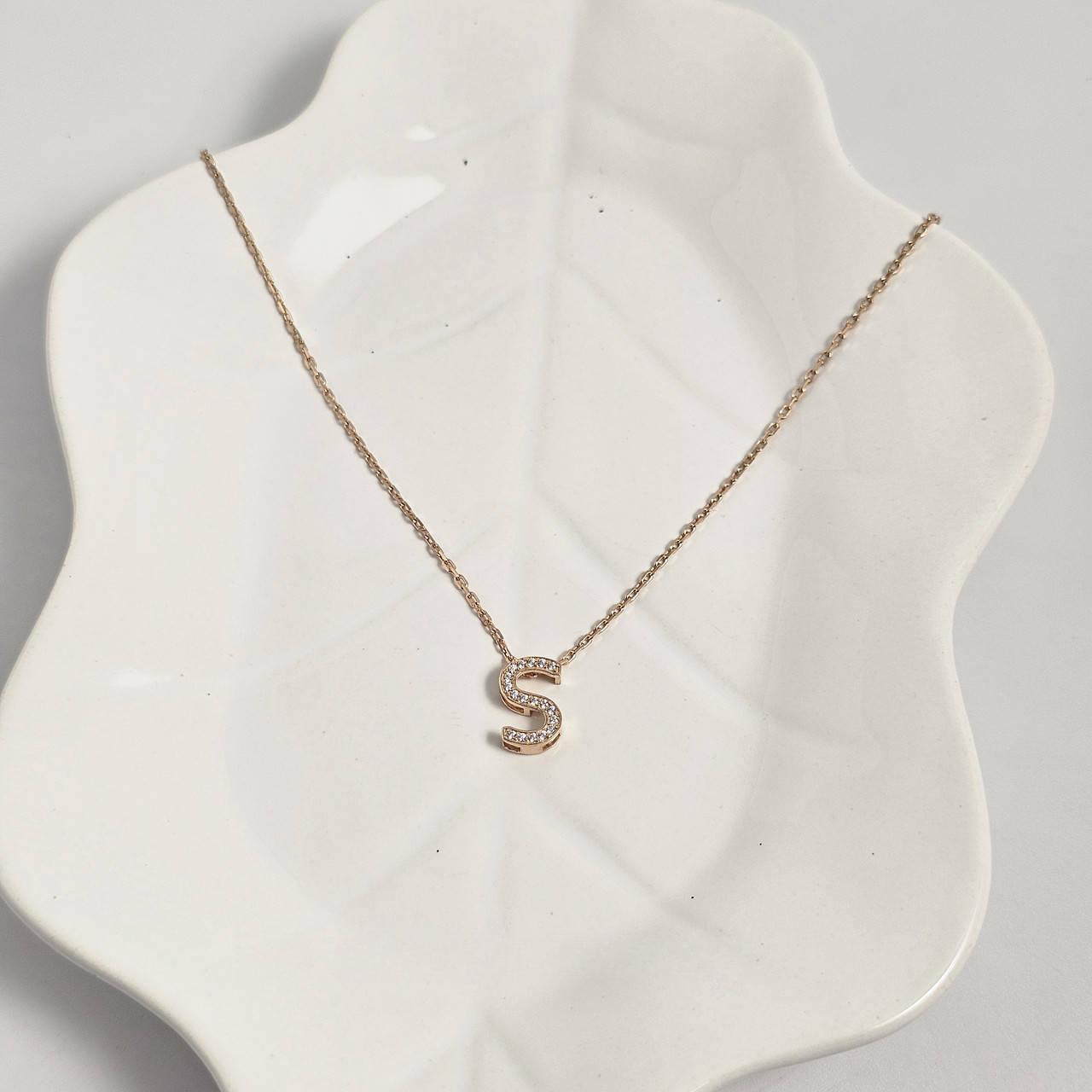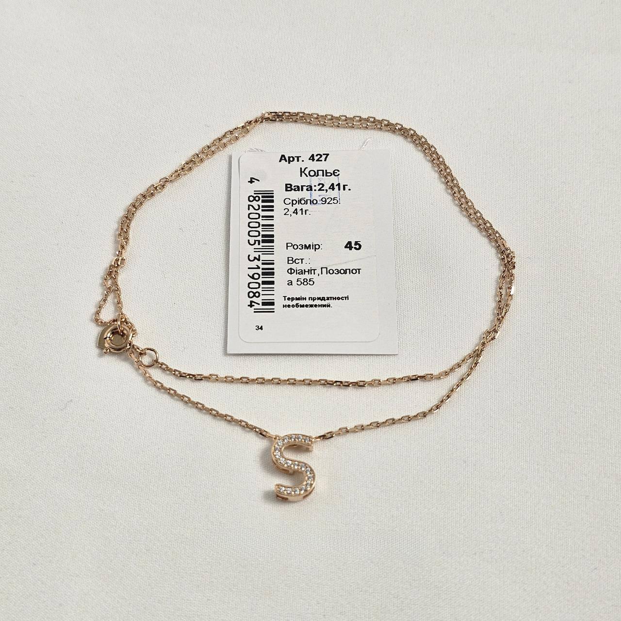 Кольє позолочений ланцюжок з підвіскою літерою S та білими фіанітами