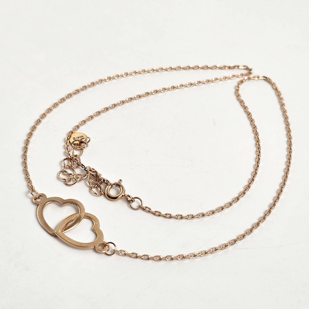 Кольє срібне з позолотою ланцюжок з підвісками двома сердечками