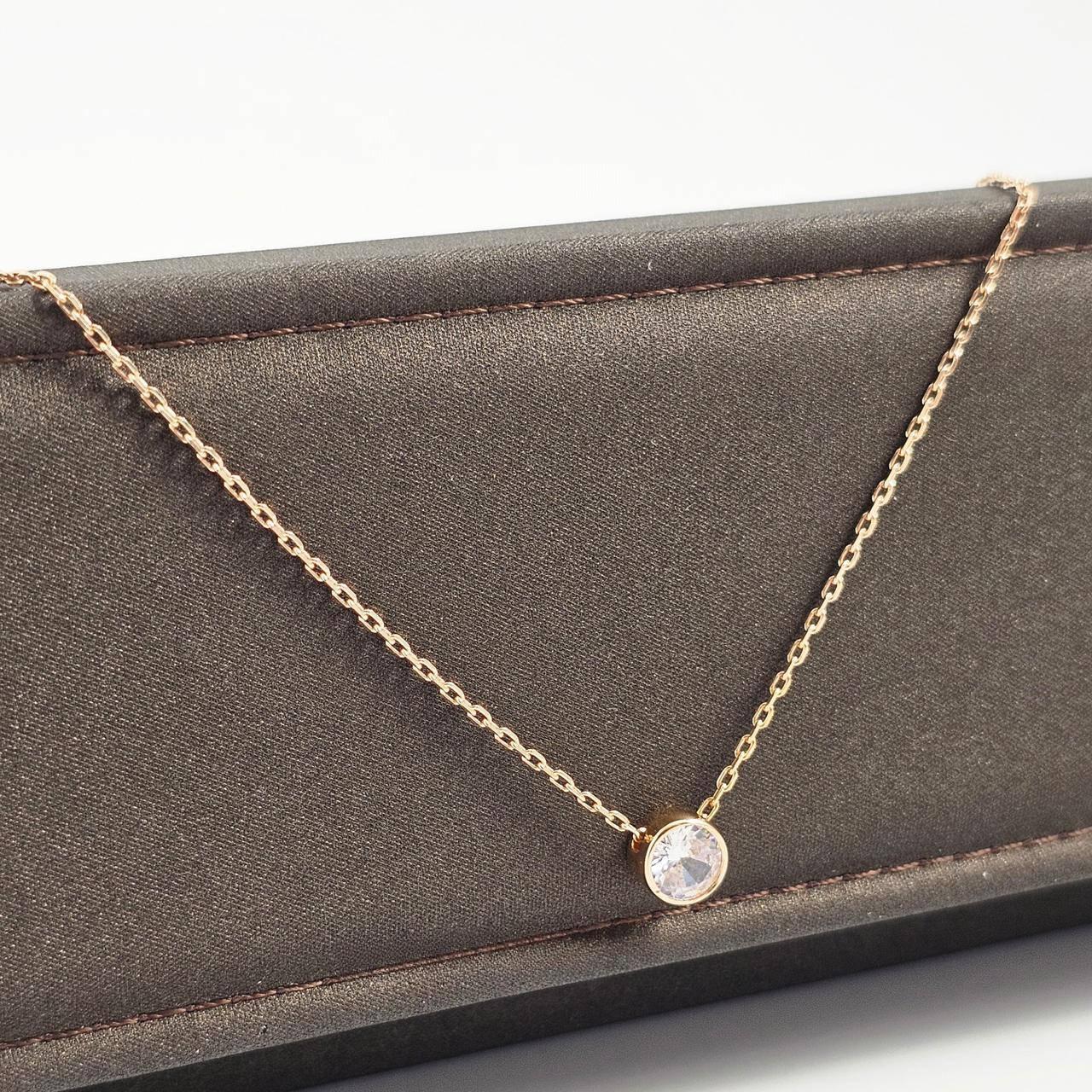 Кольє срібне з позолотою ланцюжок з підвіскою білим фіанітом