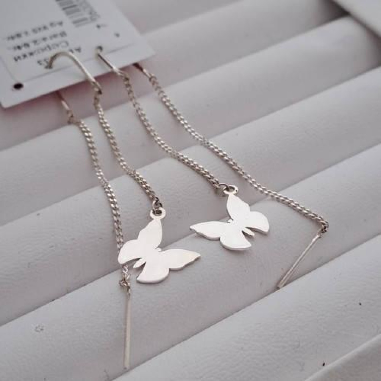 Сережки протяжки срібні з підвіскою метелик