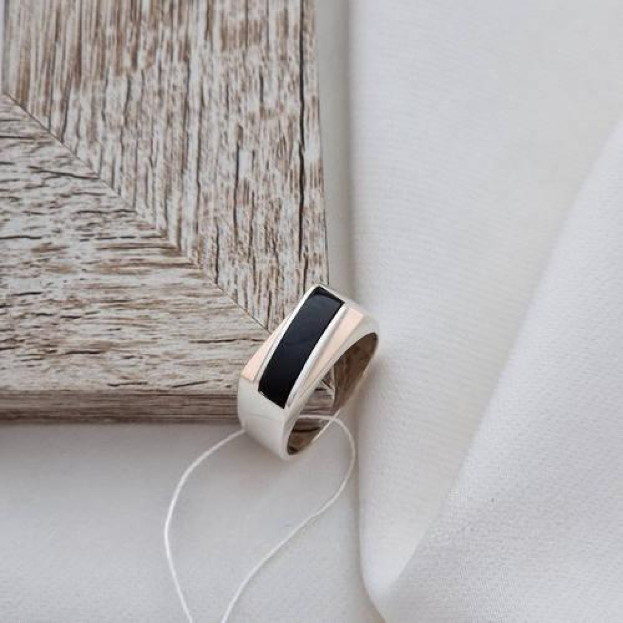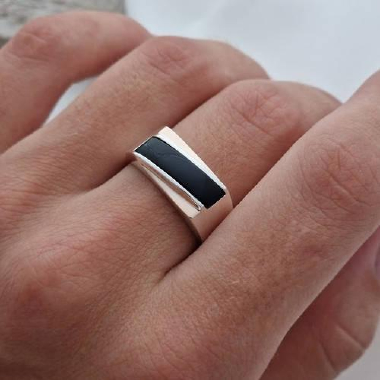 Перстень срібний чоловічий із золотими пластинами та прямокутним оніксом