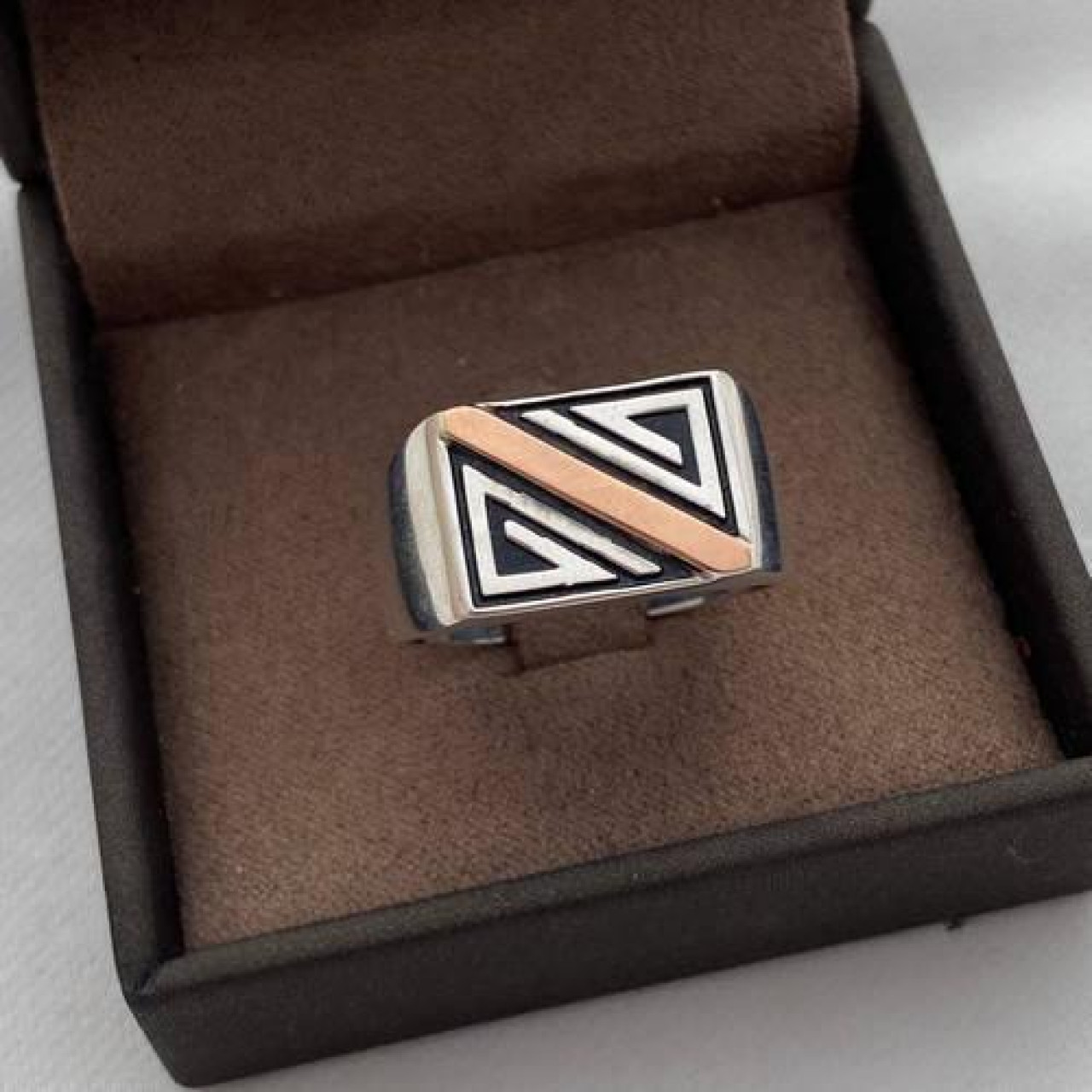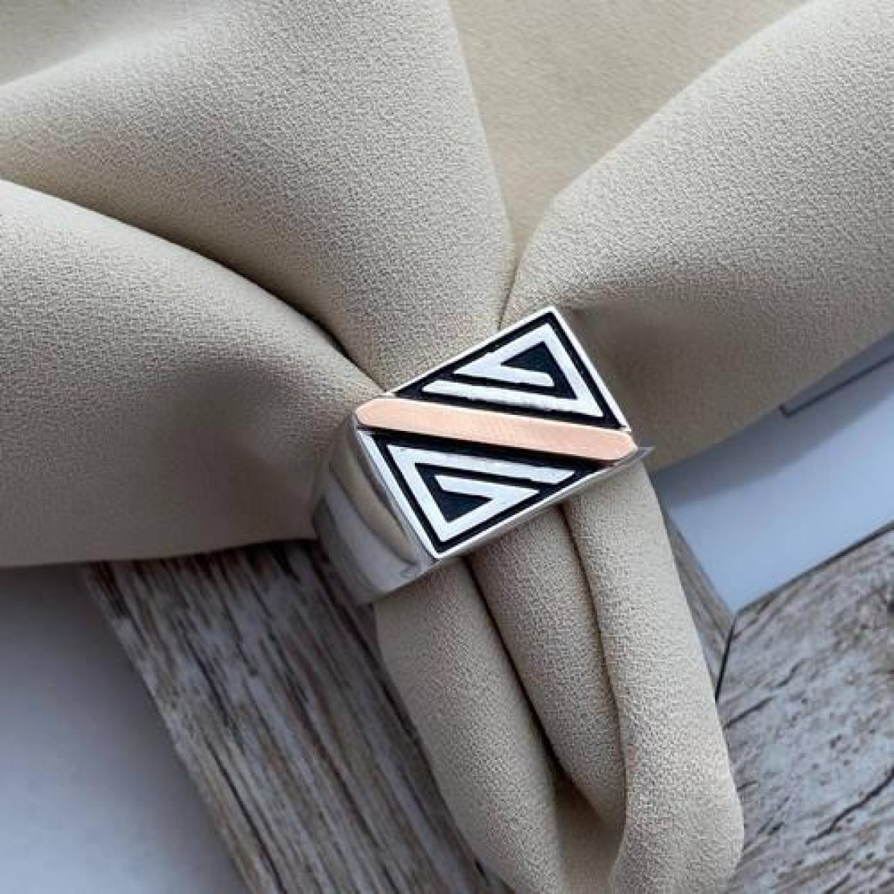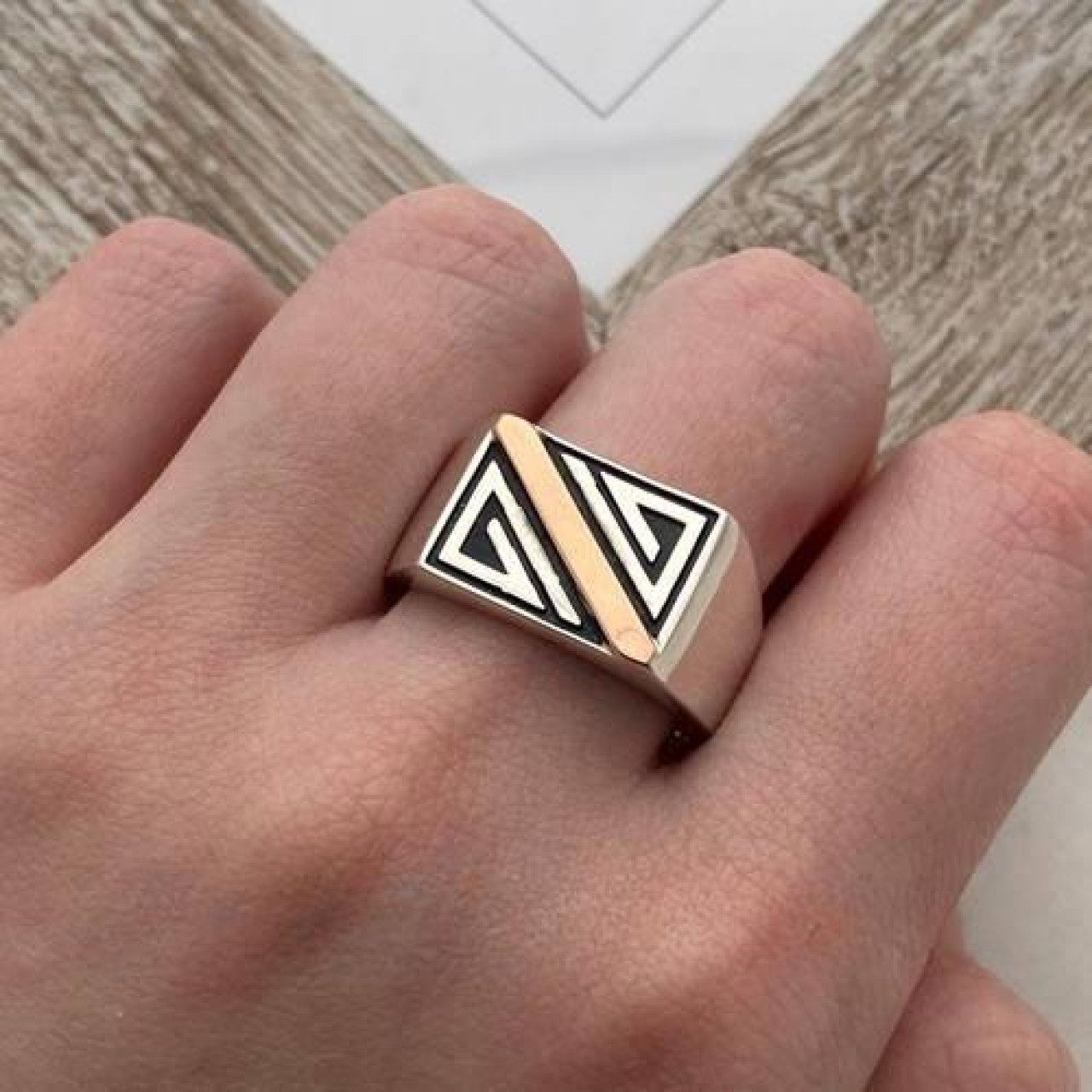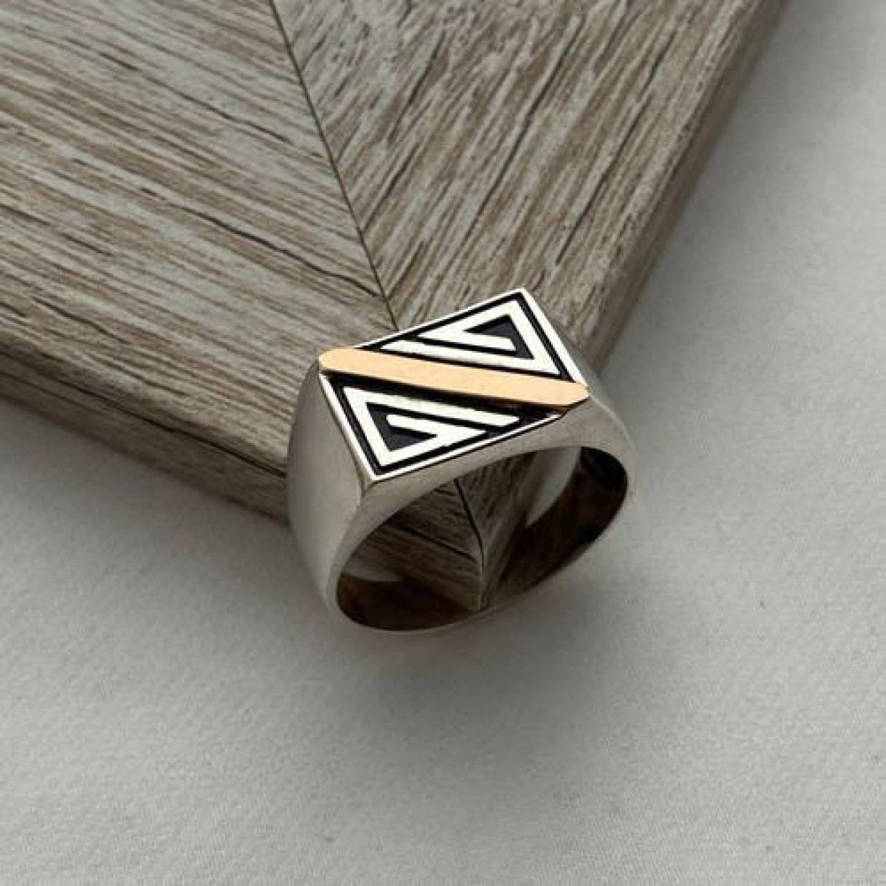 Перстень срібний із золотою пластиною та діагональним малюнком
