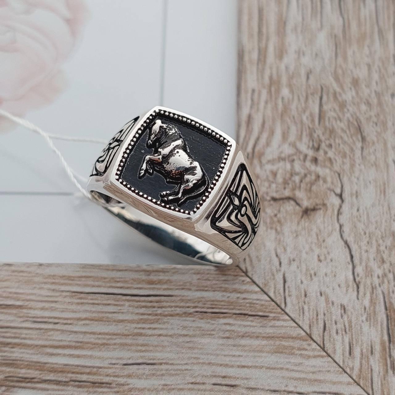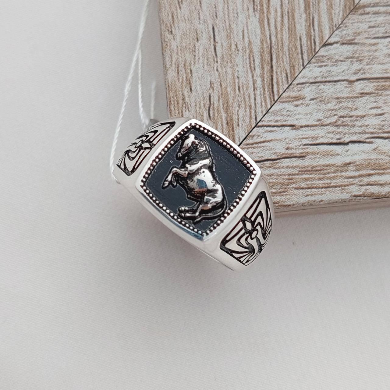 Перстень срібний чоловічий знак зодіаку Телець з чорною емаллю масивна
