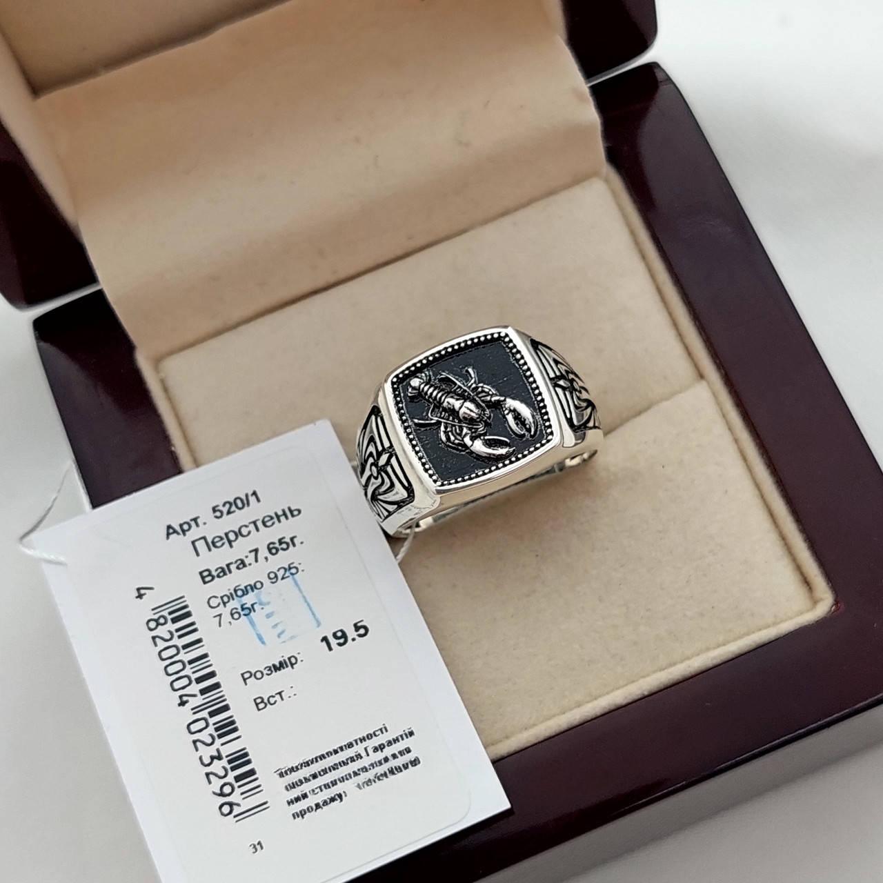 Печатка срібна чоловіча з чорною емаллю знак зодіаку Рак масивна
