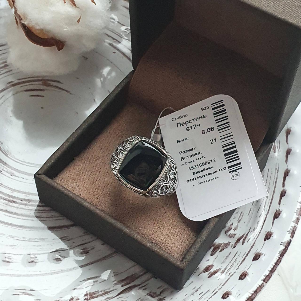 Перстень чоловічий з квадратним оніксом та орнаментом