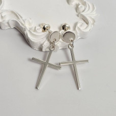 Срібні сережки пусети 391с-3 з підвісками у формі хрестиків - стильний і лаконічний аксесуар, який підкреслить індивідуальність і смак своєї власниці. Виконані з благородного срібла, вони мают..
