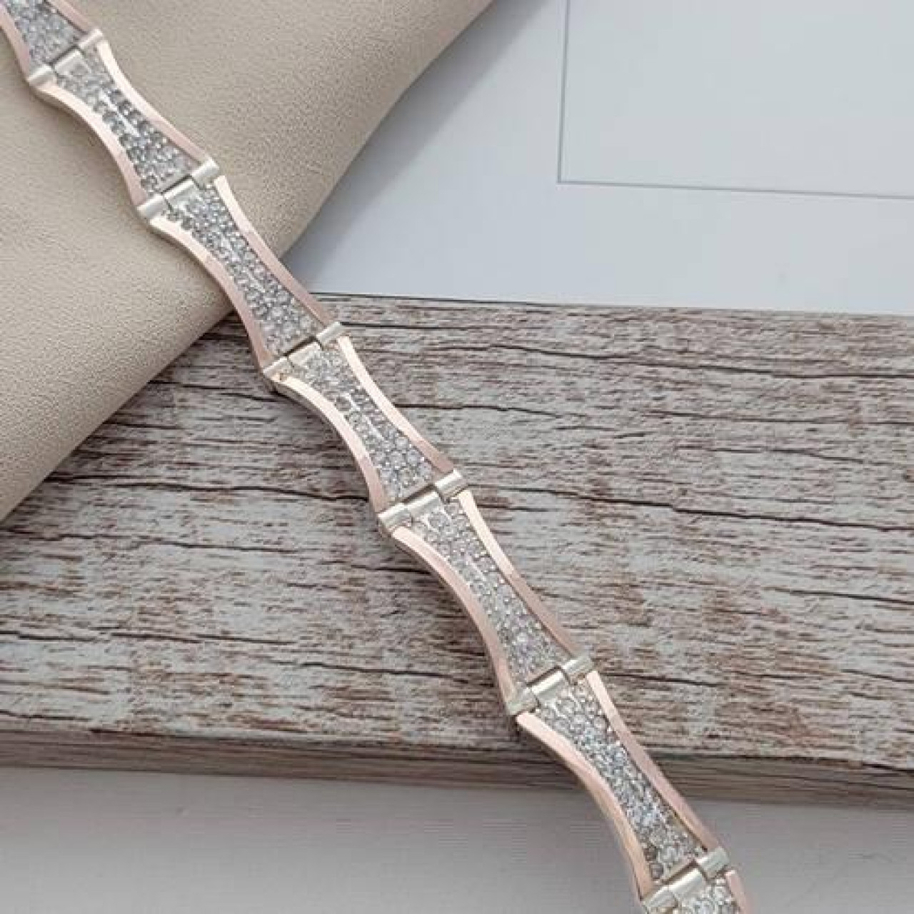 Срібний браслет із золотими вставками Бр13-Н стане гідним доповненням до будь-якого образу. Унікальність прикраси полягає в незвичній формі ланок, які надають браслету сучасного та стильного вигляду. Кожна ланка прикрашена розсипом білих цирконів, що переливаються за найменшого руху, створюючи ефект сліпучого сяйва. По краях ланки обрамлені витонченими золотими напайками, що додає прикрасі теплоти та вишуканості. Таке поєднання благородних матеріалів і сяючих каменів робить браслет воістину універсальним аксесуаром. Браслет зі срібла та золота Бр13-Н чудово впишеться в повсякденний гардероб, надаючи образу легкий акцент витонченої розкоші, і стане гармонійним доповненням святкового вбрання, підкреслюючи вашу елегантність. Доглядати за браслетом зі срібла 925 проби та золота 375 проби дуже просто, достатньо один раз на місяць промити його в мильній воді та просушити рушником.