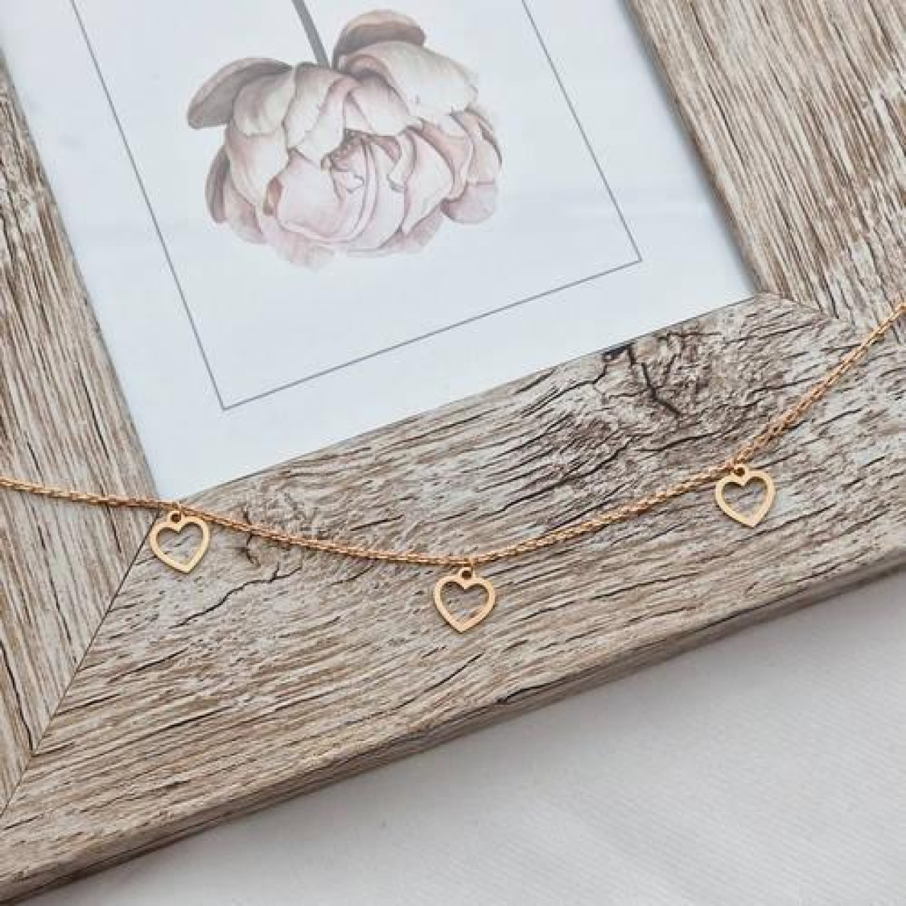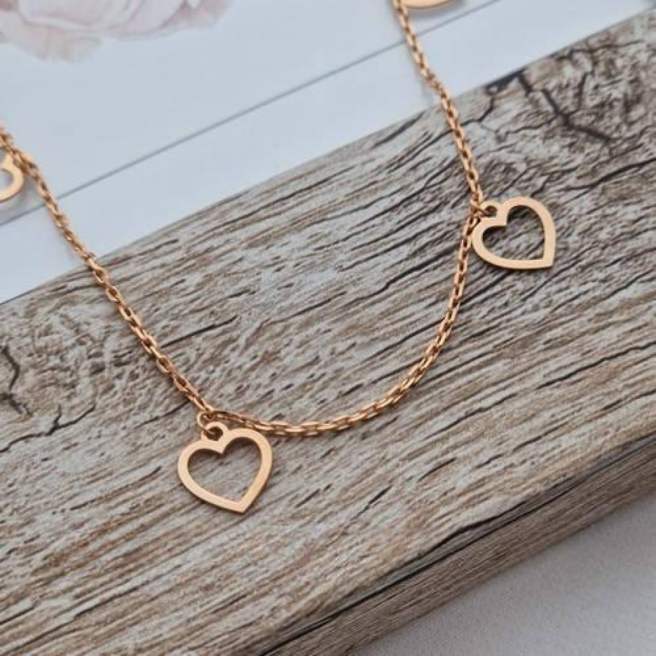 Браслет на ногу позолочений ланцюжок з підвісками сердечками