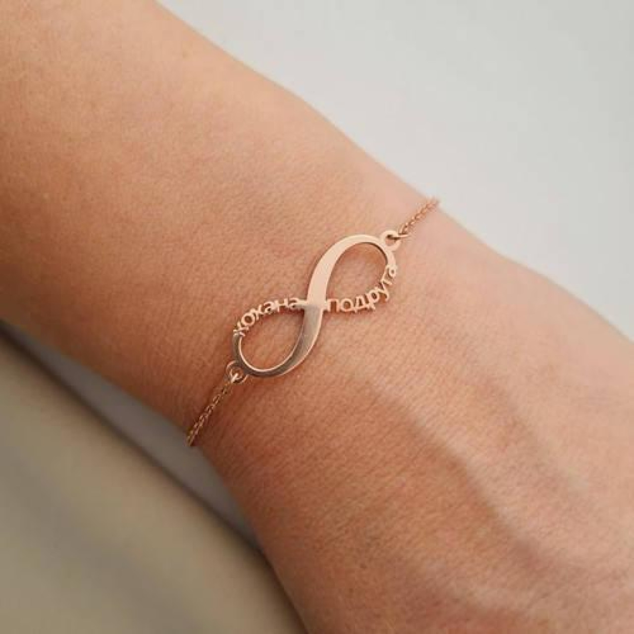 Браслет позолочений ланцюжок і підвіска знак нескінченність з написом кохана подруга