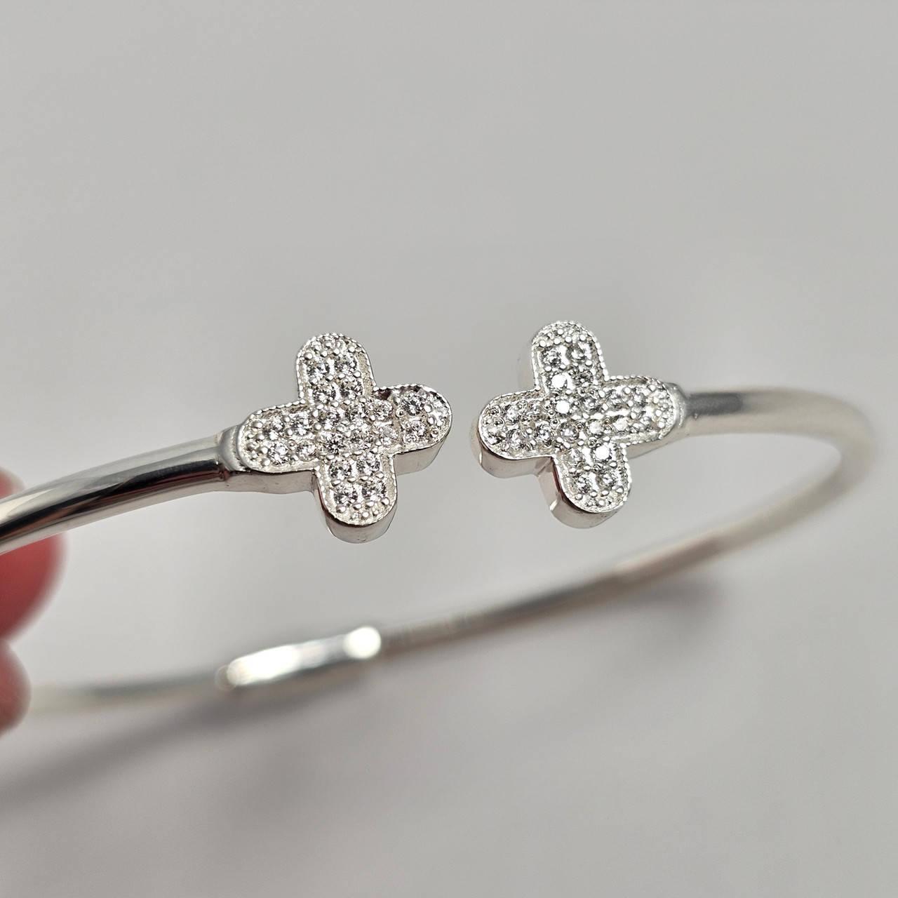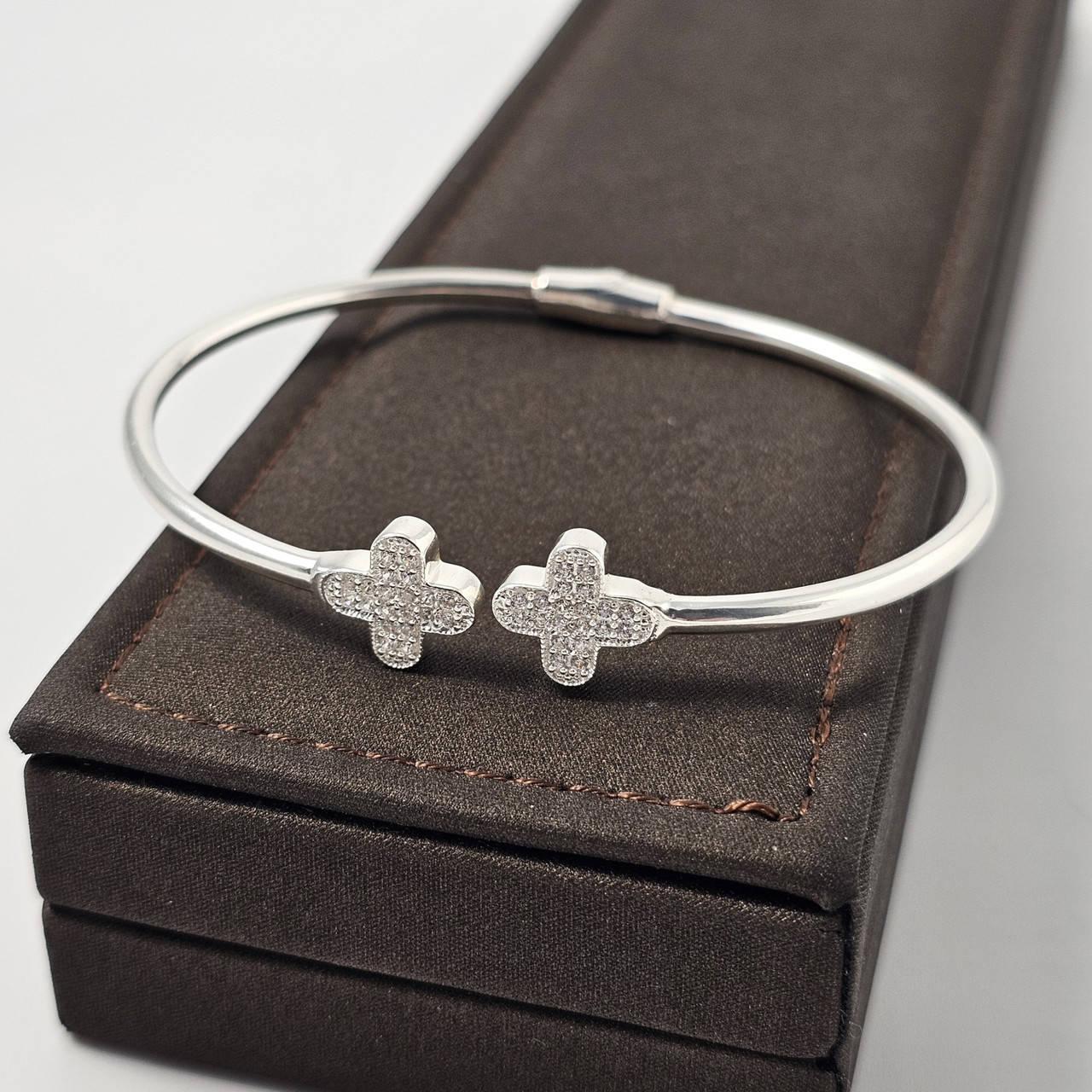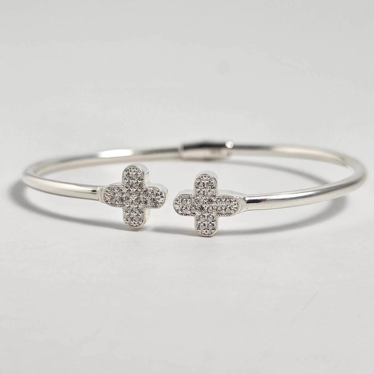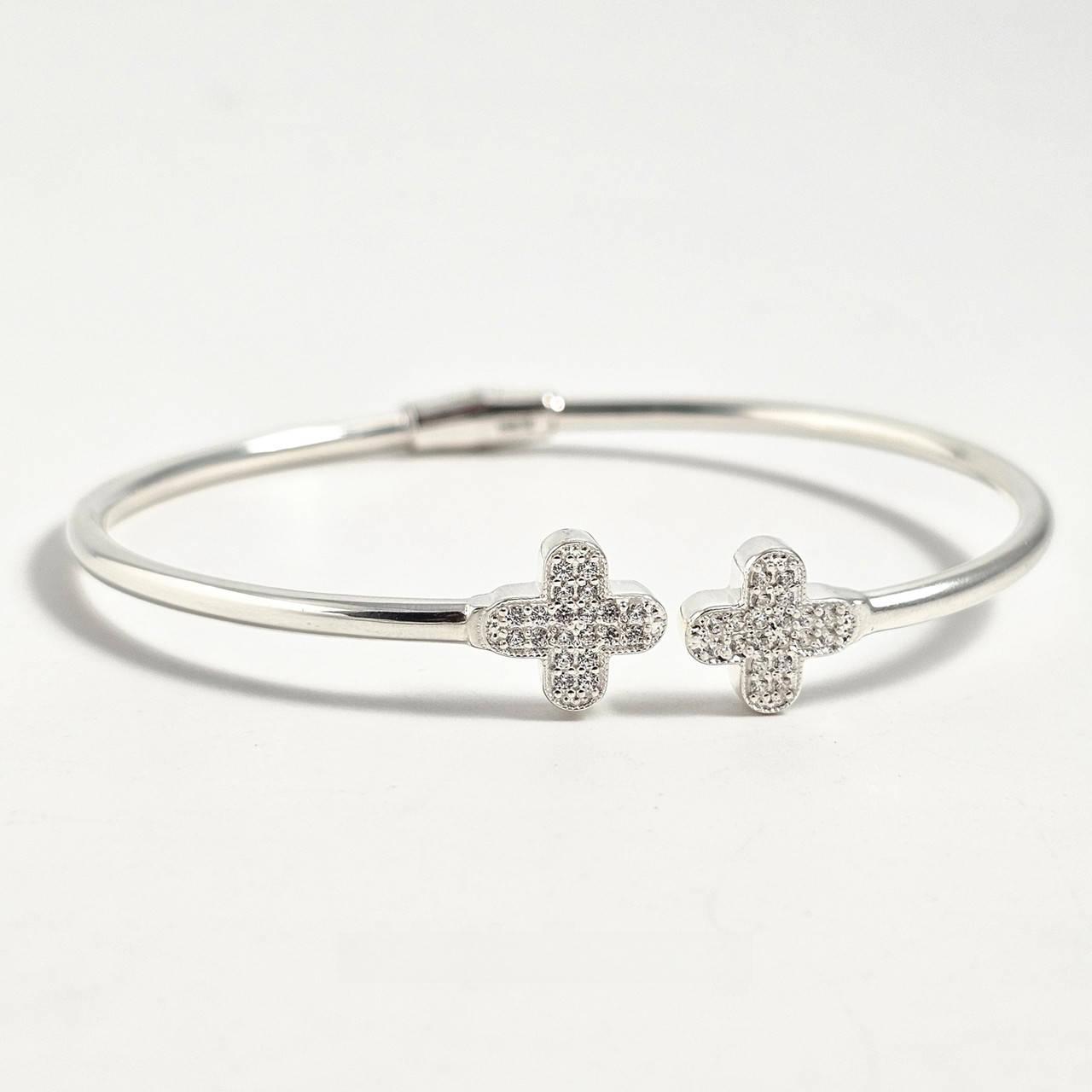 Браслет срібний незамкнутий жорсткий з білими фіанітами