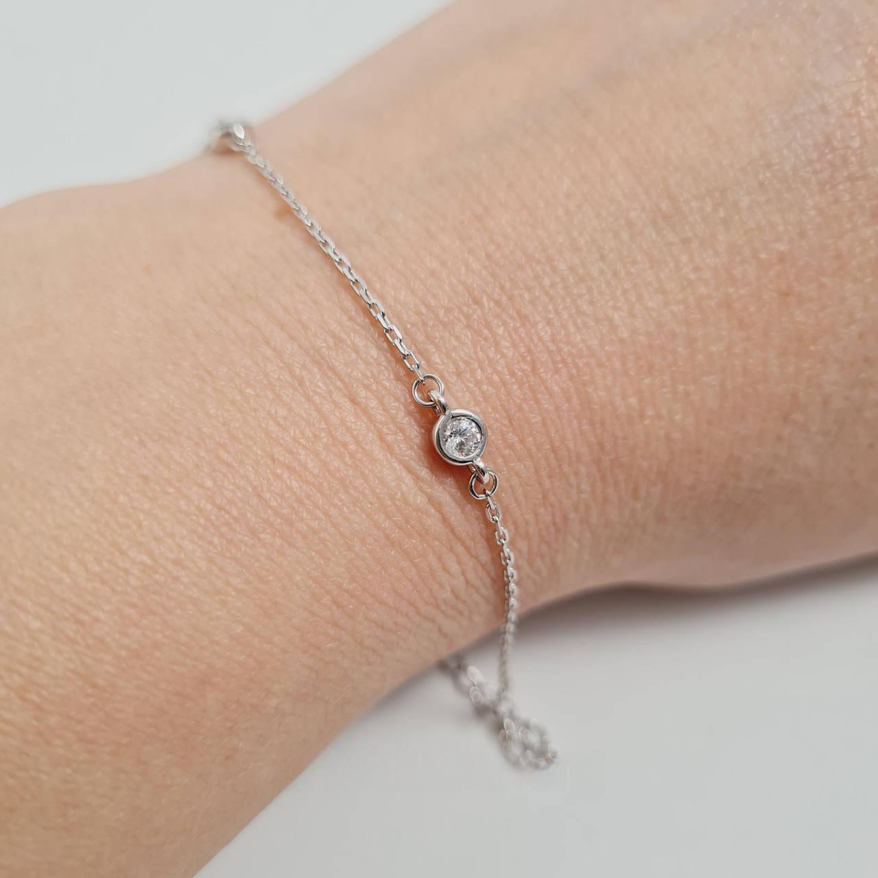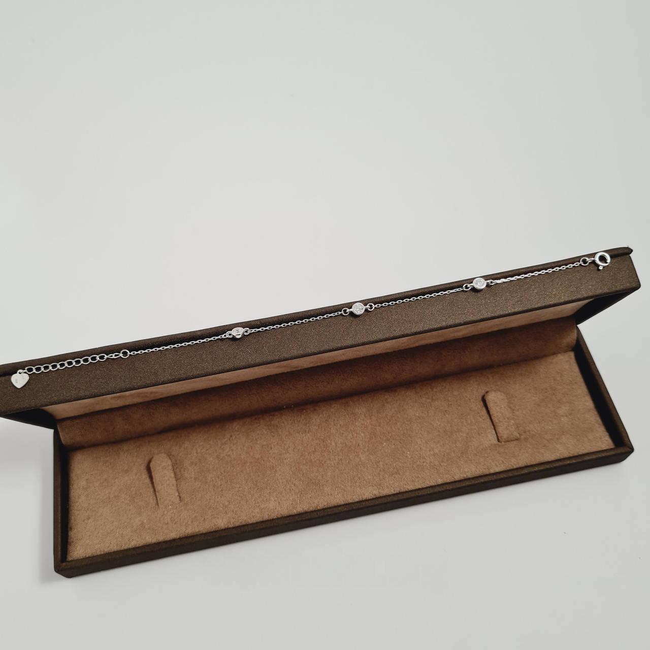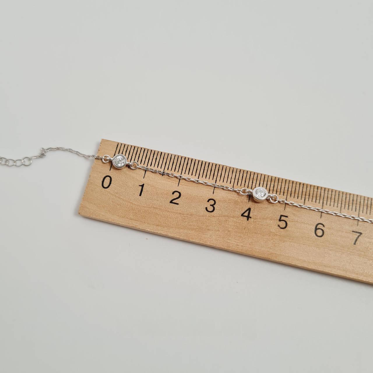 Браслет срібний тонкий ланцюжок з підвісками білими фіанітами