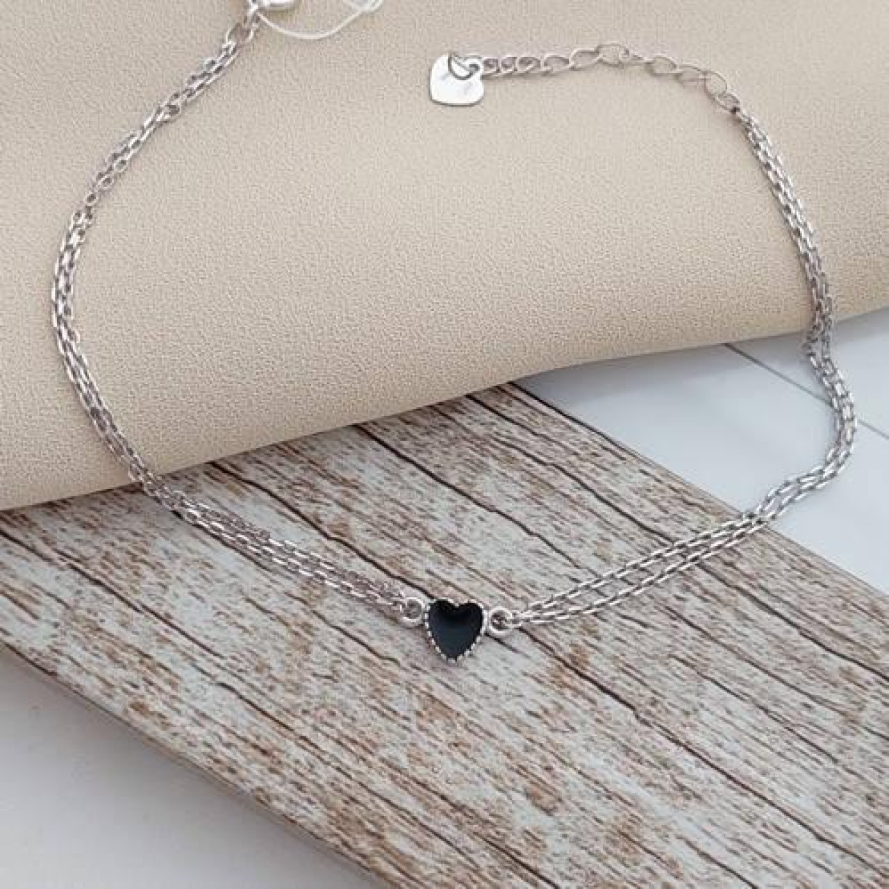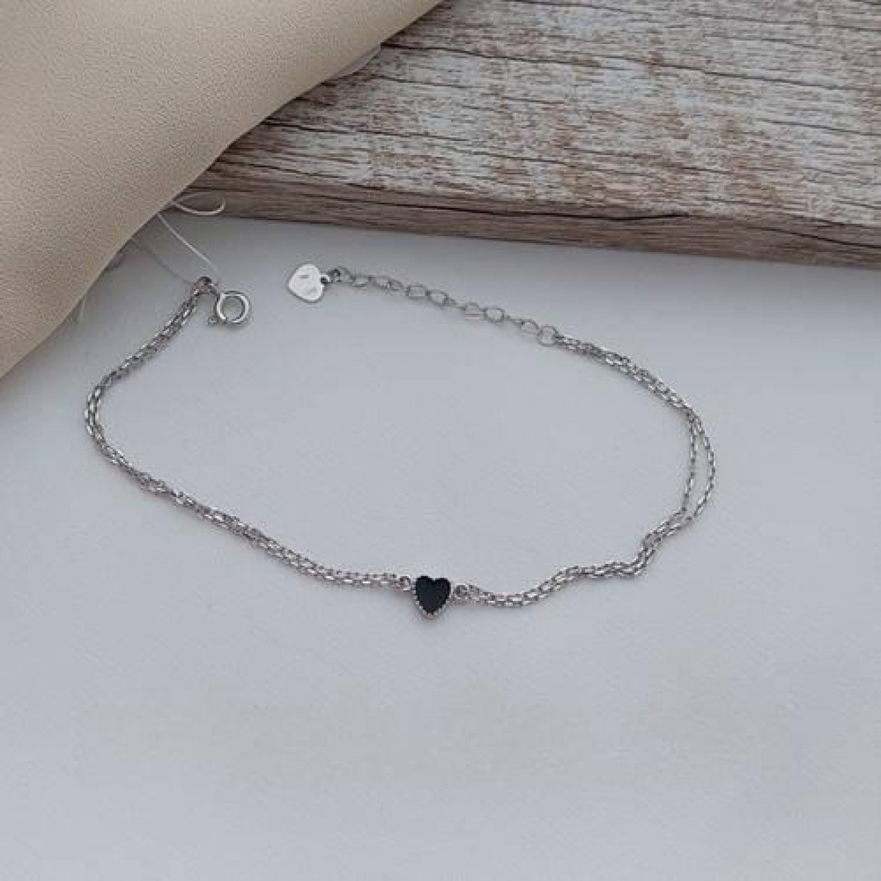 Браслет срібний тонкий ланцюжок з підвіскою сердечком і чорною емаллю