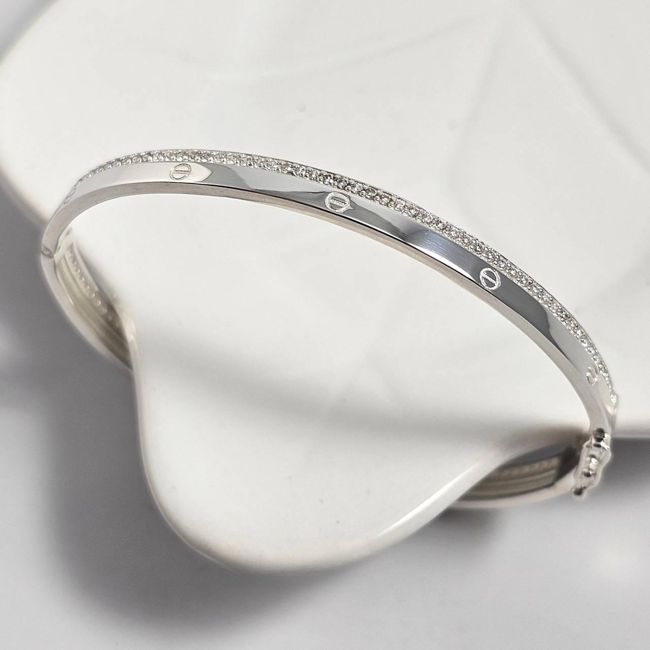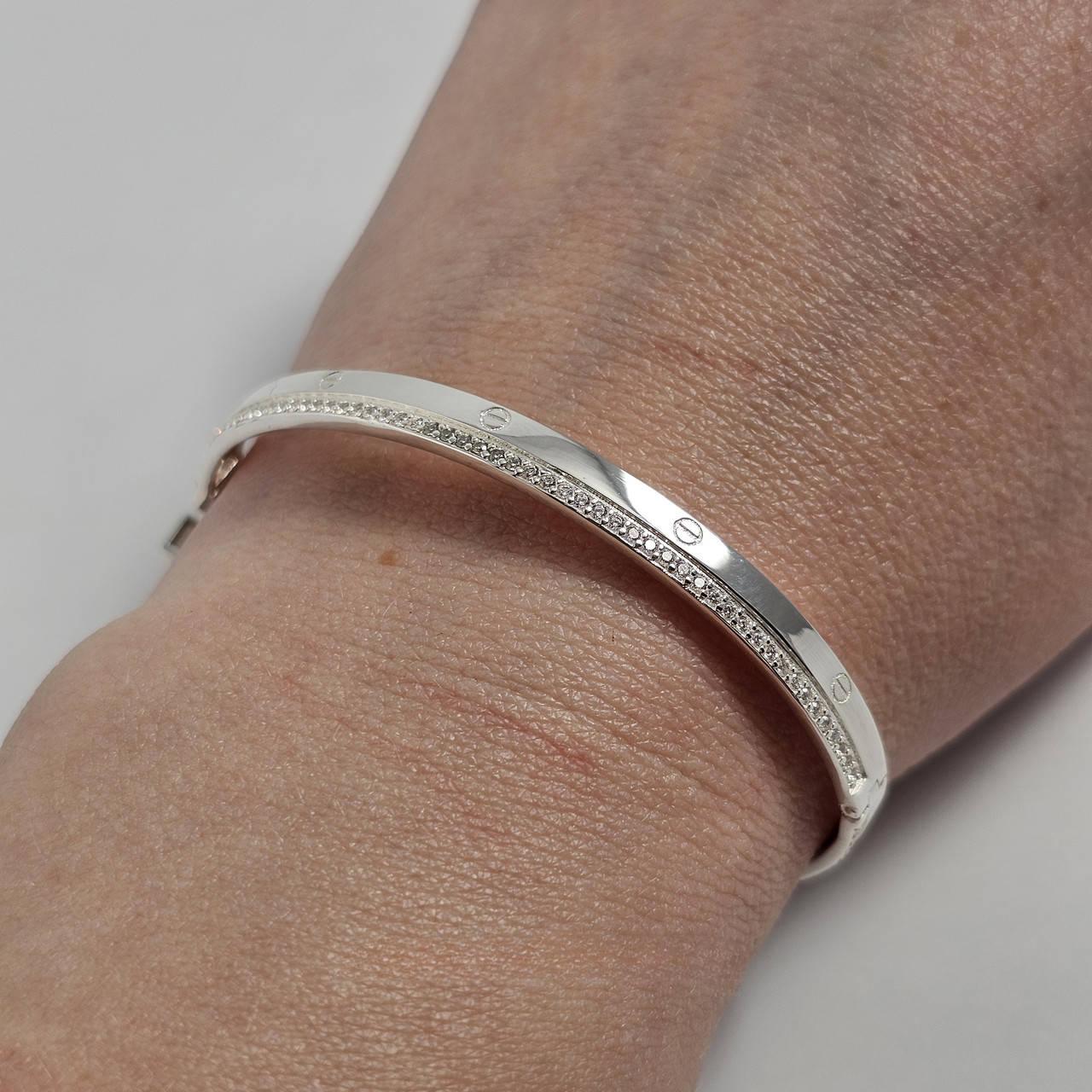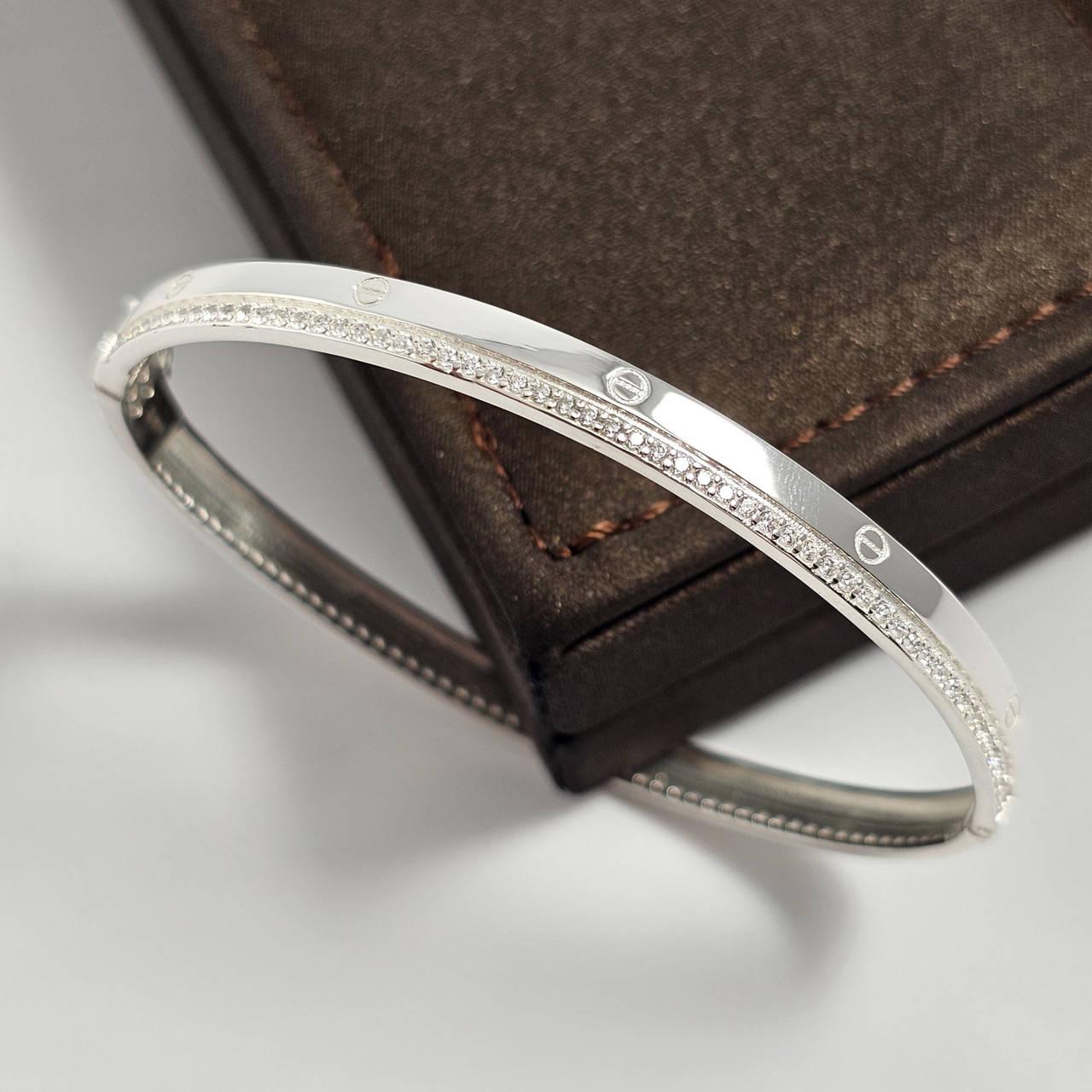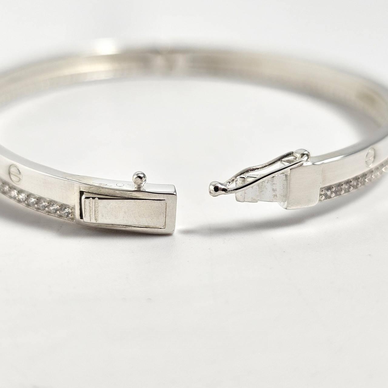 Браслет срібний жорсткий з орнаментом і фіанітами