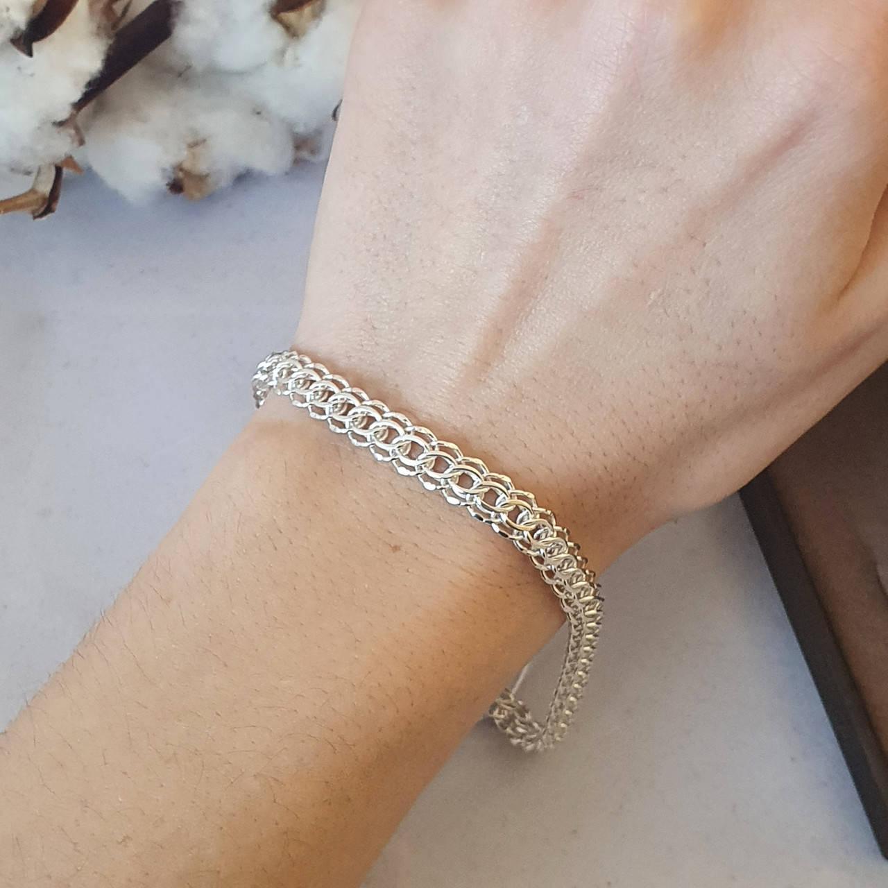 Срібний браслет з плетінням Венеція - це чудовий вибір для тих, хто цінує елегантність і стиль. Цей широкий і масивний браслет зі срібла з легкістю пасуватиме як чоловікам, так і жінкам, ідеально доповнить будь-який образ і стиль. Виконаний зі срібла 925 проби, цей браслет з плетінням Венеція привертає увагу своєю вишуканістю та блиском. Ланки, оформлені в плетіння Венеція, гарно поблискують при потраплянні на них світла, надаючи браслету додаткової елегантності. Незалежно від того, чи використовується він як основний елемент стилю або просто як доповнення, цей браслет зможе привернути увагу і стати улюбленою річчю в колекції аксесуарів. Будь то на побаченні або на діловій зустрічі, цей браслет ідеально підійде для створення образу, який не залишить байдужим нікого.