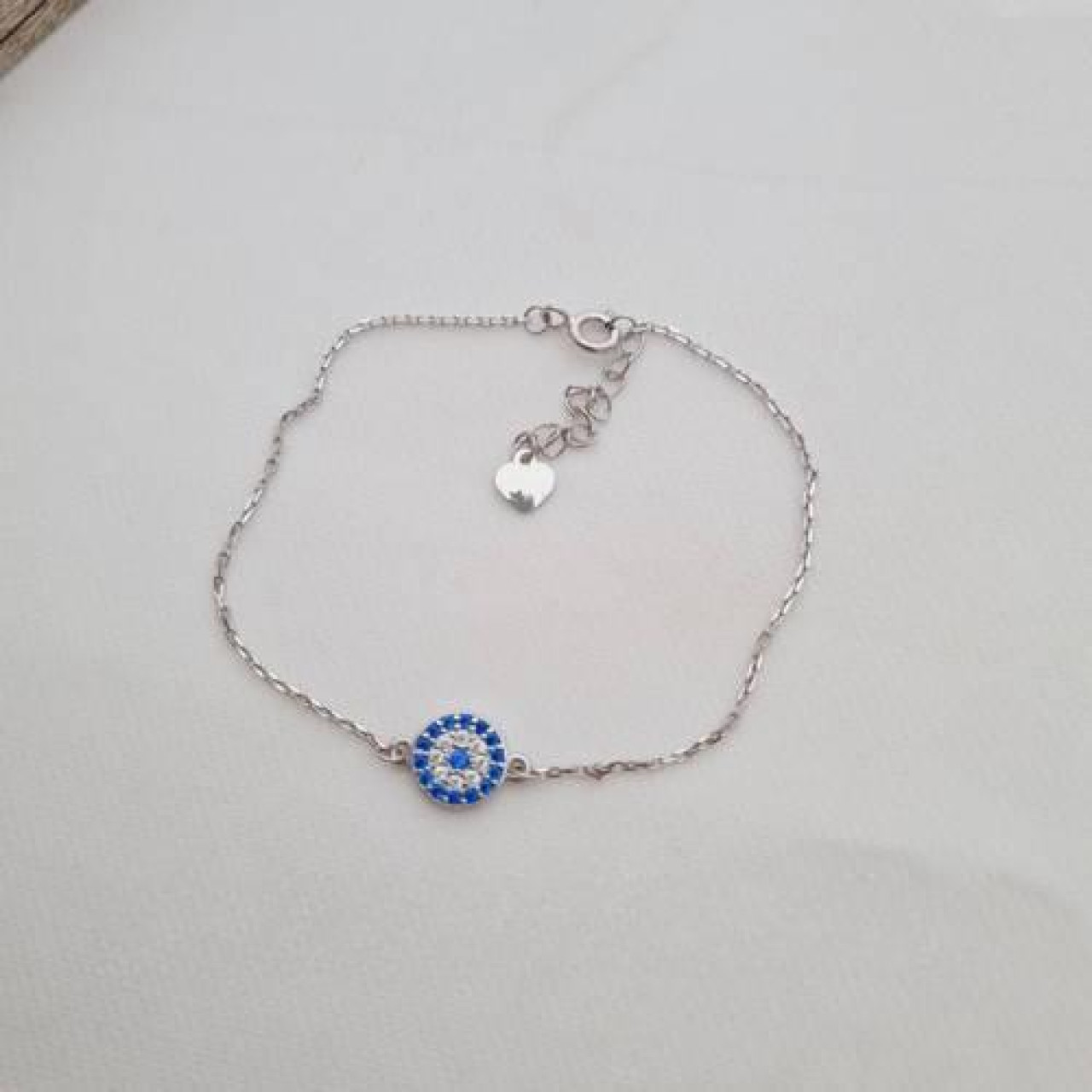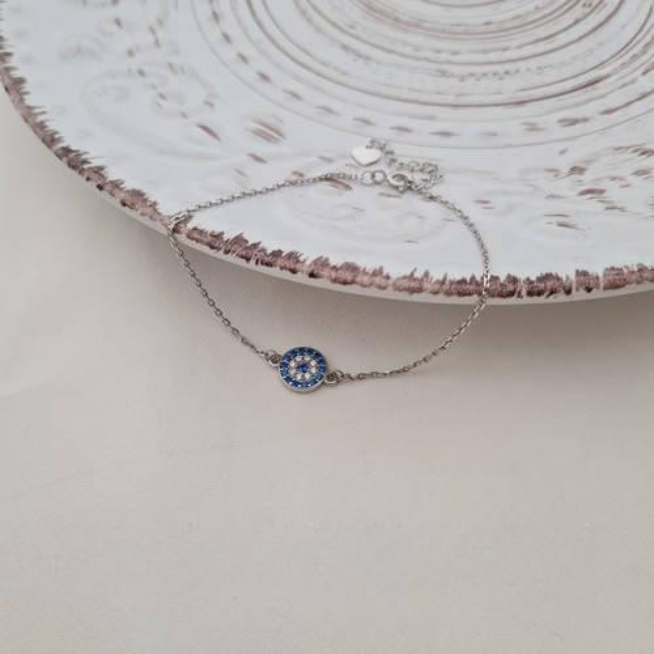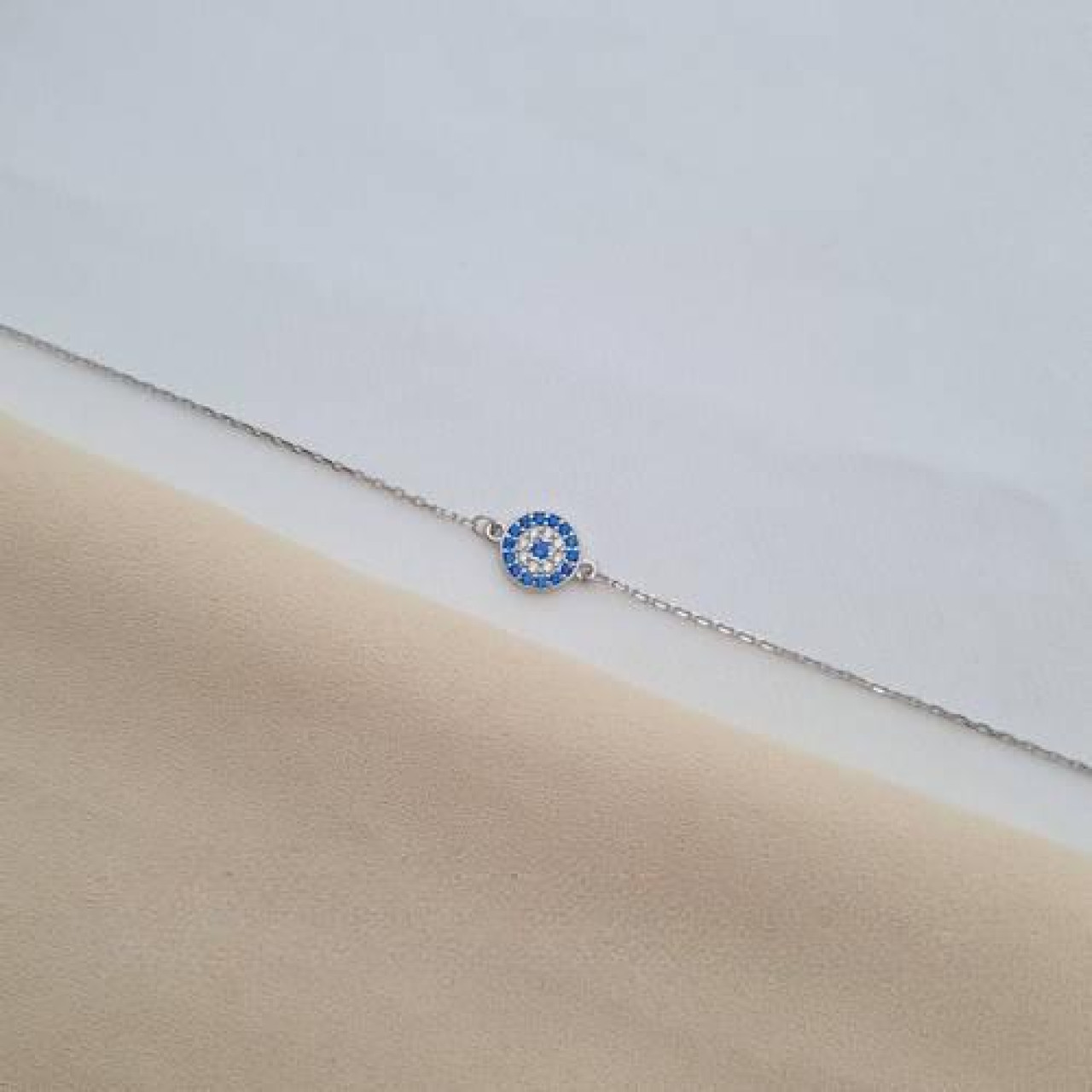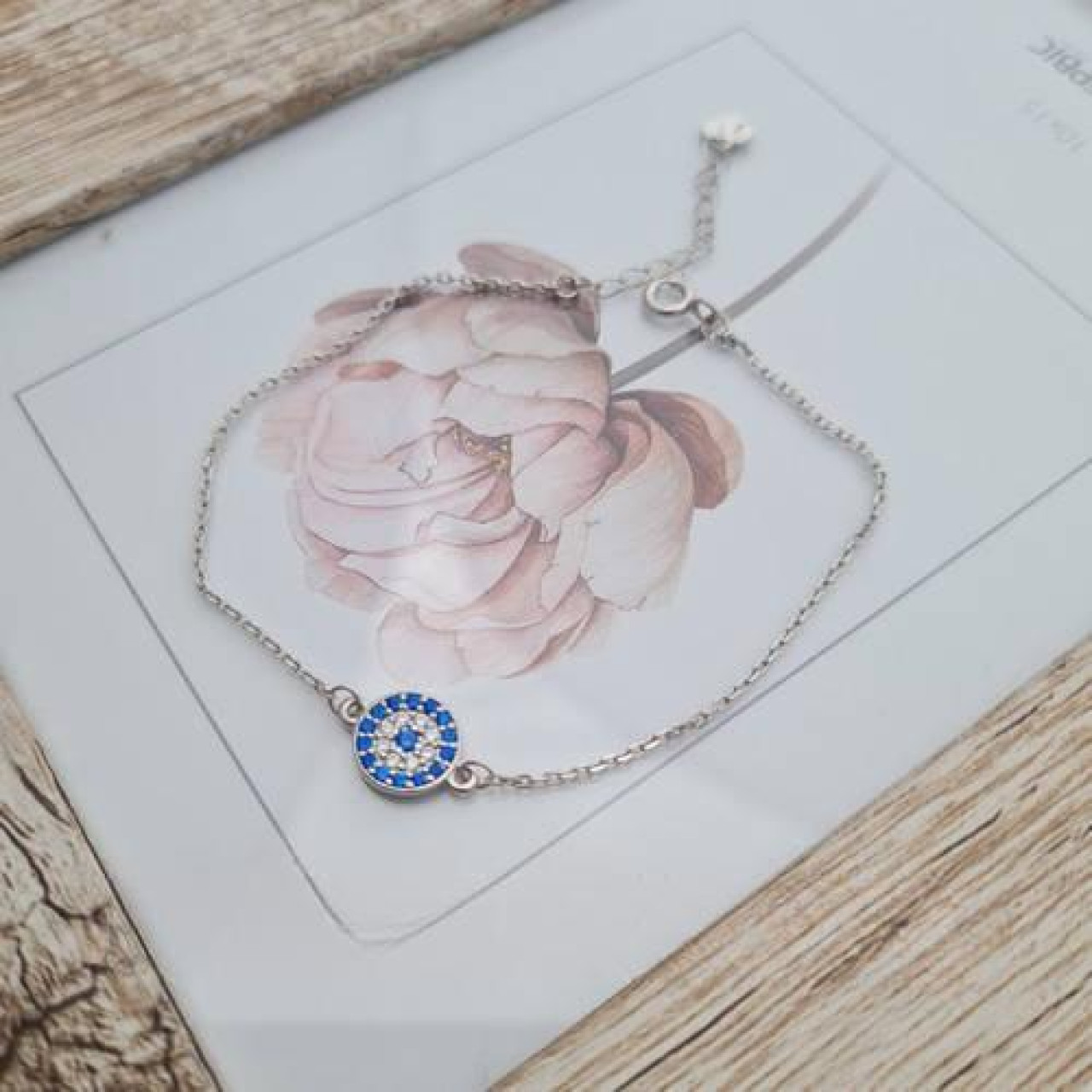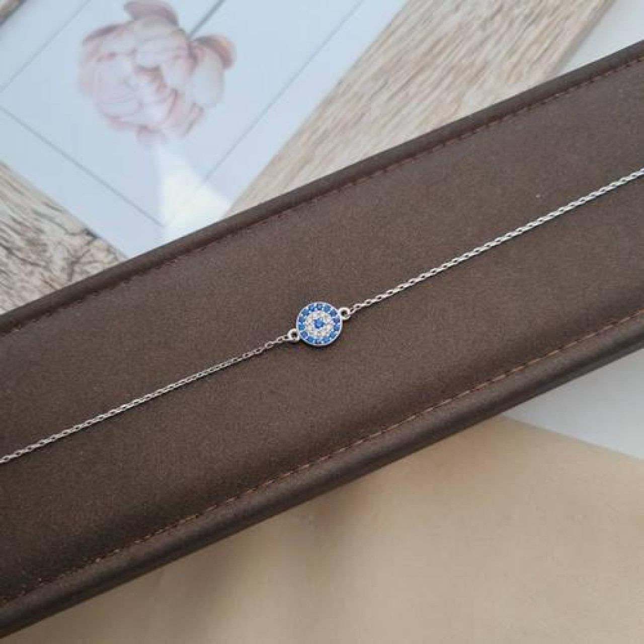 Срібний браслет ЛК-0335-ЮДК стане яскравим акцентом вашого образу. Прикраса виконана з тонкого ланцюжка якірного плетіння, який доповнюється круглою підвіскою, оздобленою блакитними та білими фіанітами. Камінчики майстерно розташовані по колу, створюючи гармонійний і витончений візерунок. При потраплянні світла фіаніти переливаються і виблискують, надаючи прикрасі витонченого блиску.. Браслет зі срібла ЛК-0335-ЮДК чудово поєднується з будь-яким вбранням, чи то повсякденний одяг, чи то елегантний вечірній туалет. Його універсальний дизайн робить його придатним для будь-яких випадків, чи то робочий день, чи то святковий захід. Виготовлений браслет зі срібла 925 проби, тому він довго залишатиметься таким ніби ви його щойно купили. Але все ж таки мінімальний догляд необхідний, достатньо раз на місяць промити браслет зі срібла в мильній воді та просушити рушником.