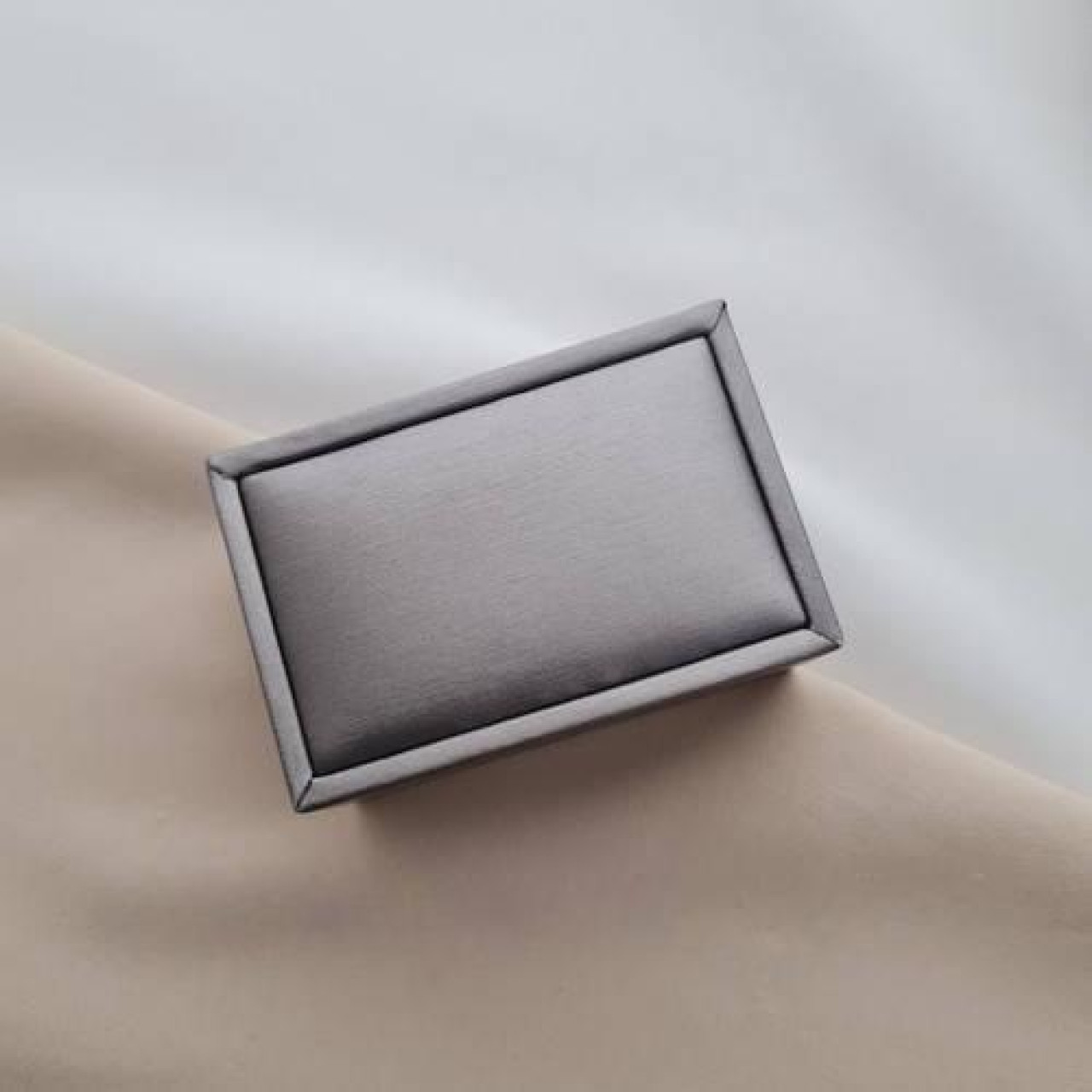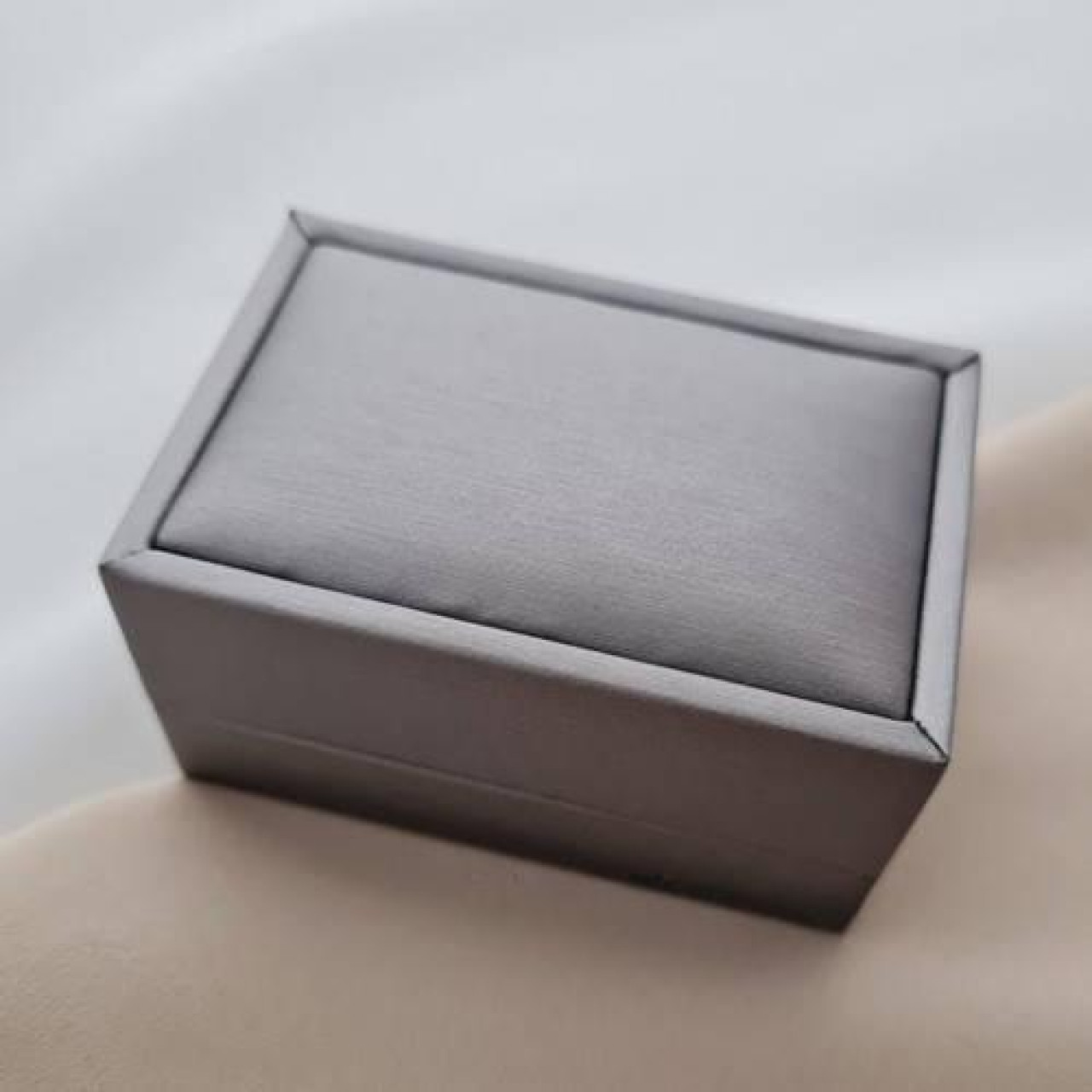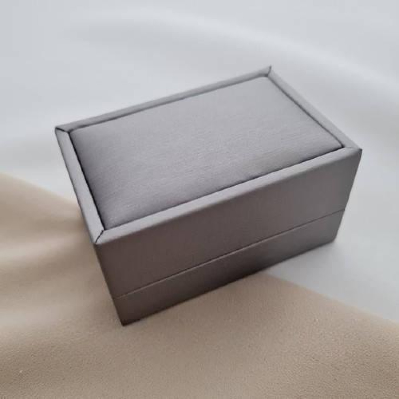 Футляр прямокутний для пари обручок сірого кольору з дизайнерського текстилю