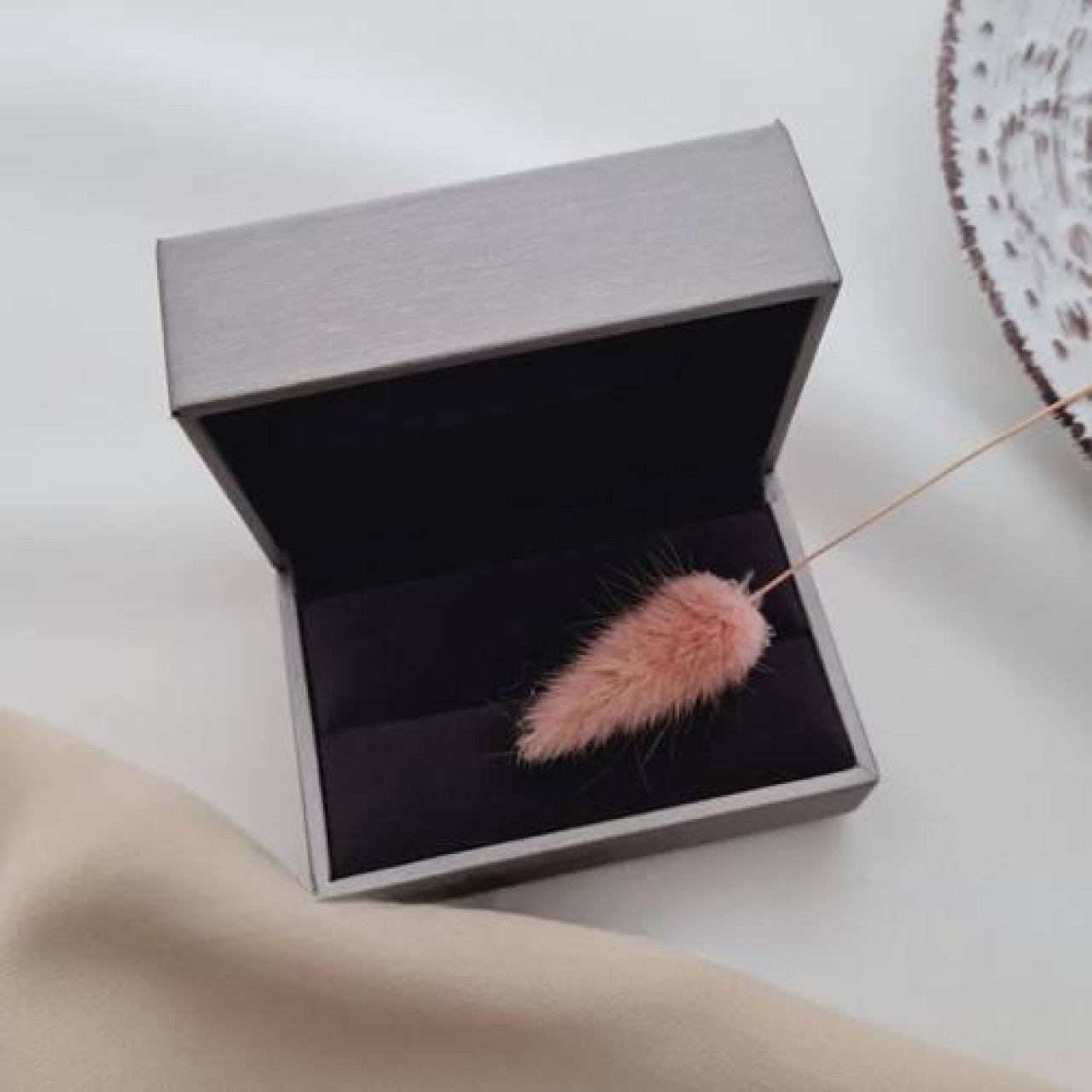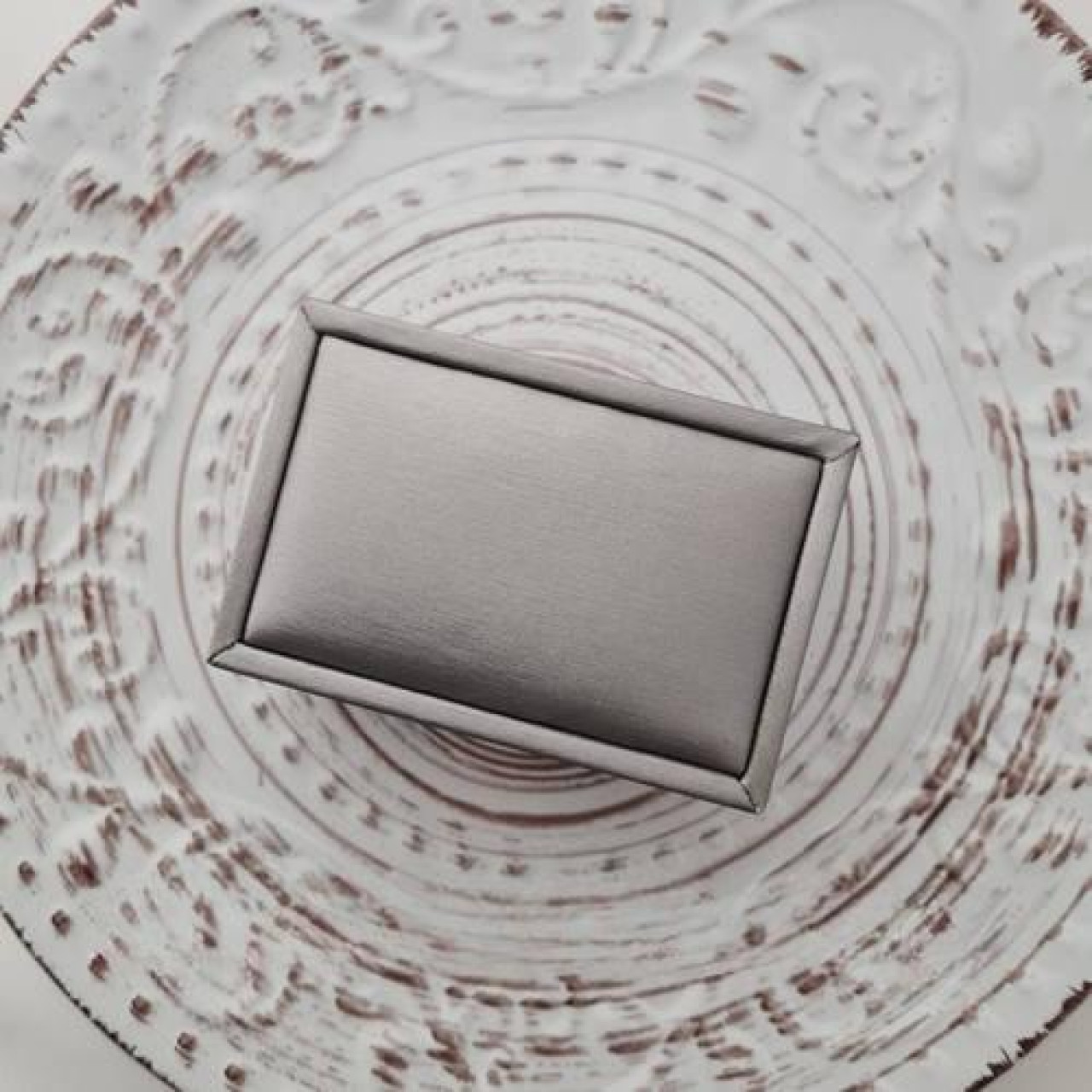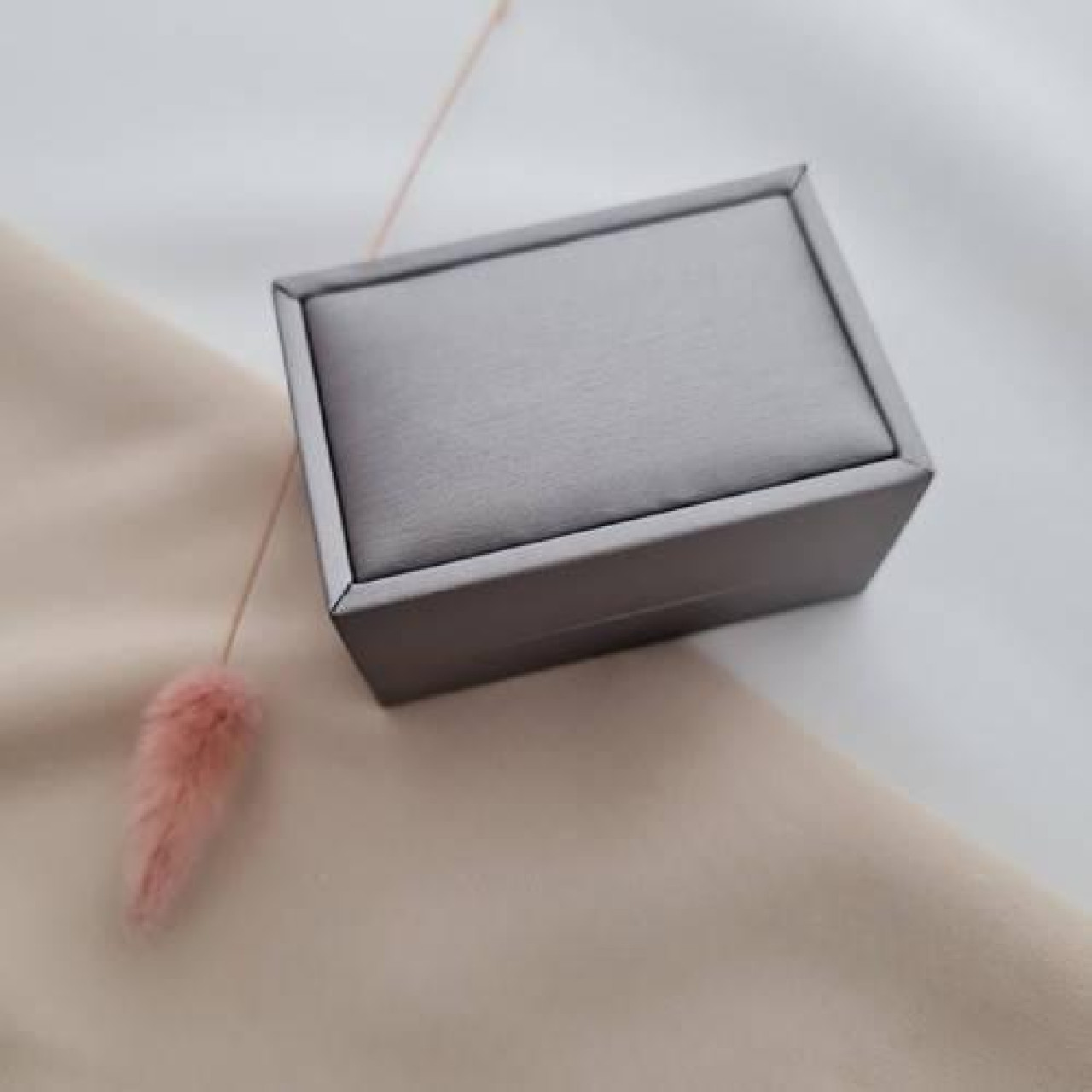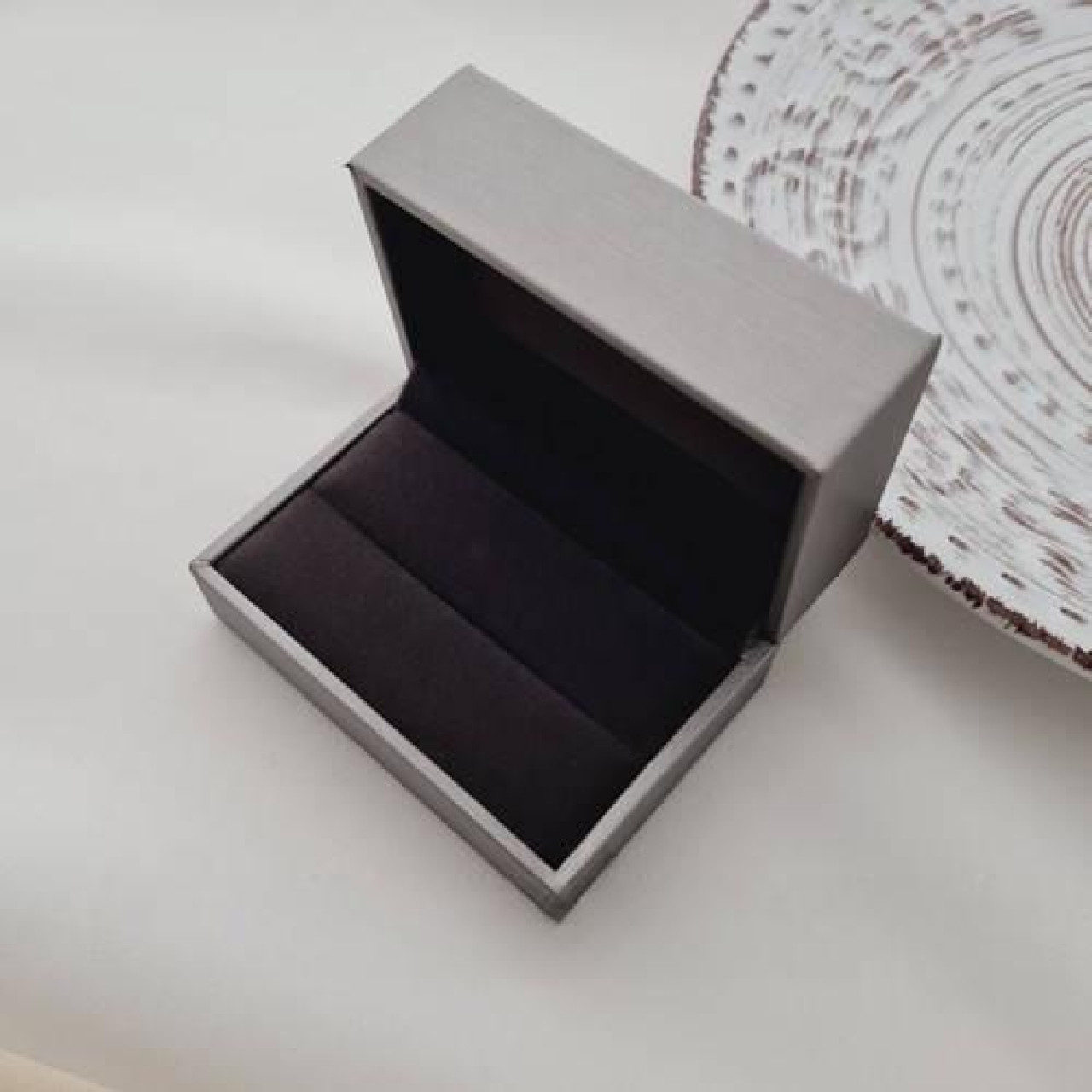 Футляр прямокутний для пари обручок сірого кольору з дизайнерського текстилю