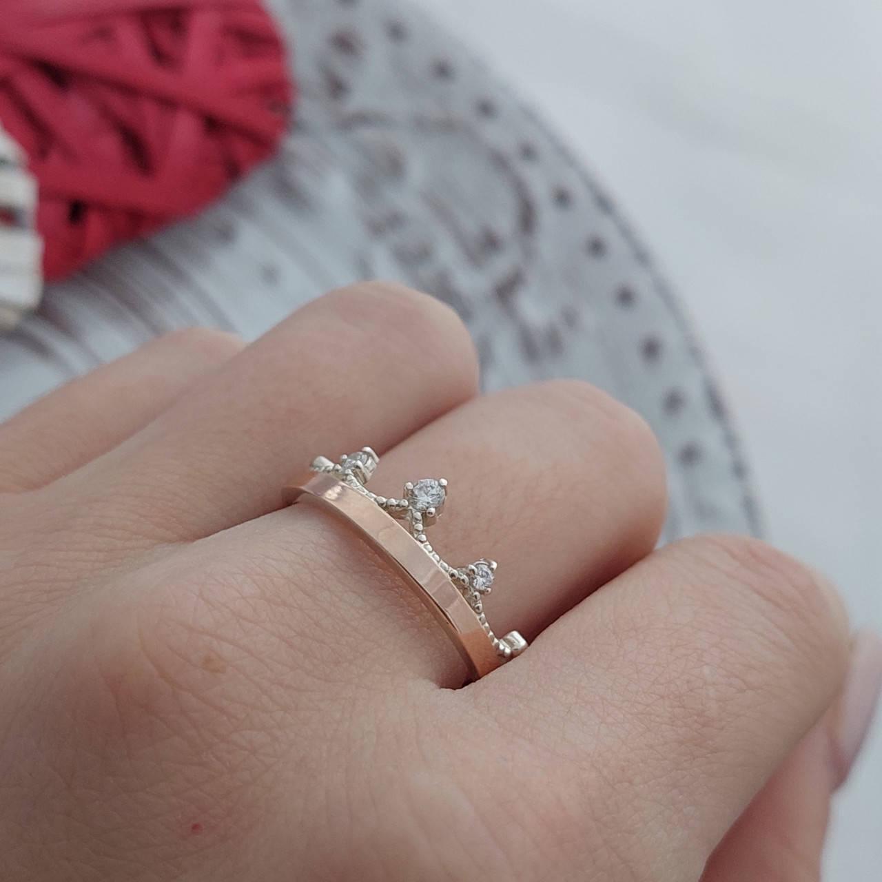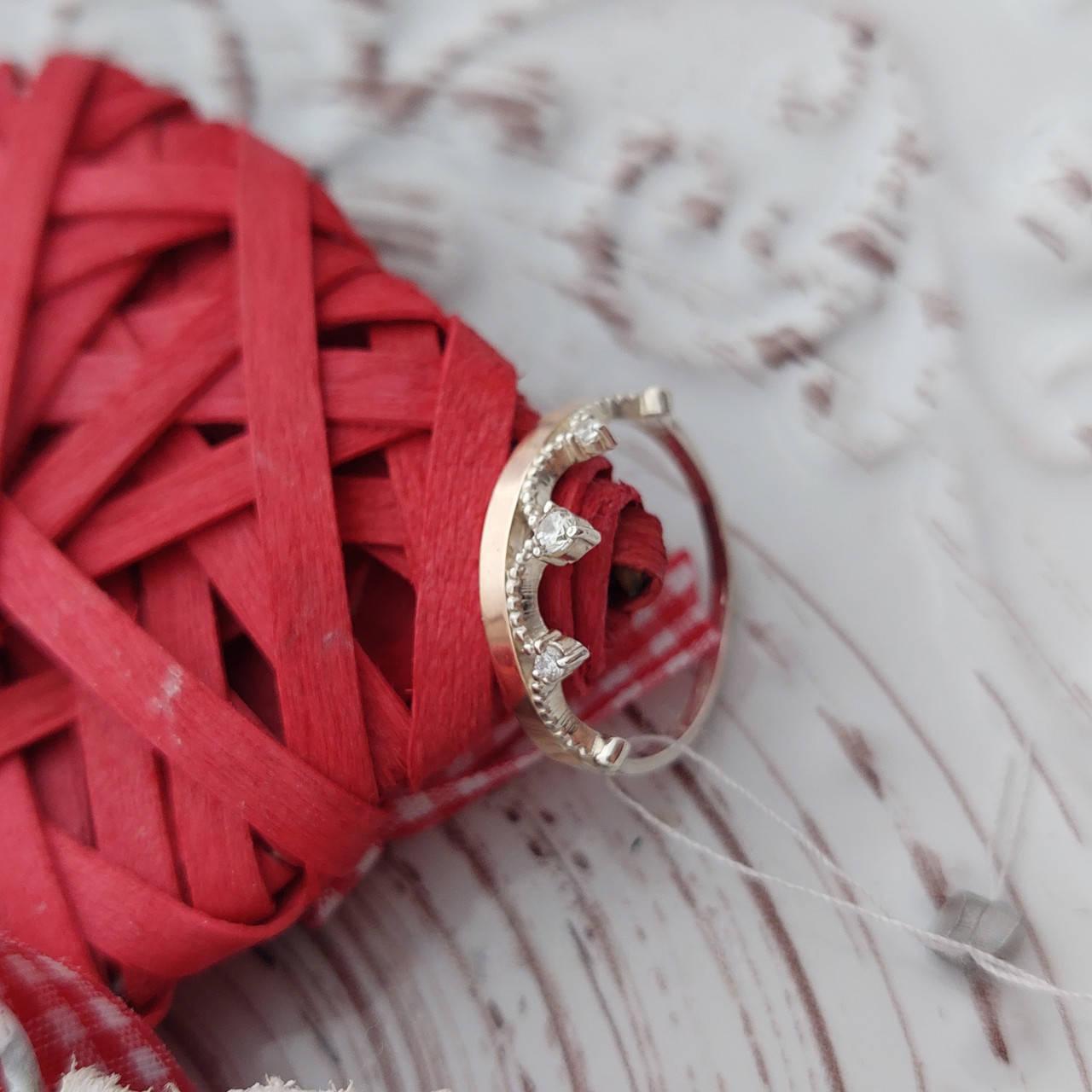 Срібна каблучка з золотими напайками та фіанітами корона — це прикраса, яку можна носити як кожен день, так і одягнути на урочистий захід. Дизайн срібної каблучки у вигляді корони, безперечно, приверне до себе увагу та зацікавлені погляди, а фіаніти розташовані на кінцях зуб'їв корони відкидатимуть красиві відблиски. Каблучка виглядає особливо елегантно завдяки тому, що в ній поєднується срібло та золото, адже така комбінація дорогоцінних металів популярна вже не перший рік і, можна сказати, стала класикою. З такою каблучкою кожна жінка відчує себе королевою. Цю срібну каблучку із золотою напайкою та фіанітами можна носити не один рік, оскільки завдяки тому, що у виготовленні прикраси використовується срібло 925 проби та золото 375 проби, воно не стирається з часом і зберігає свою красу та блиск. Догляд за такою прикрасою теж простий, достатньо раз на місяць промити її в мильній воді та протерти рушником.