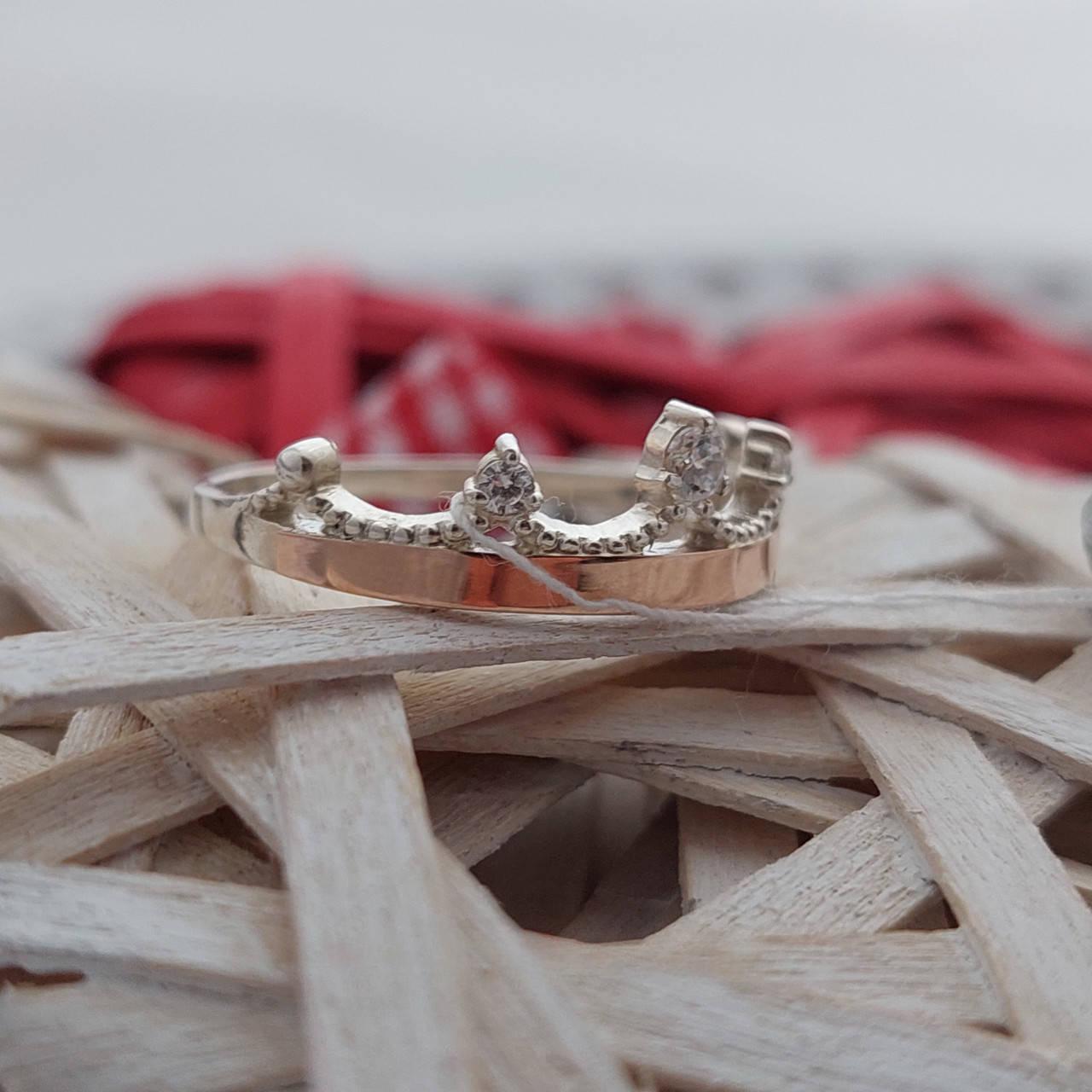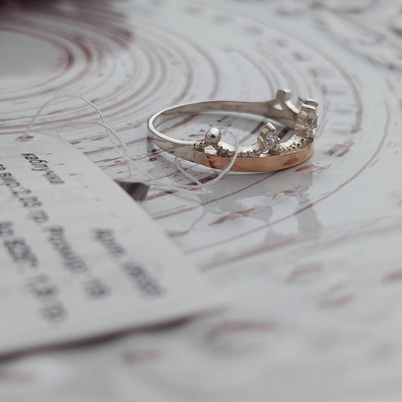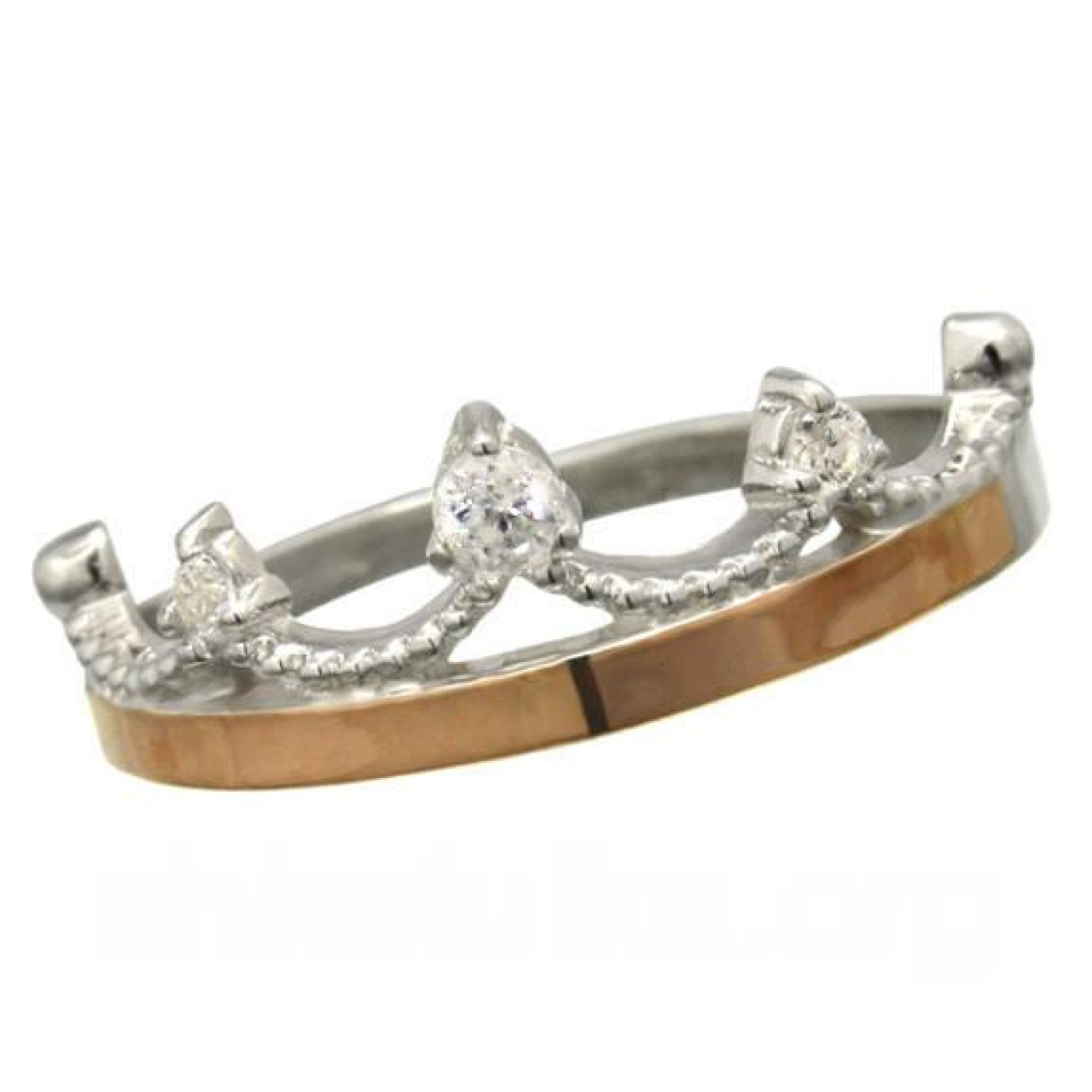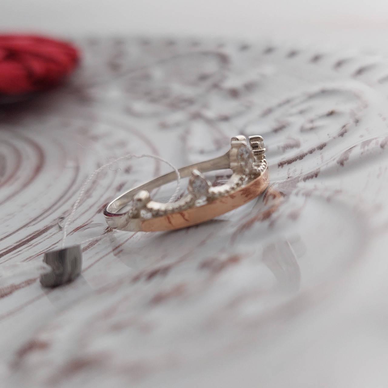 Каблучка срібна з золотою напайкою та фіанітами корона