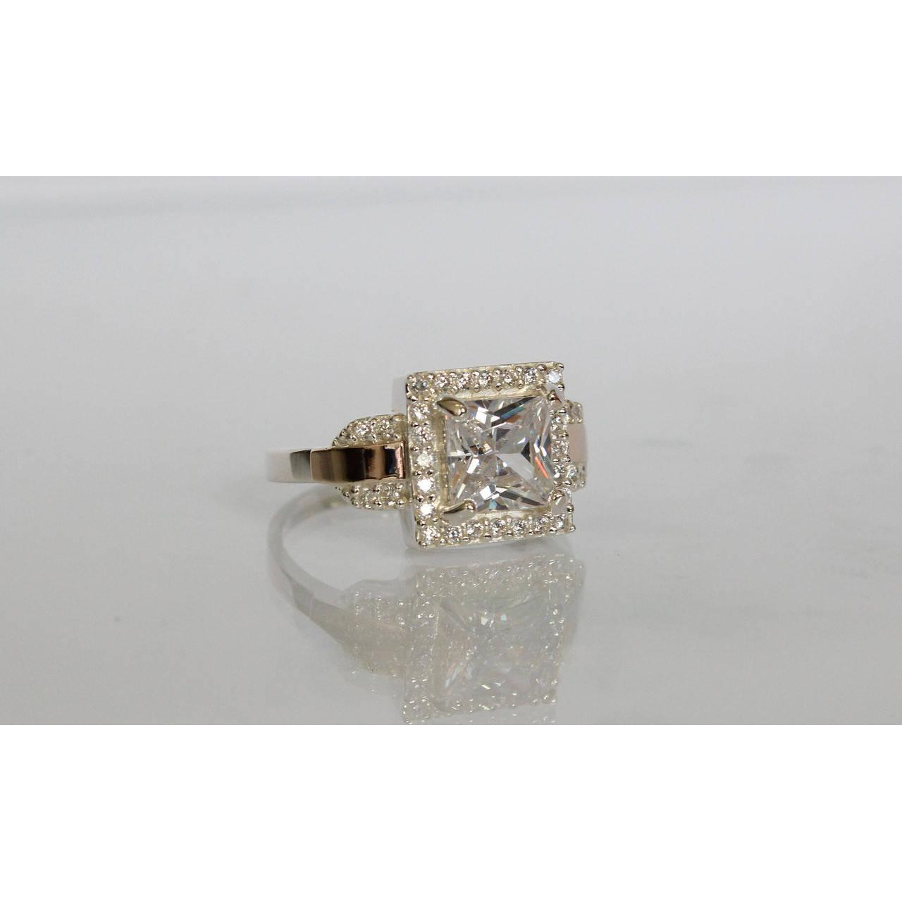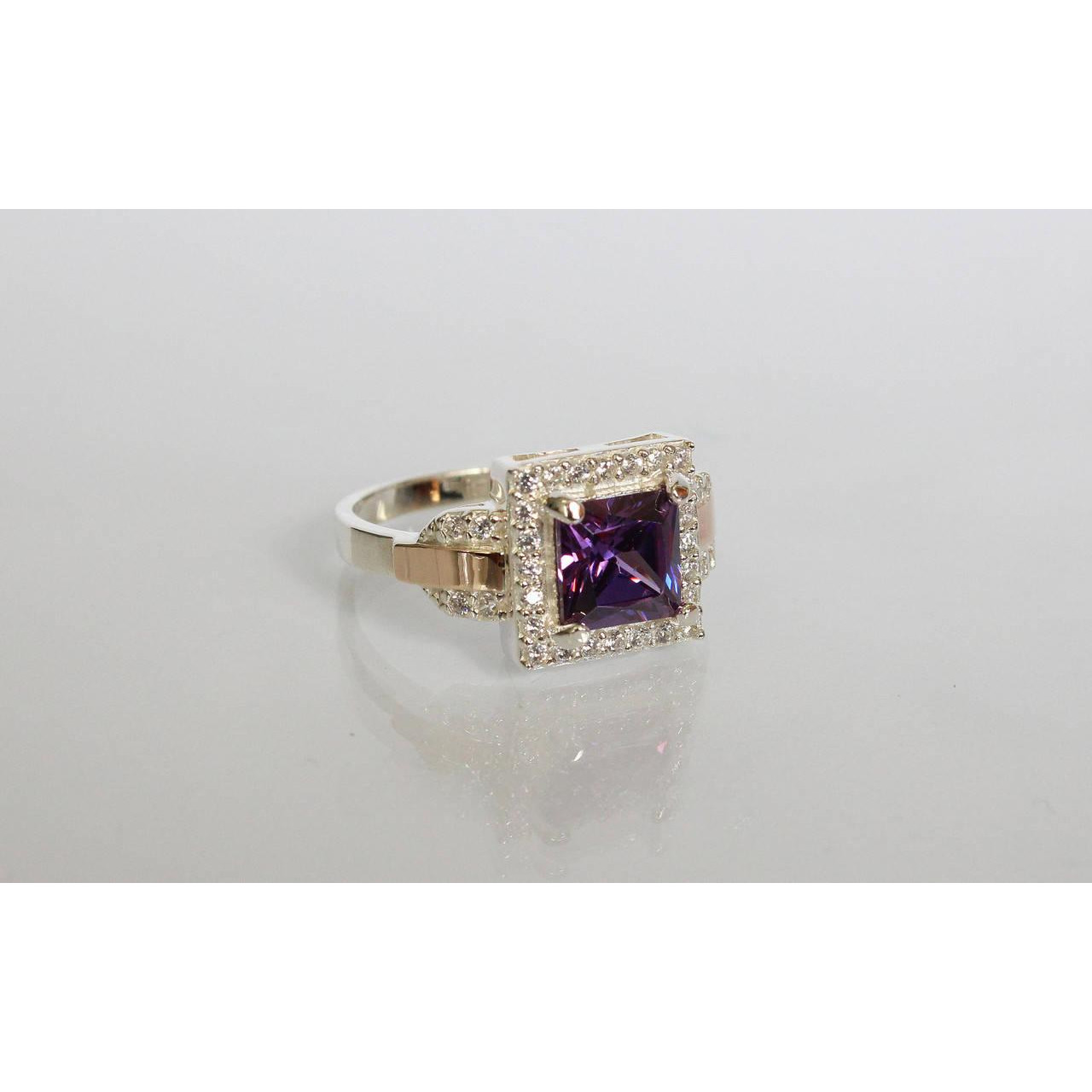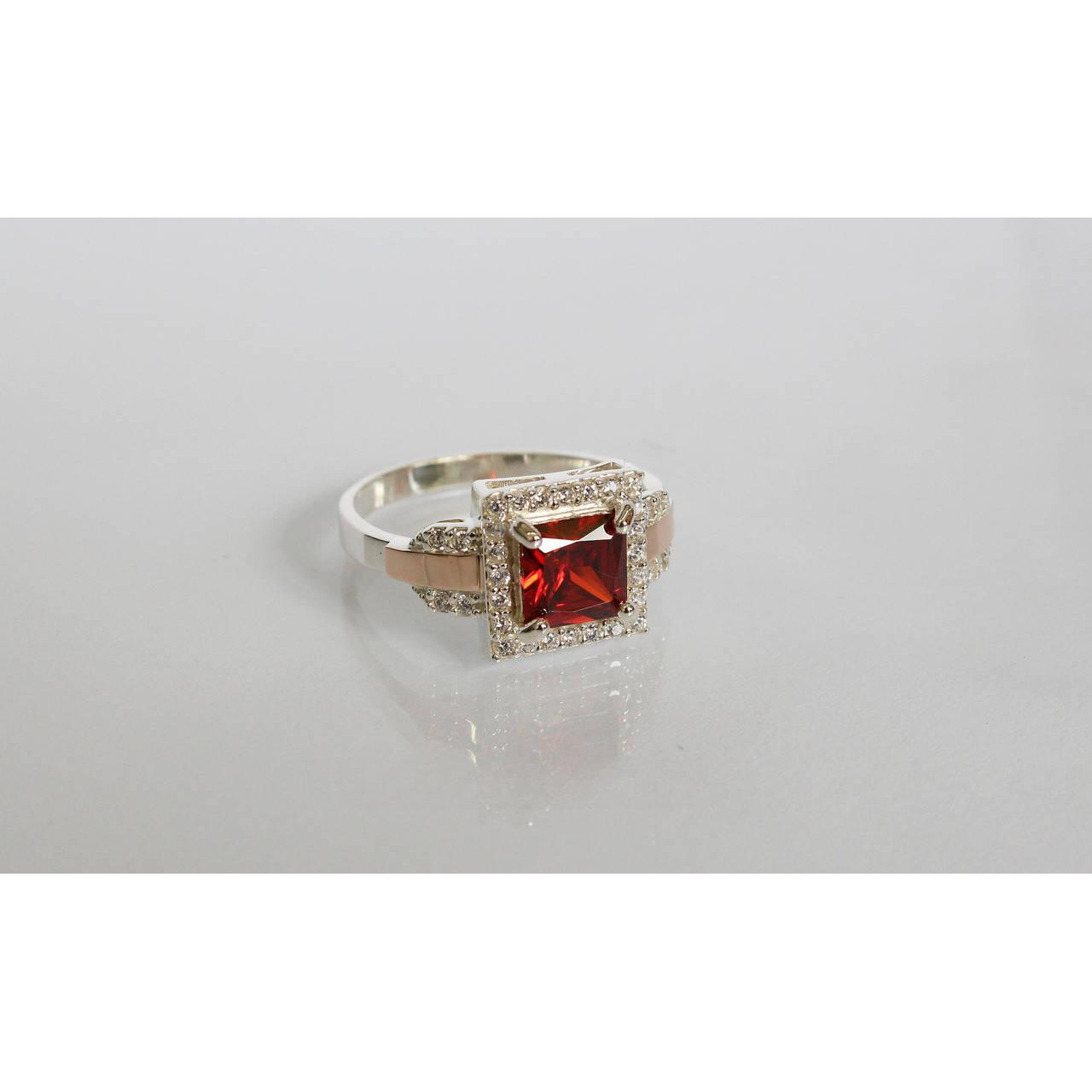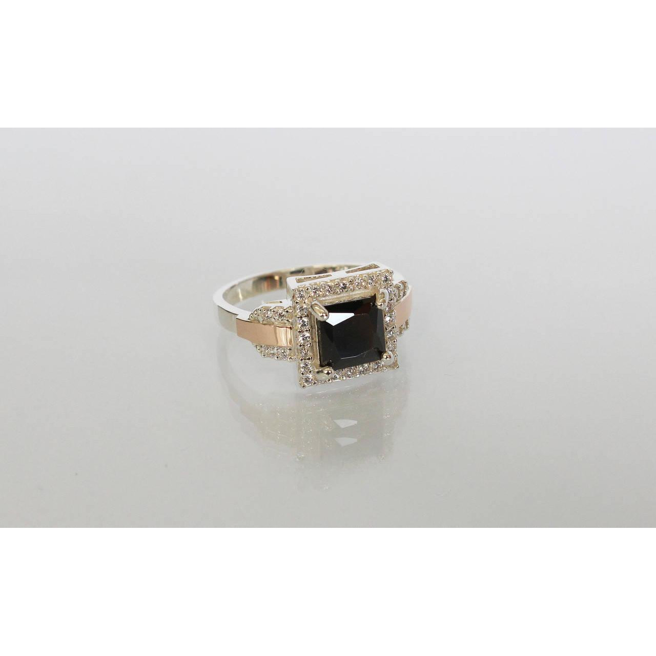 Срібне кільце з фианитом і золотими вставками, які ви маєте можливість бачити перед собою на фото, виконані зі срібла 925 проби і золота 375 проби.