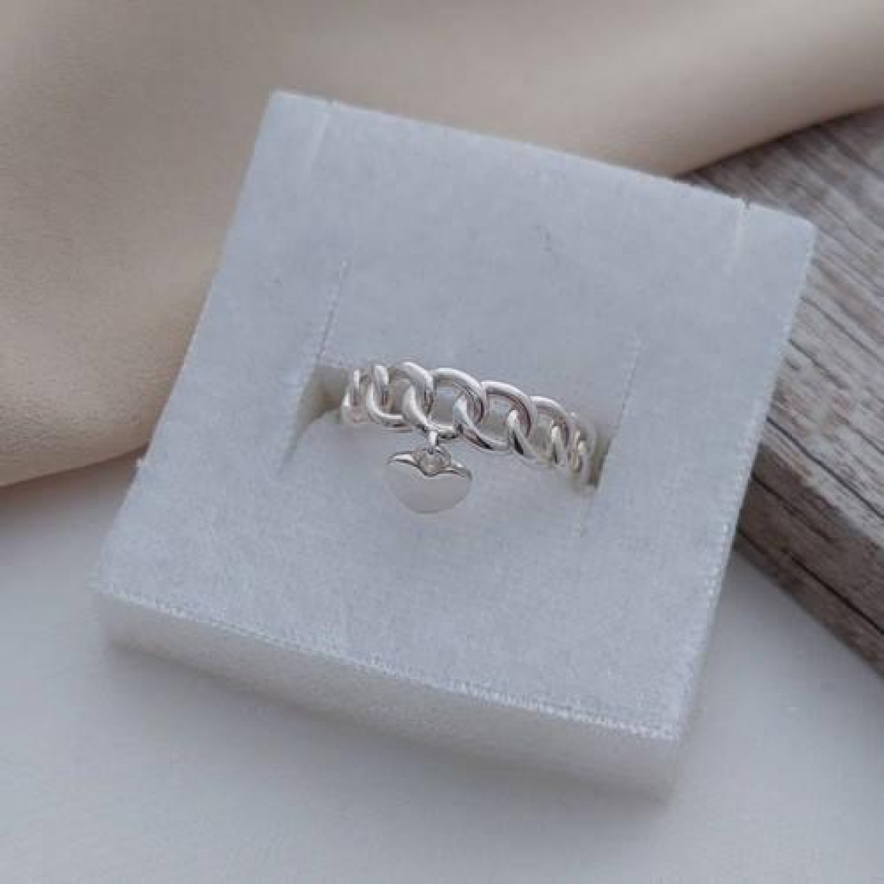 Срібна каблучка з сердечком 2010-15Ліп- вишукана прикраса, що підкреслить вашу ніжність і романтичність. Ця оригінальна каблучка має цікавий дизайн: її основа нагадує ланцюжок, у центрі якого розташована витончена підвіска у формі сердечка. Ця вишукана деталь надає прикрасі особливого шарму та романтичного акценту. Каблучка зі срібла 2010-15Ліп ідеально поєднується як з повсякденним образом, так і з вбранням для особливих заходів, надаючи вашому стилю неповторного шарму й елегантності. Каблучка зі срібла має такі розміри: 15, 15,5, 16, 16,5, 17, 17,5, 18, 18,5, 19, 19,5, 20, 20,5, 21. Виготовлено каблучку зі срібла 925 проби, але щоб при постійному носінні каблучка зберігала свій первісний вигляд і не втратила блиску, за нею має бути відповідний догляд, як і за будь-якими ювелірними виробами. Намагайтеся знімати каблучку під час взаємодії з хімічними речовинами. А також раз на місяць промивайте каблучку зі срібла в мильній воді та протирайте рушником.