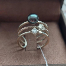 Каблучка срібна незамкнена потрійна з чорним камінчиком під перли та фіанітом має незвичайний дизайн. Масивна срібна каблучка незамкнена, що дозволяє носити його на будь-який розмір..