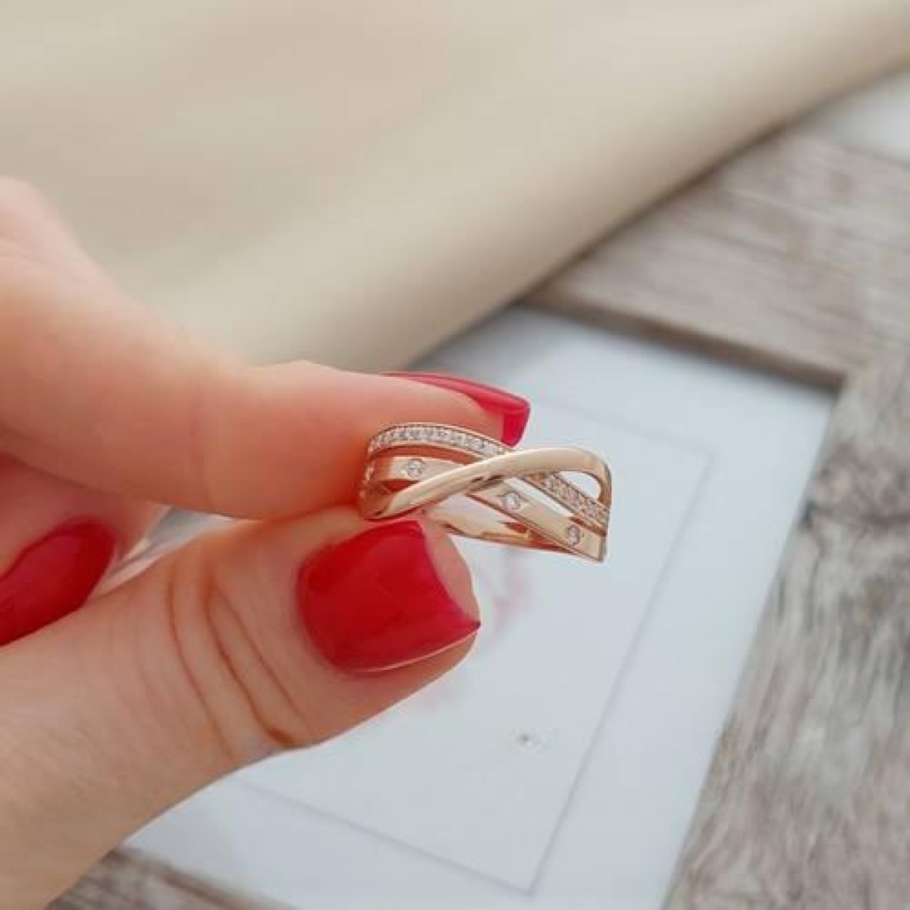Золота каблучка з фіанітами 1-2438ф-П-11 обов'язково стане чудовим доповненням до вашого образу. Ця каблучка привертає погляд своїм оригінальним дизайном: три золоті смужки переплітаються, створюючи витончений і вишуканий образ. Одна зі смужок гладенька, надаючи каблучці вишуканого мінімалізму, тоді як дві інші прикрашені білими круглими фіанітами, що додають блиску та вишуканості. Камінчики красиво блищать, граючи на світлі, надаючи вашому вигляду особливої вишуканості. Каблучка із золота 1-2438ф-П-11 буде ідеальним аксесуаром як для повсякденного використання, так і для особливих моментів та урочистих подій. Він чудово впишеться у ваш образ, підкреслить вашу неповторність і стиль. Золота каблучка має такі розміри: 15, 15,5, 16, 16,5, 17, 17,5, 18, 18,5, 19, 19,5, 20, 20,5, 21. Доглядати за каблучкою із золота дуже просто, достатньо періодично протирати її шматочком фланелі або мікрофібри.