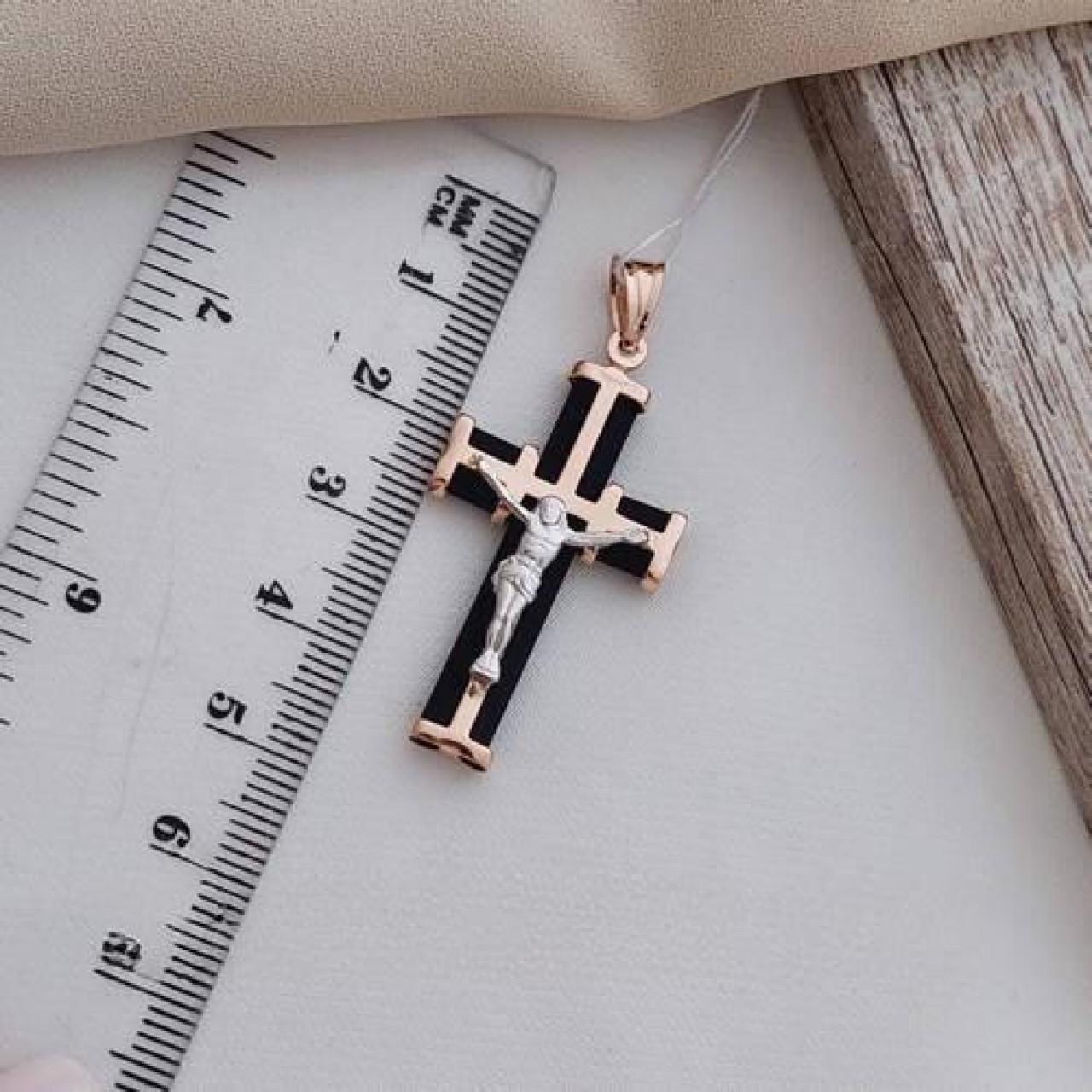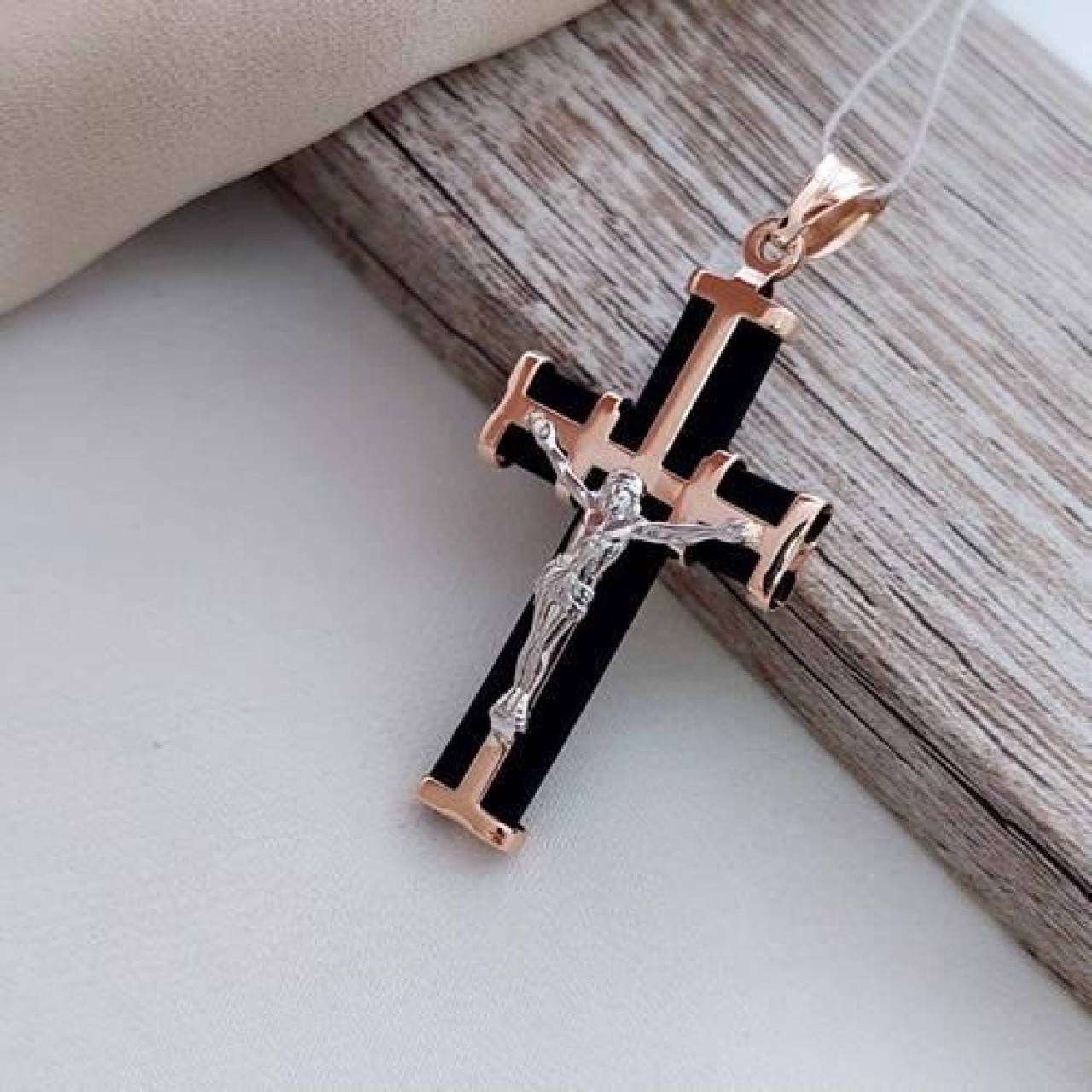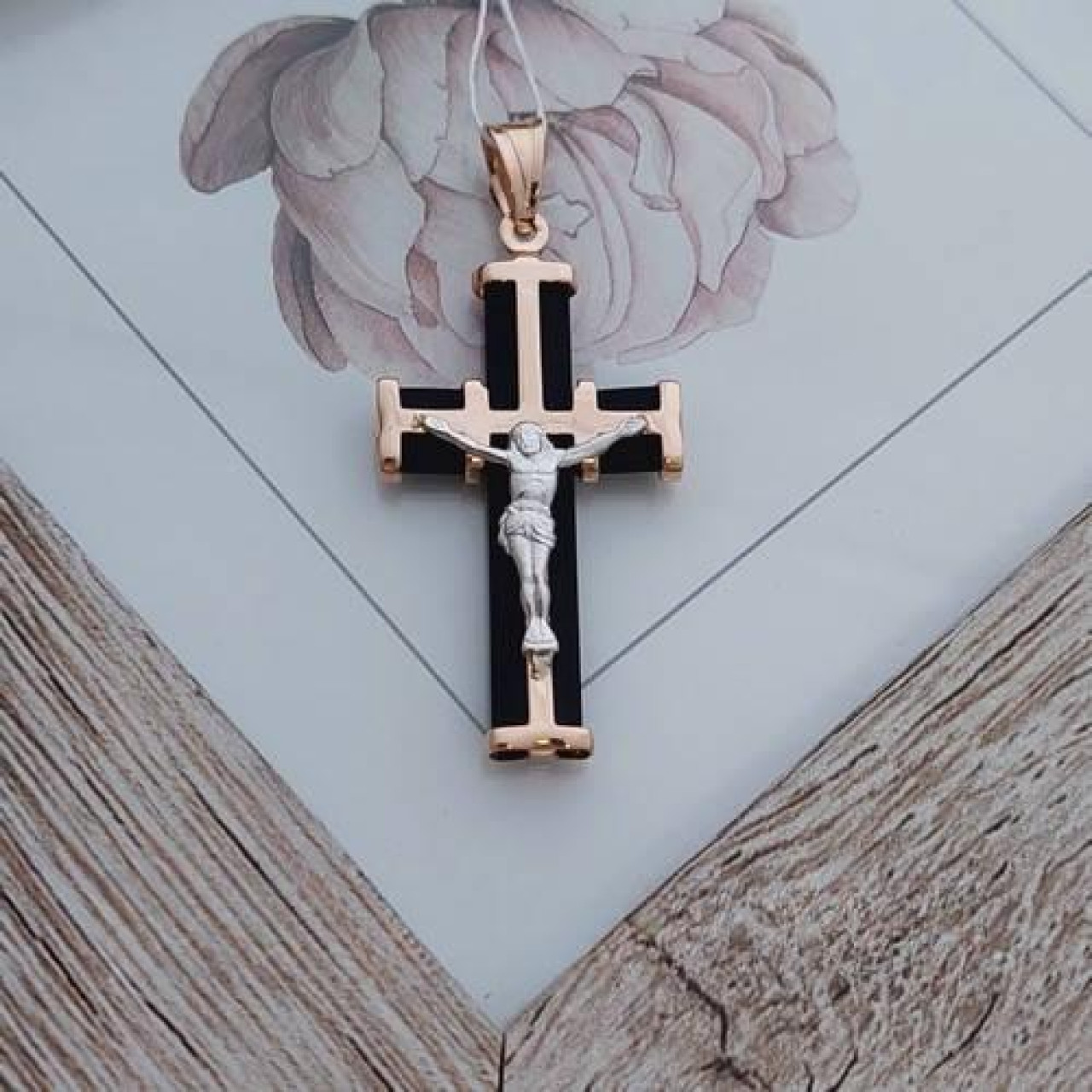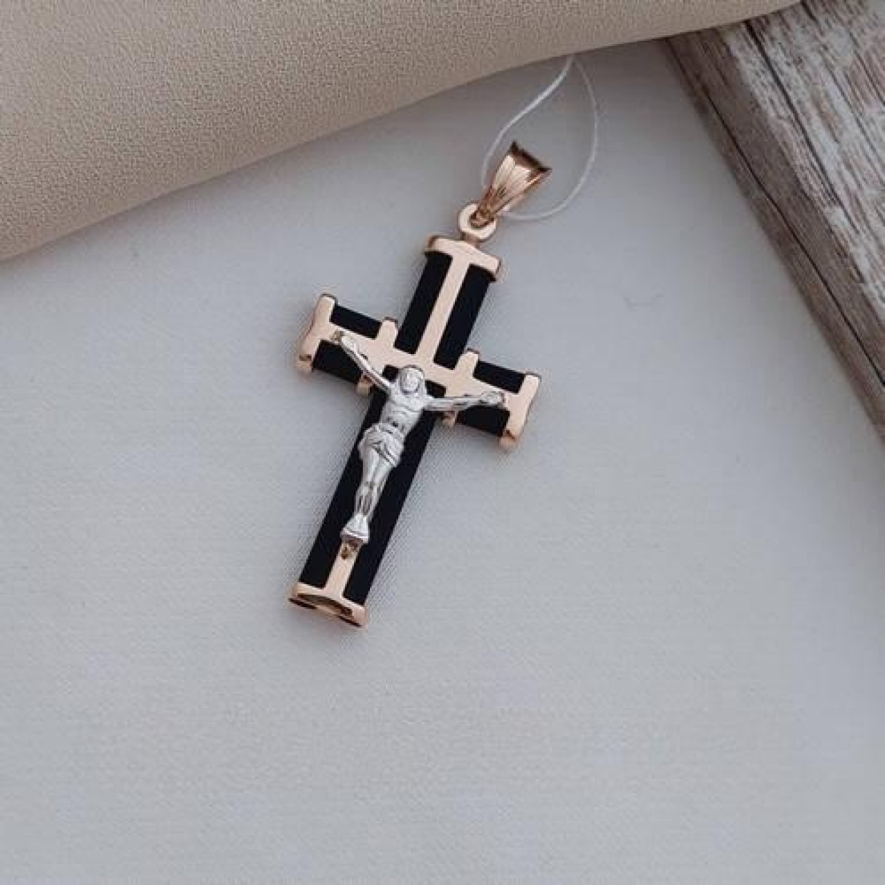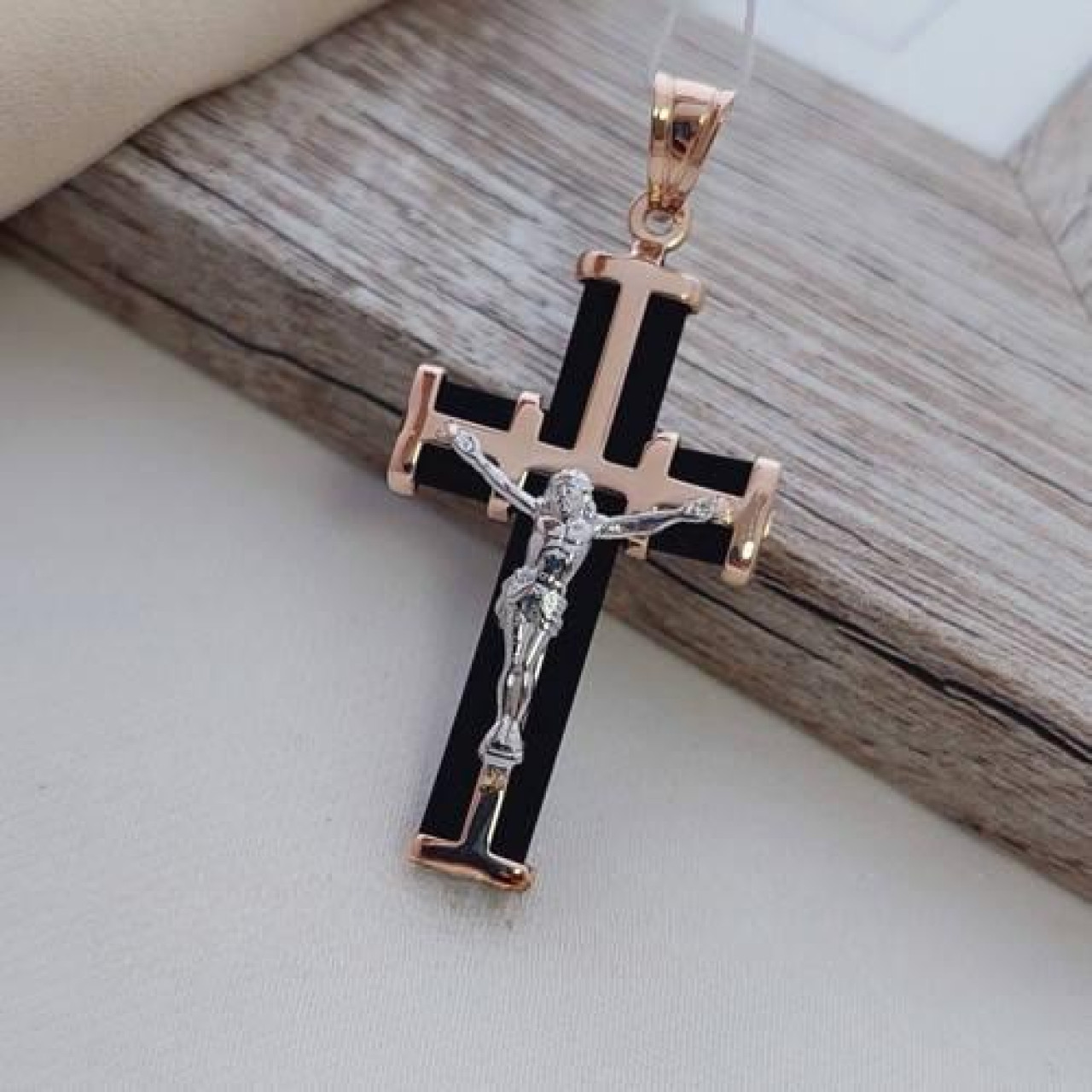 Хрестик каучуковий з білим і жовтим золотом з розп'яттям