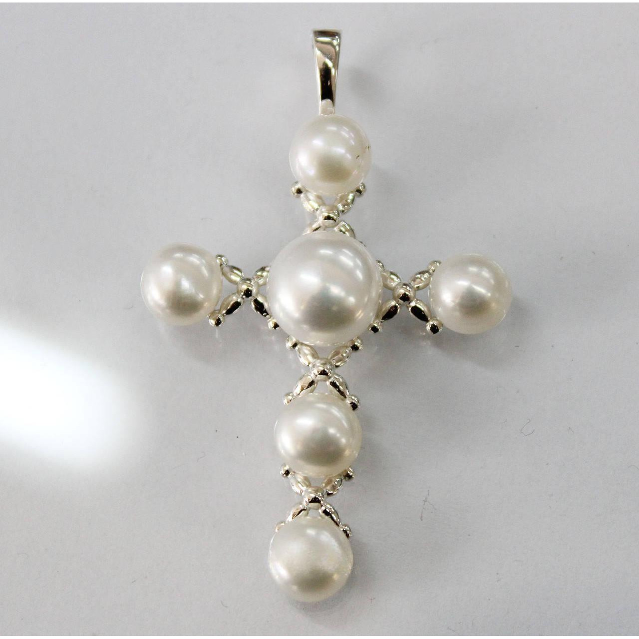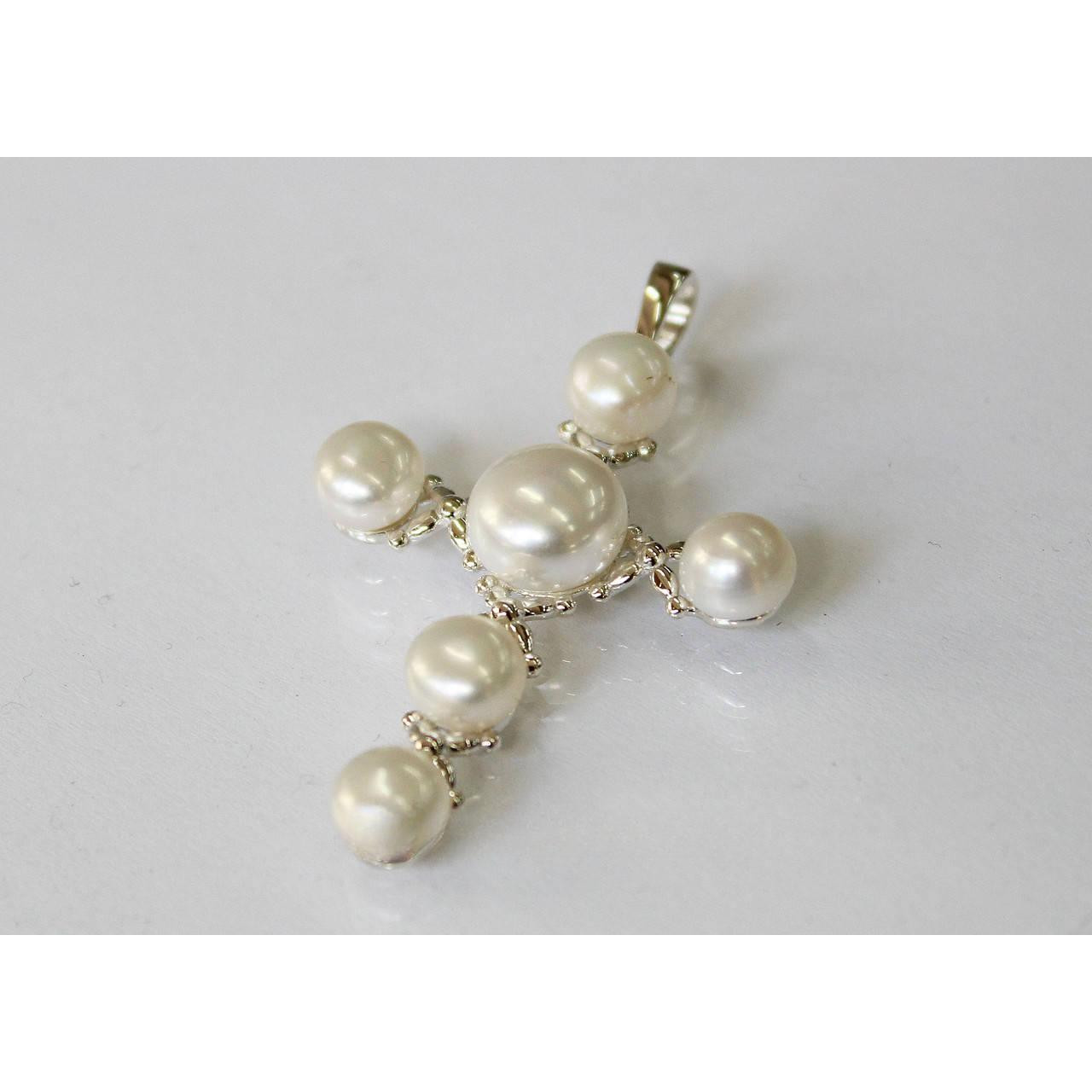 Срібний хрест 925 проби з перлами