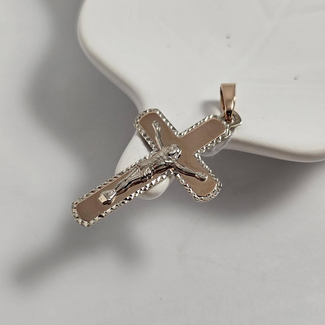 Хрест православний з білого і жовтого золота прямий з розп'яттям 1.87