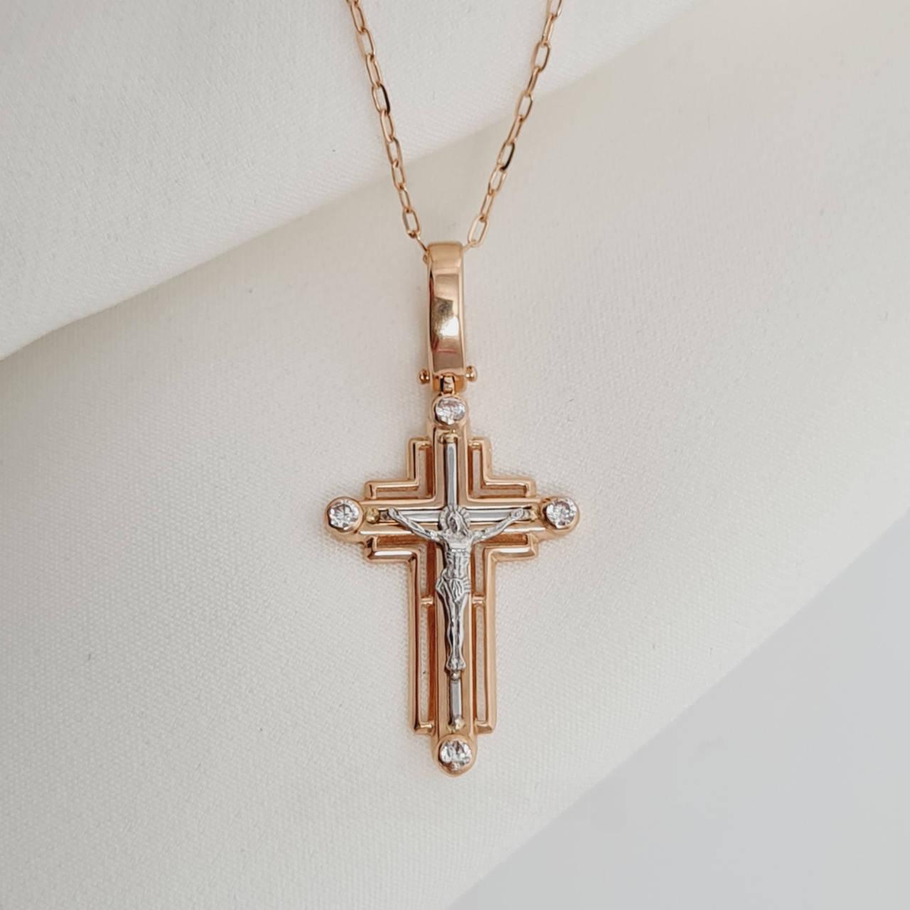 Золотий хрестик з розп'яттям з білого і жовтого золота 270086-т-11 2.76 - це не просто прикраса, а глибокий духовний символ, що з'єднує віру і ювелірне мистецтво. Основна частина виробу виготовлена з теплого жовтого золота, на тлі якого яскраво виділяється образ Спасителя, виконаний із білого золота. Цей контраст підкреслює центральну фігуру розп'яття, привертаючи увагу до найважливішого - жертви, принесеної в ім'я любові, прощення і порятунку людства. На зворотному боці хрестика нанесено напис Спаси і Збережи - коротка, але сповнена сенсом молитва, що супроводжує вірянина на його життєвому шляху, зміцнюючи в скрутні моменти та даруючи відчуття внутрішнього спокою. Хрестик із золота 270086-т-11 2.76 прекрасно поєднується як з класичним ланцюжком, так і з ювелірним шнуром, даючи змогу підібрати стиль під будь-який образ - від суворого і повсякденного до більш урочистого. Універсальна форма і стримана естетика роблять його придатним як для чоловіків, так і для жінок. Хрестик виготовлений із золота 585 проби і щоб він завжди залишався блискучим, за ним необхідний відповідний догляд. Золотий хрестик необхідно періодично протирати шматочком фланелі та мікрофібри.