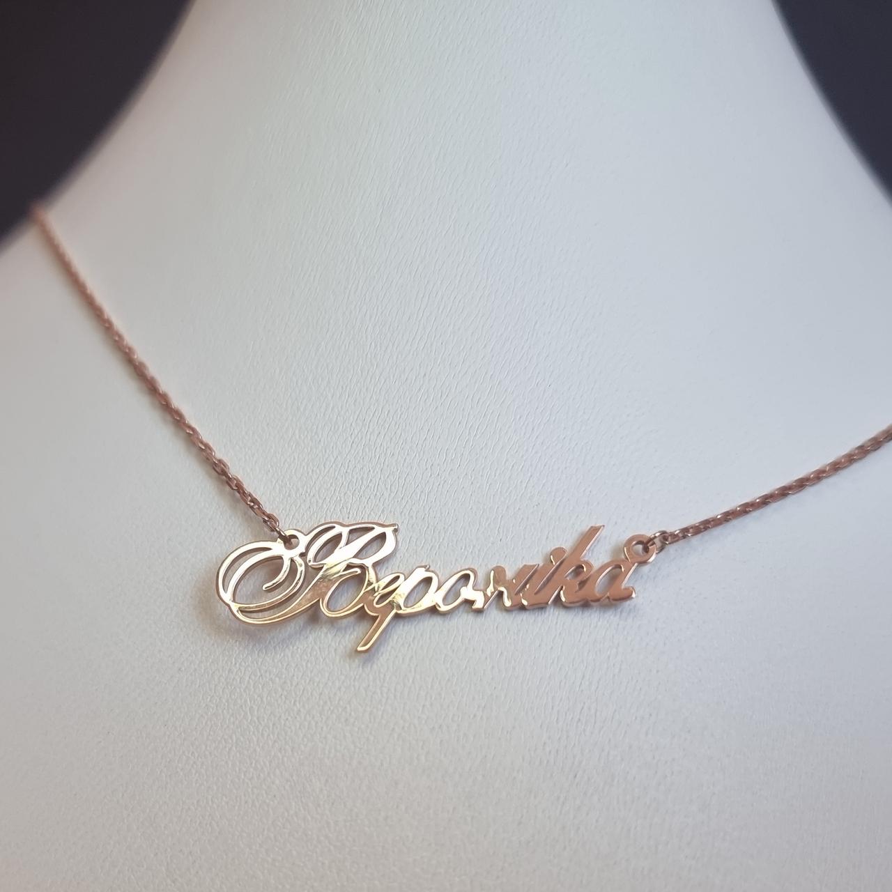 Тендітне срібне іменне кольє з позолотою Вероніка з найвищою срібною пробою 925, і золотом 585 проби, які чудово переливаються та виблискують на денному й штучному світлі. Прикрасу виготовляємо на замовлення будь-якого імені або напису. Маємо великий вибір різного гравіювання, а також можете створити своє індивідуальне. Обирайте із якого саме металу хочете замовити. Вибір між сріблом, золотом та срібло в позолоті. Ця прикраса може слугувати подарунком для всіх вікових категорій, будьте певні, що мама, бабуся чи дівчина будуть у захваті від подарованого Вами кольє. Іменне кольє робимо в розмірах від 35 до 60 см.
