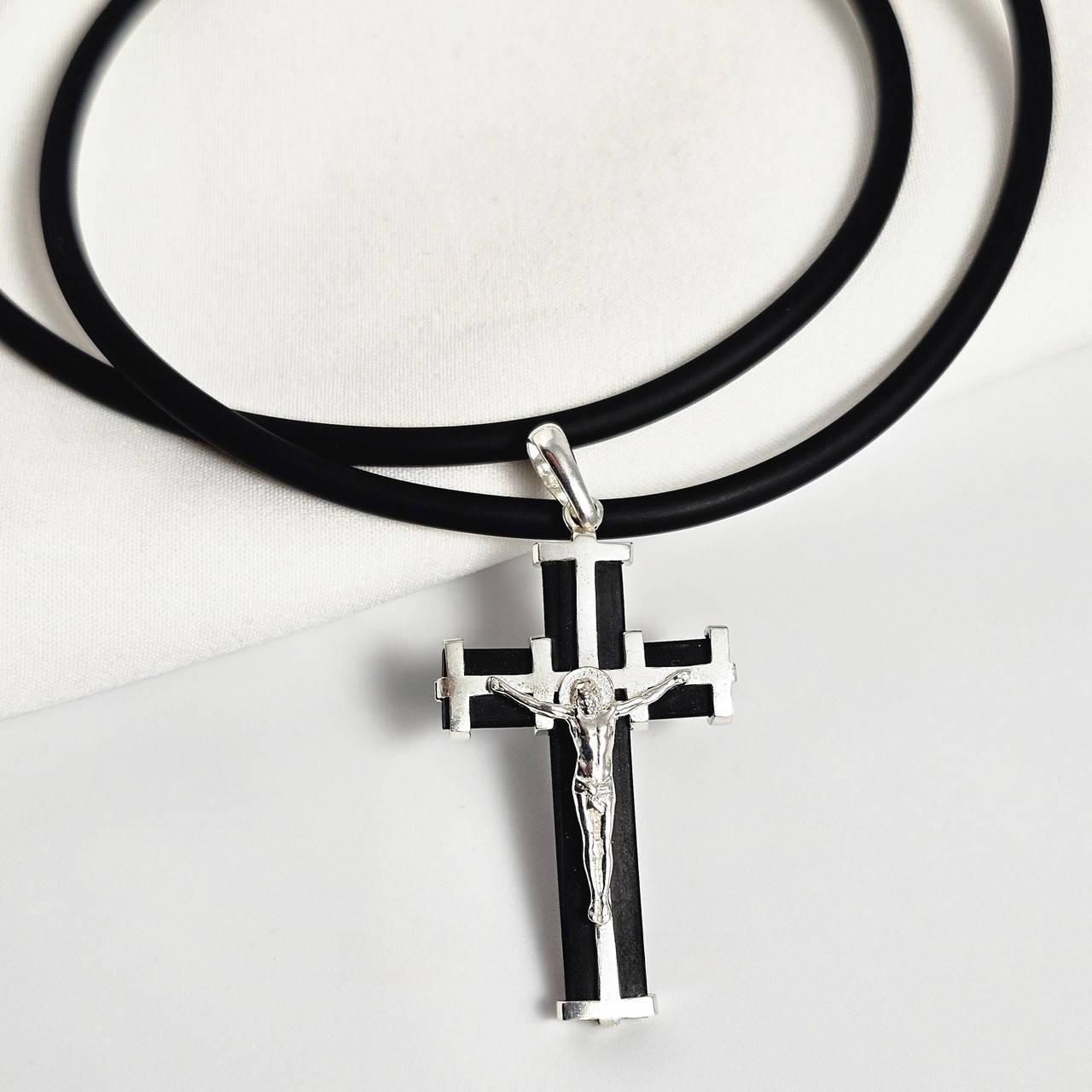 Комплект із каучуку та срібла кольє і хрестик із розп'яттям