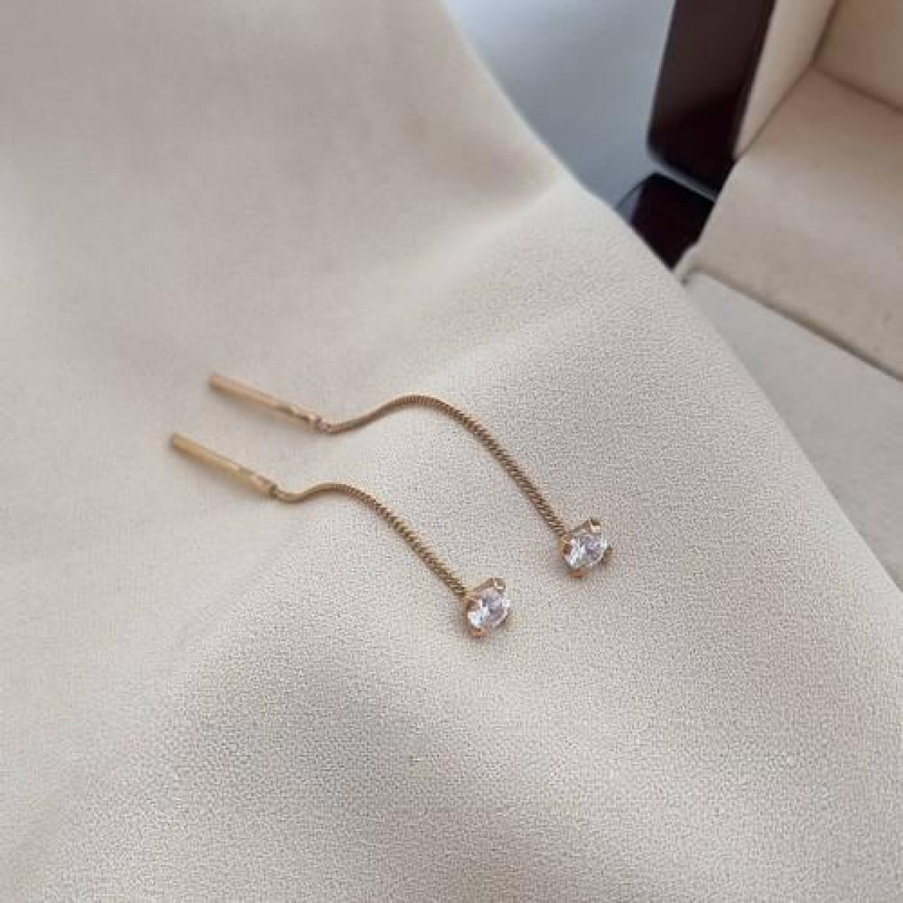 Комплект позолочена каблучка подвійна та позолочені сережки протяжки зі срібла з кубічними цирконами
