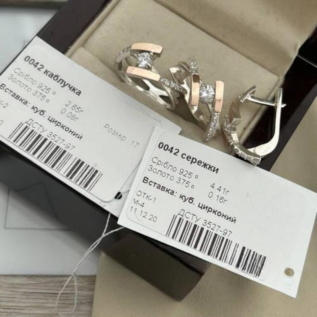 Срібний масивний комплект із золотими пластинами і цирконами 0042-14 - привертає увагу своїм блиском і витонченим дизайном. У центрі кожної прикраси розташовані круглі білосніжні циркони, що сяють, наче маленькі зірки в нічному небі. Срібні смужки, які підтримують циркони, додають комплекту особливого шарму. Смужки візуально поділені на дві частини - одна половина цих смужок прикрашена блискучою золотою напайкою, тоді як друга половина всипана крихітними білими цирконами. Це створює надзвичайний контраст. Каблучка та сережки зі срібла з золотими напайками 0042-14 матимуть чудовий вигляд із повсякденним образом, надаючи йому частку вишуканості та блиску. Вони також ідеально підійдуть для ділового костюма, розбавляючи його строгість і надаючи вишуканості. На урочистих заходах ці прикраси підкреслять вашу елегантність і додадуть загадковості вашому вигляду. Срібні сережки з золотом, що мають надійні англійські замки, надійно триматимуться в мочках вух. Каблучка зі срібла з золотими напайками має наступні розміри: 15, 15,5, 16, 16,5, 17, 17,5, 18, 18,5, 19, 19,5, 20, 20,5, 21. Виготовлений комплект прикрас зі срібла 925 проби та золота 375 проби. Догляд за таким ювелірним гарнітуром дуже простий - раз на місяць промивайте його в мильній воді та просушуйте рушником, і він буде радувати вас дуже довго своїм блиском і сяйвом.