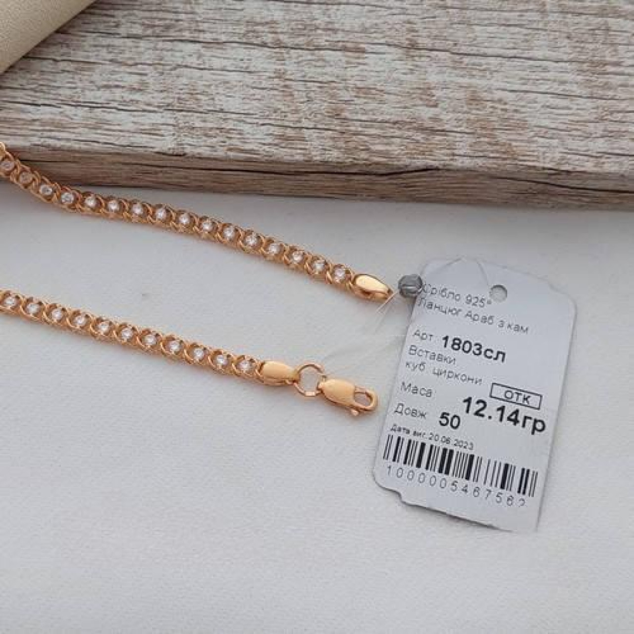 Ланцюжок зі срібла з позолотою з плетінням Арабський Бісмарк 1803сл поз-2 50см 12.14 ідеально підійде в якості подарунка для коханої людини, яка оцінить її витончений дизайн і високу якість виконання. Цей аксесуар стане символом вашої турботи і любові, супроводжуючи власника в найважливіші моменти життя. Підберіть до ланцюжка коробочку футляр, щоб її було зручно зберігати. З вибором коробочки вам допоможуть наші консультанти, вони ж нададуть і додаткову інформацію по ланцюжку.