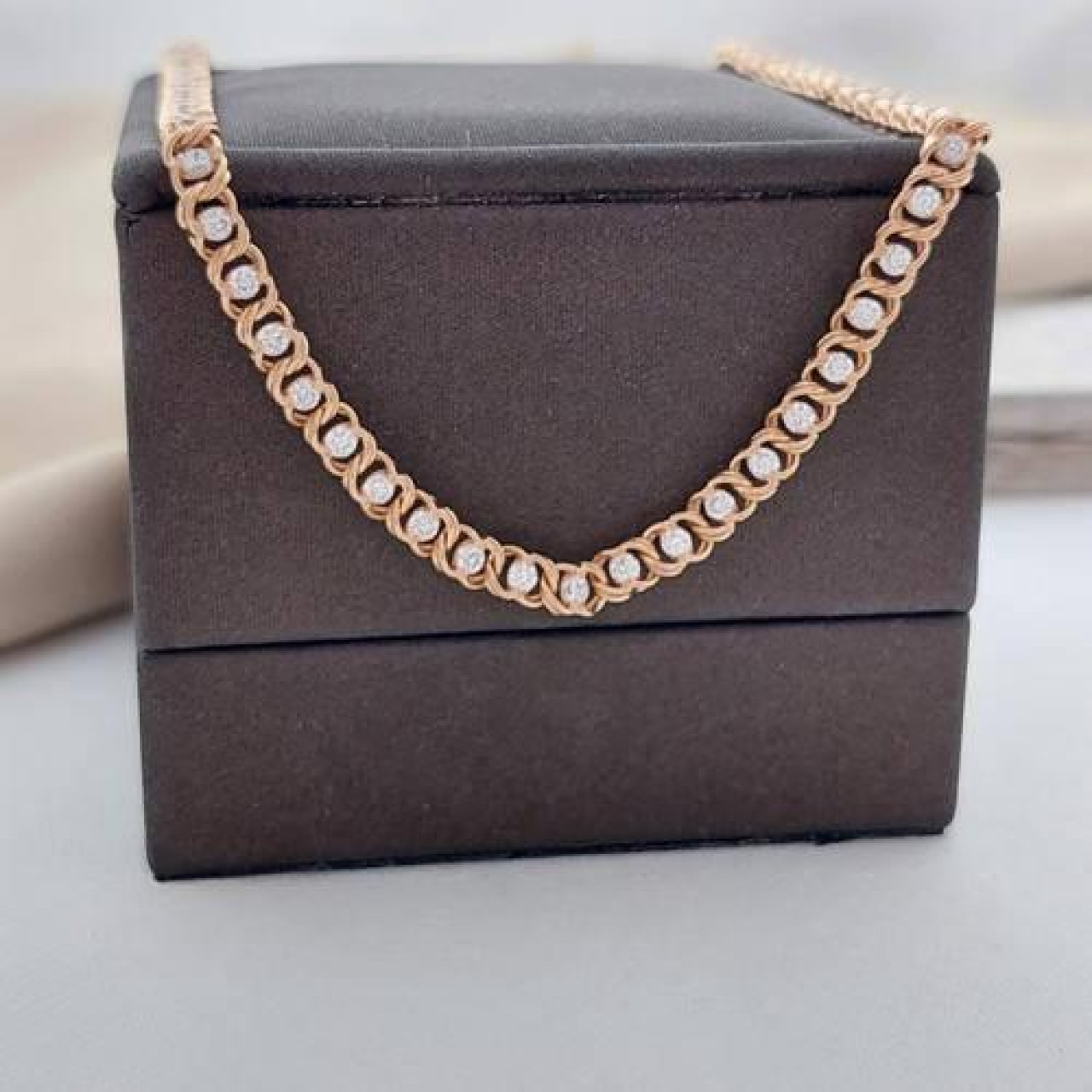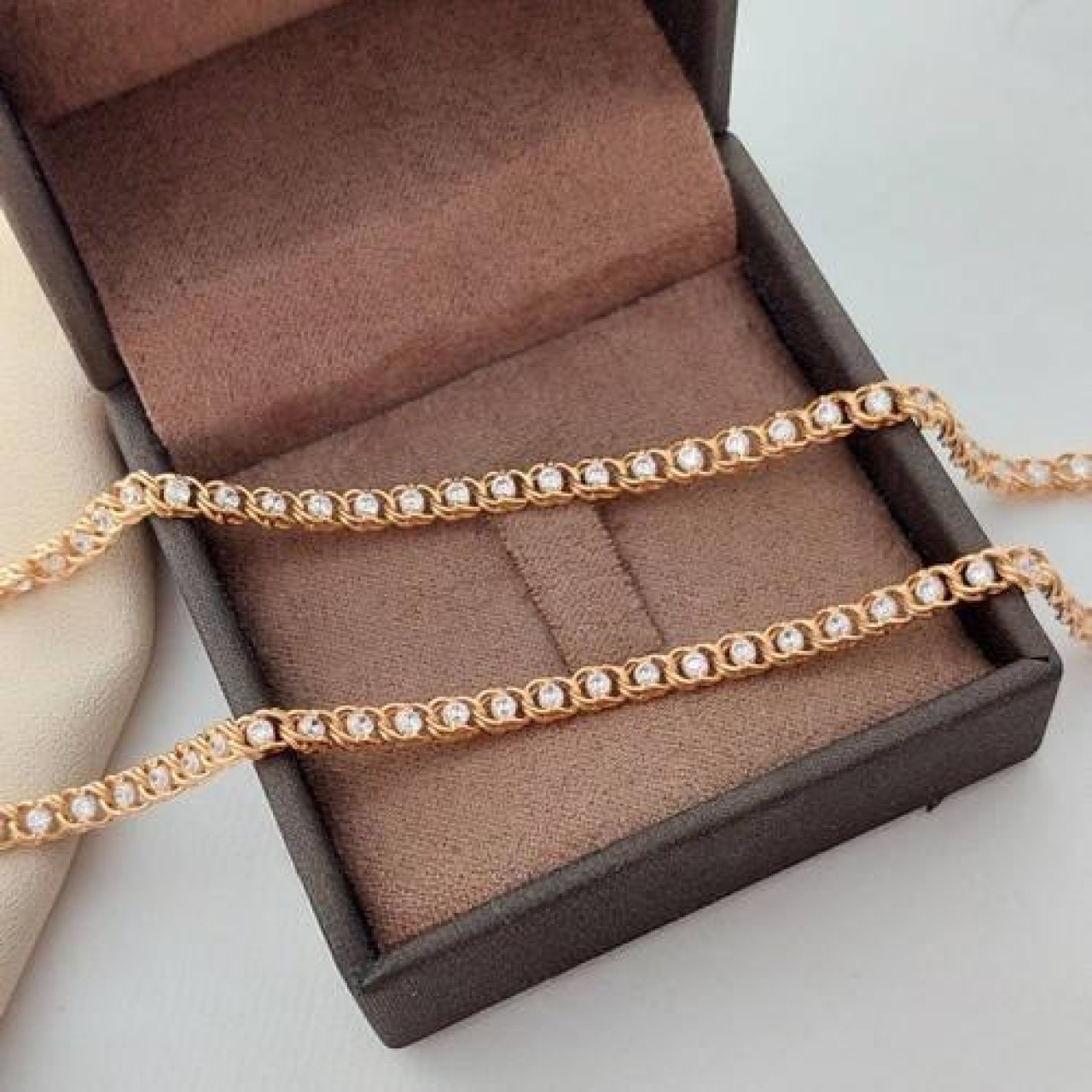 Ланцюжок позолочений з плетінням Арабський Бісмарк з цирконами супер легкий 12.14
