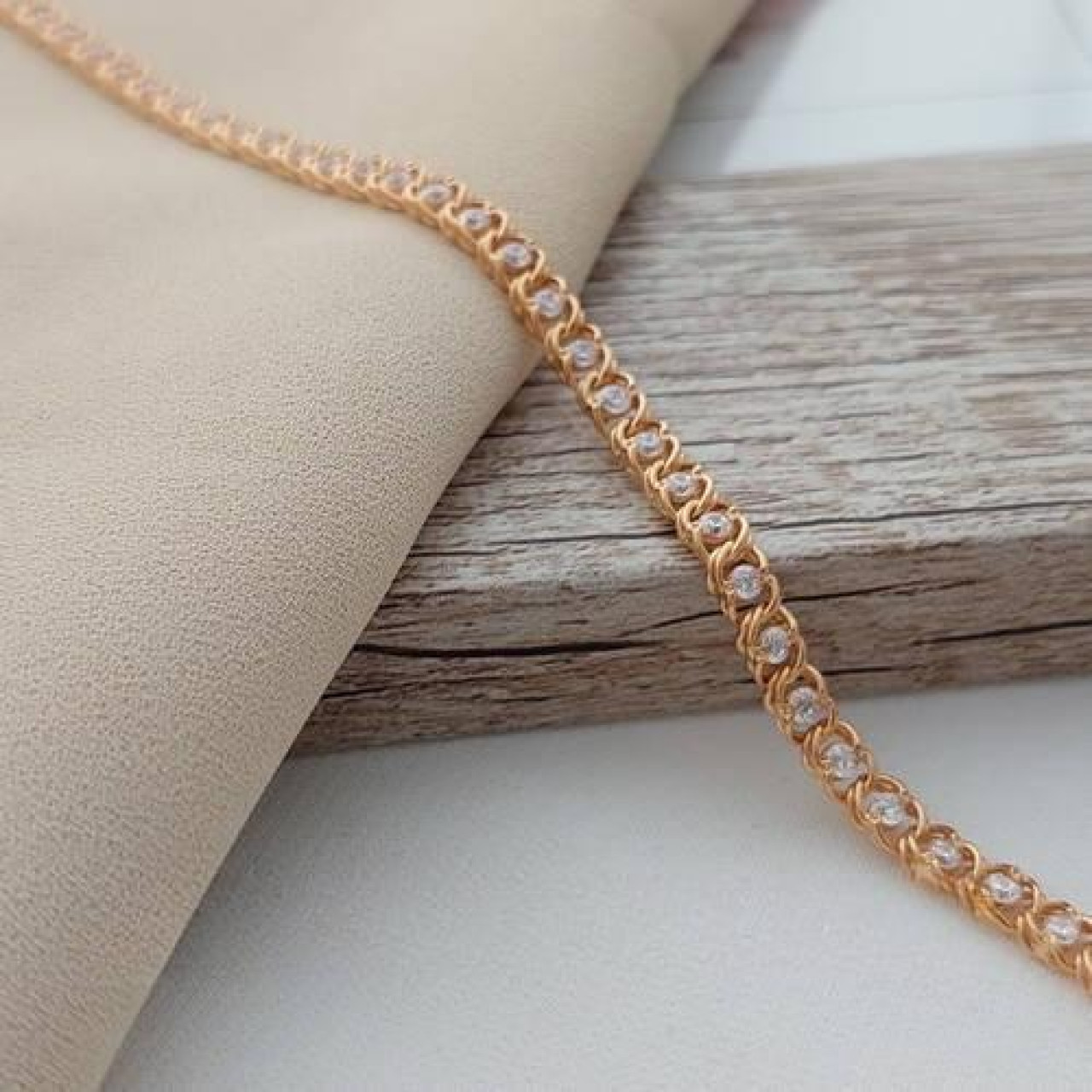 Ланцюжок срібний з позолотою плетінням Арабський Бісмарк і цирконами супер легкий 12.60