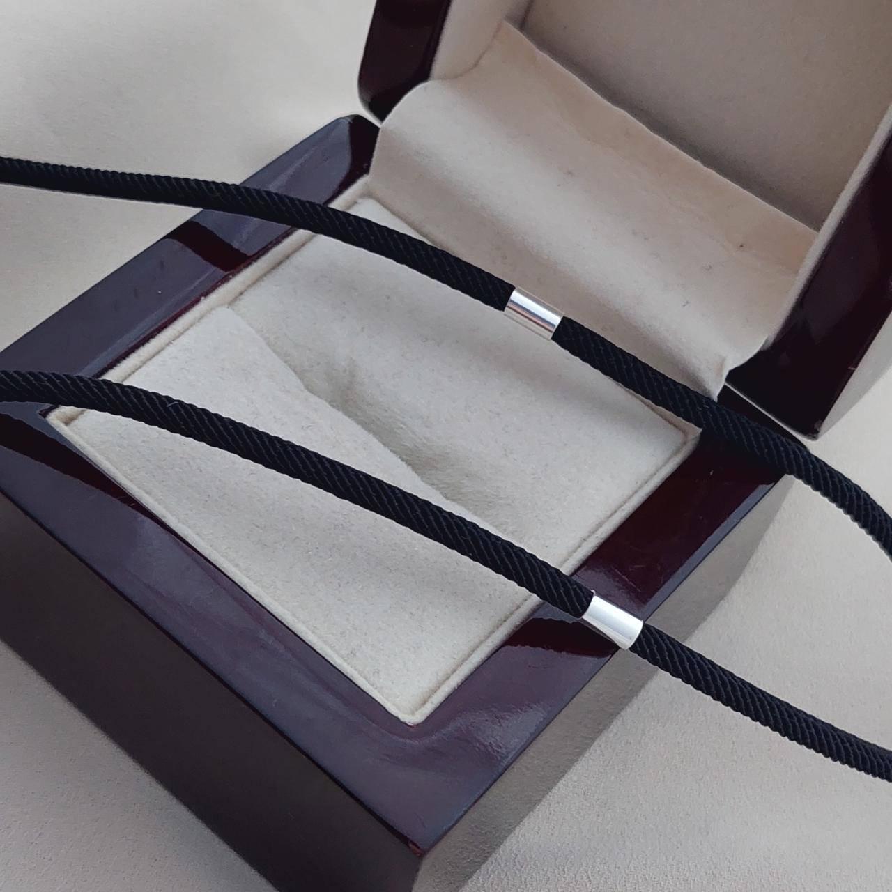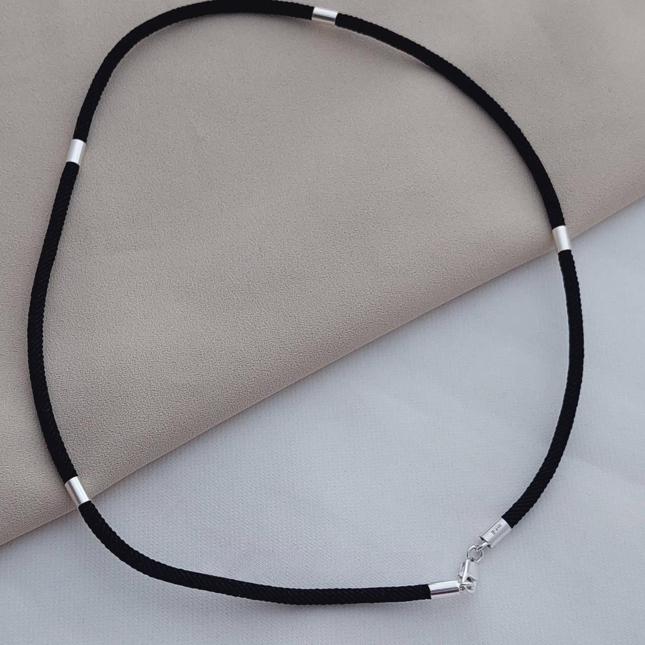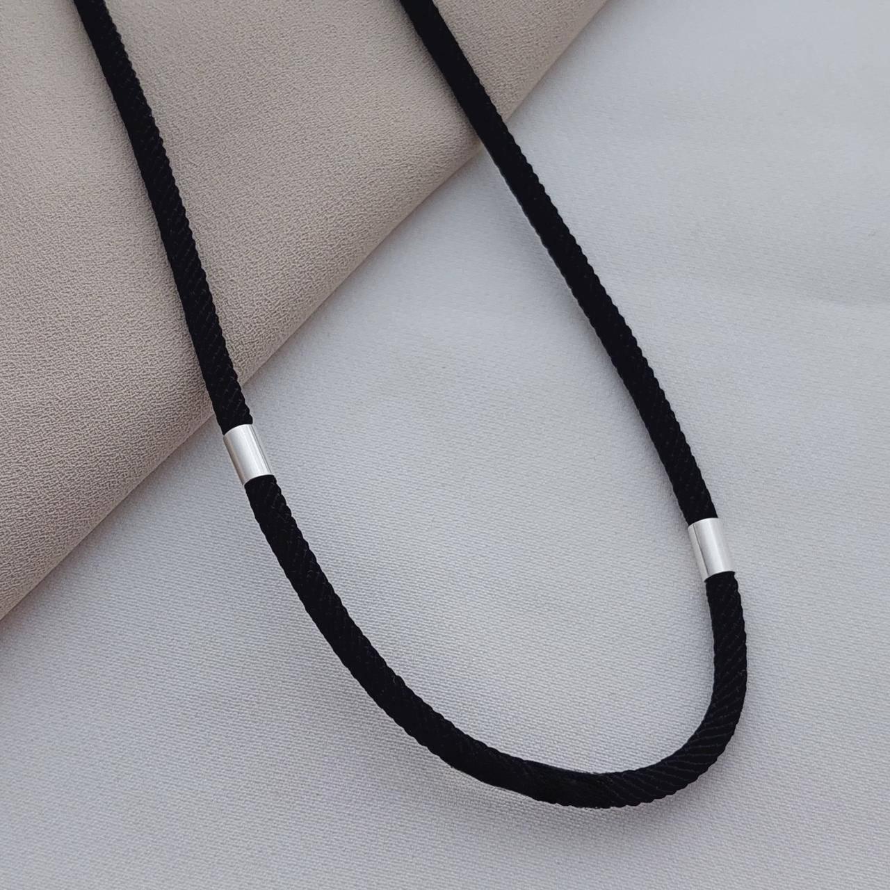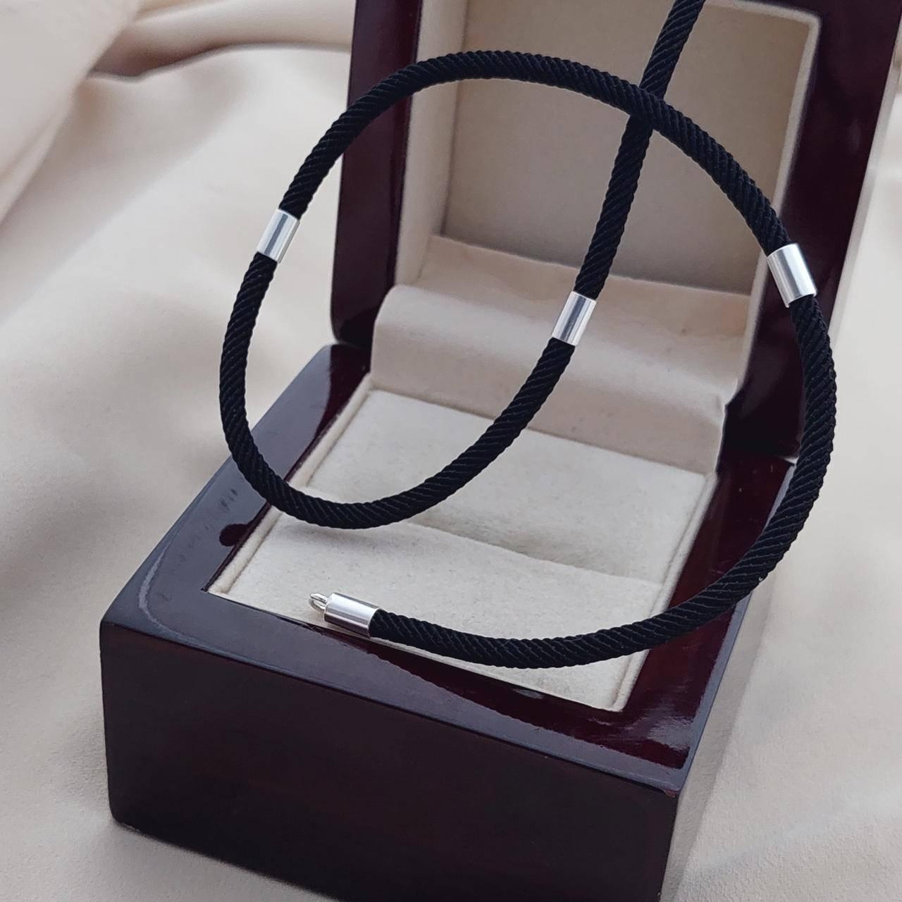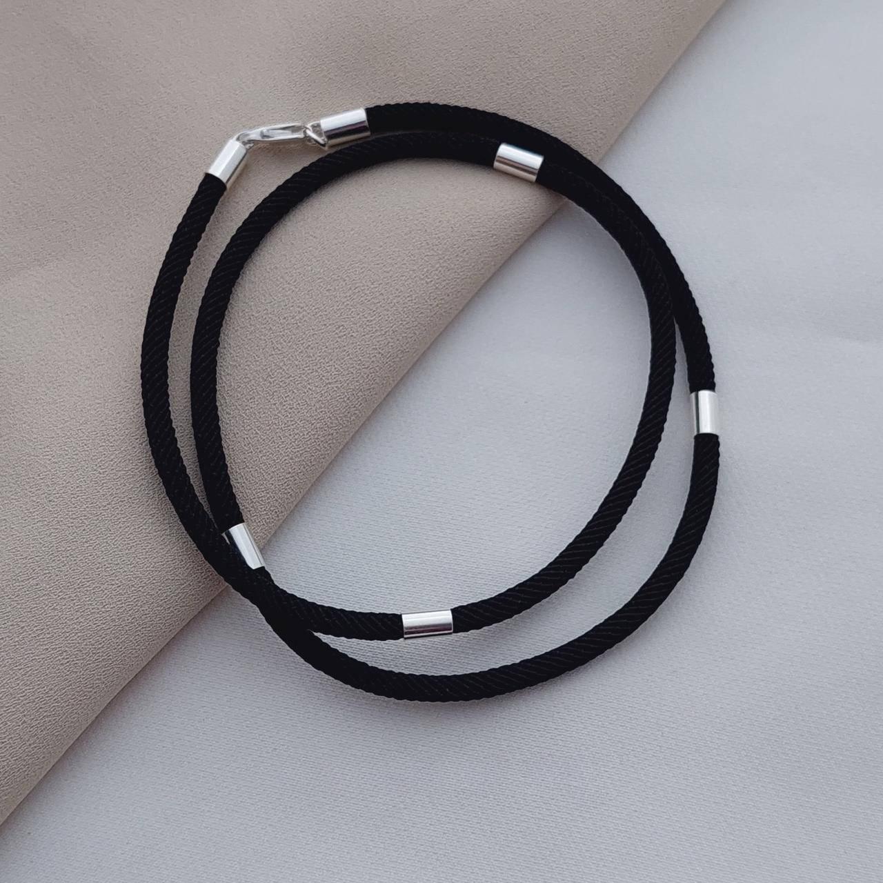 Шнурок чорний зі срібними вставками ювелірний тканинний на шию