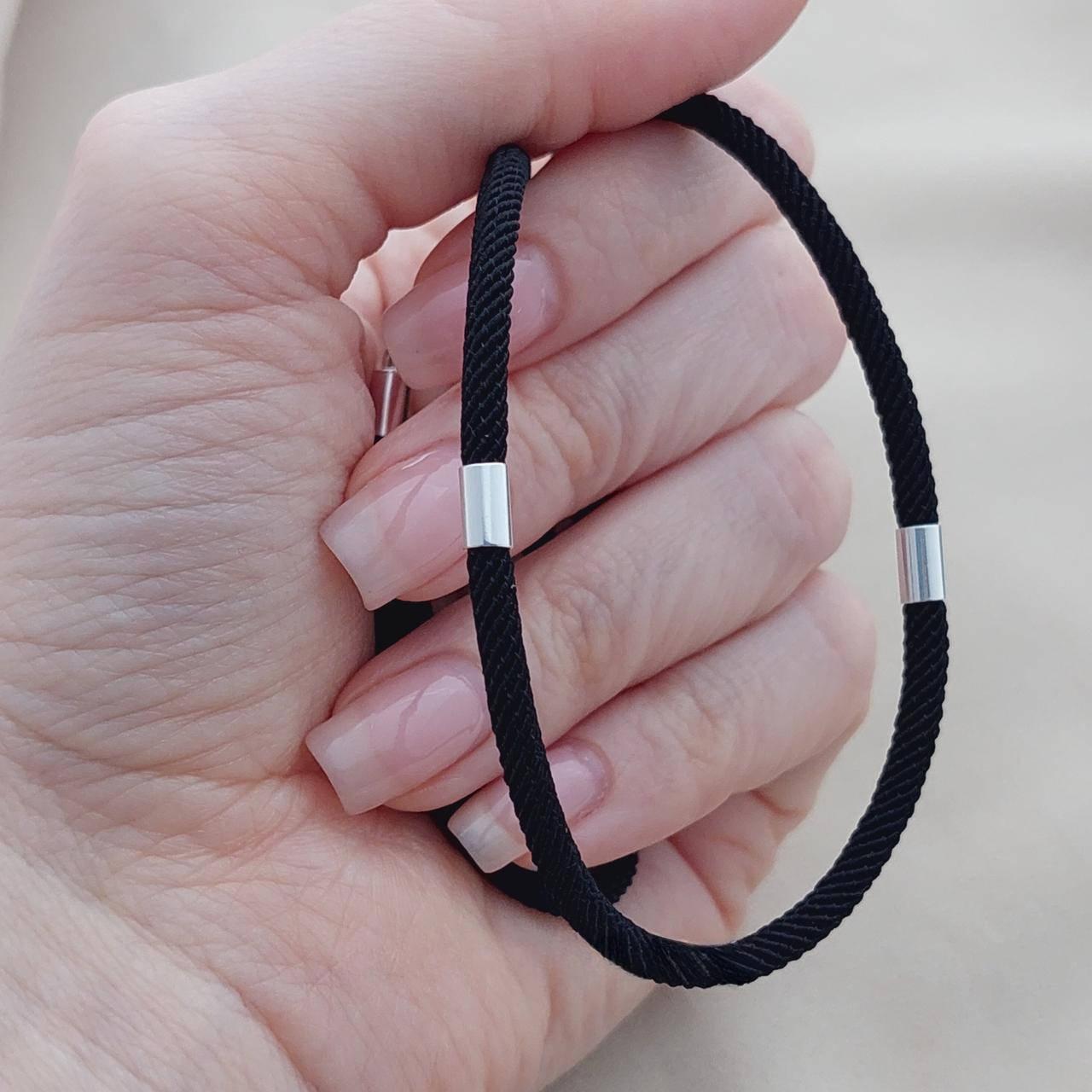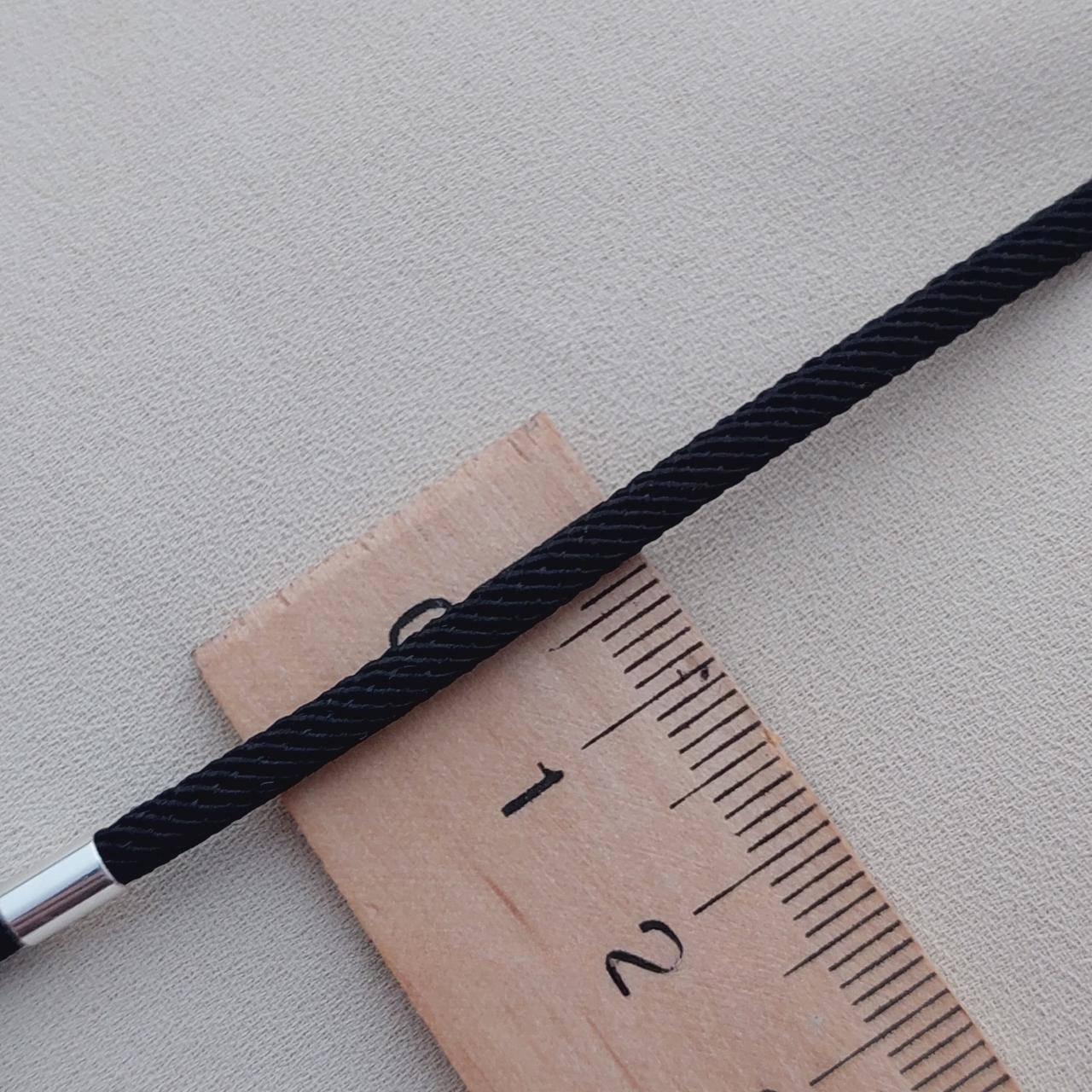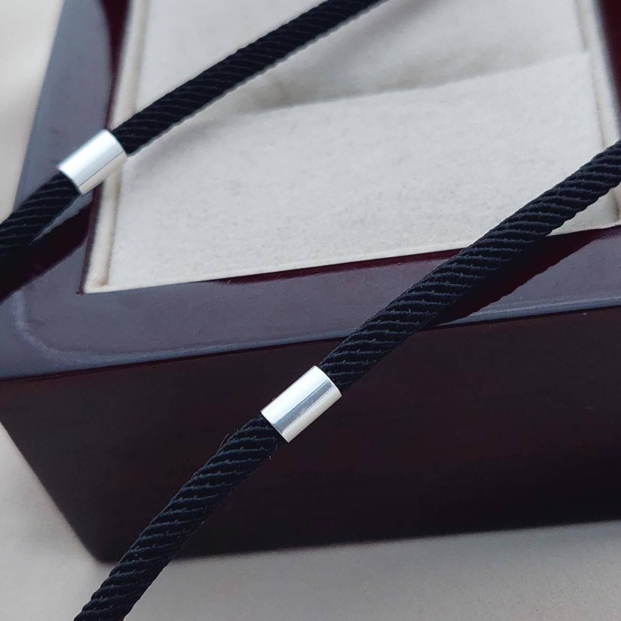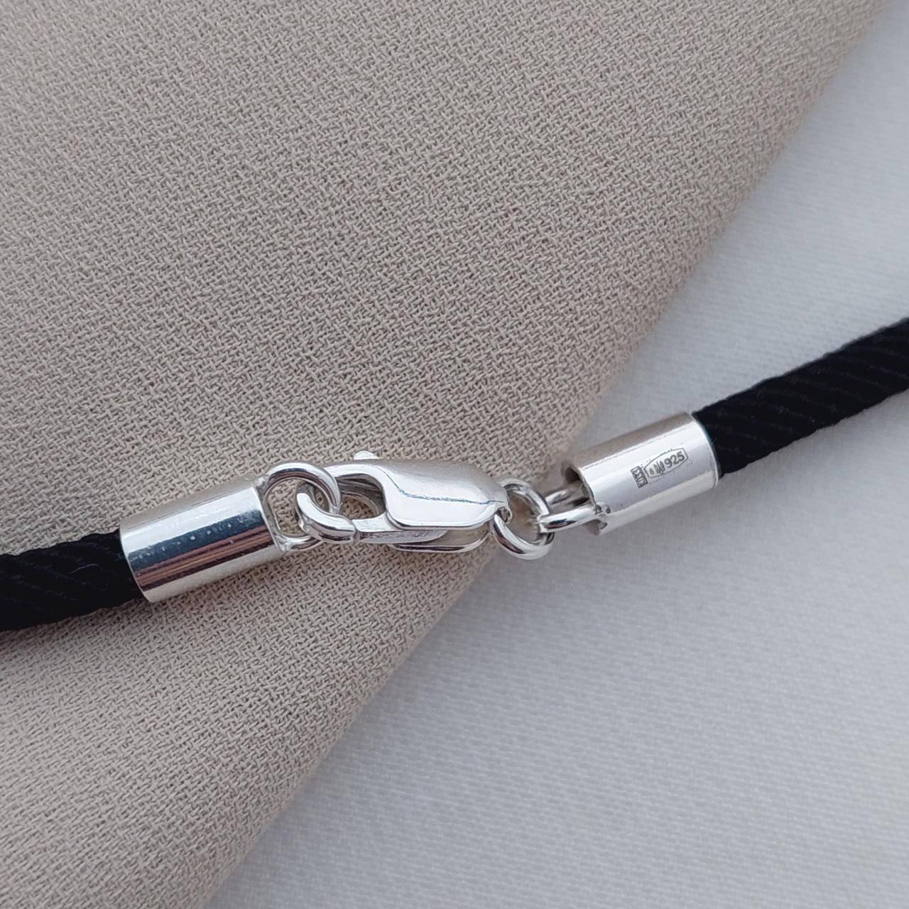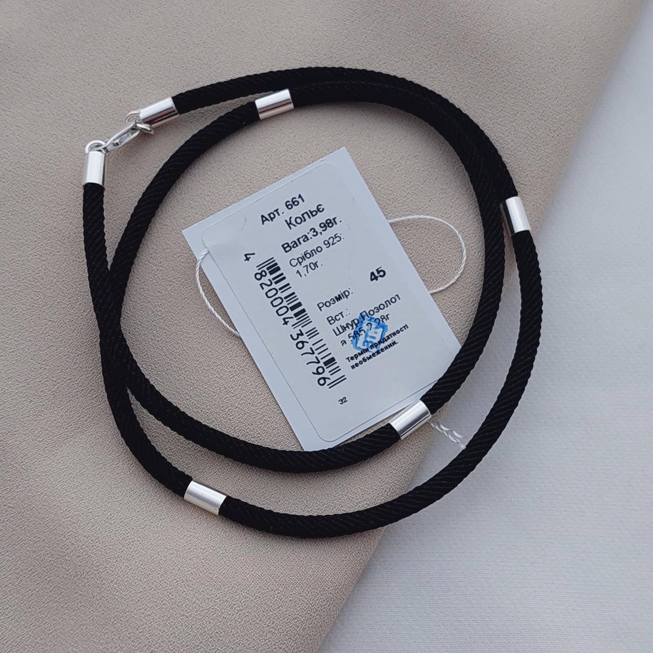 Шнурок чорний зі срібними вставками ювелірний тканинний на шию