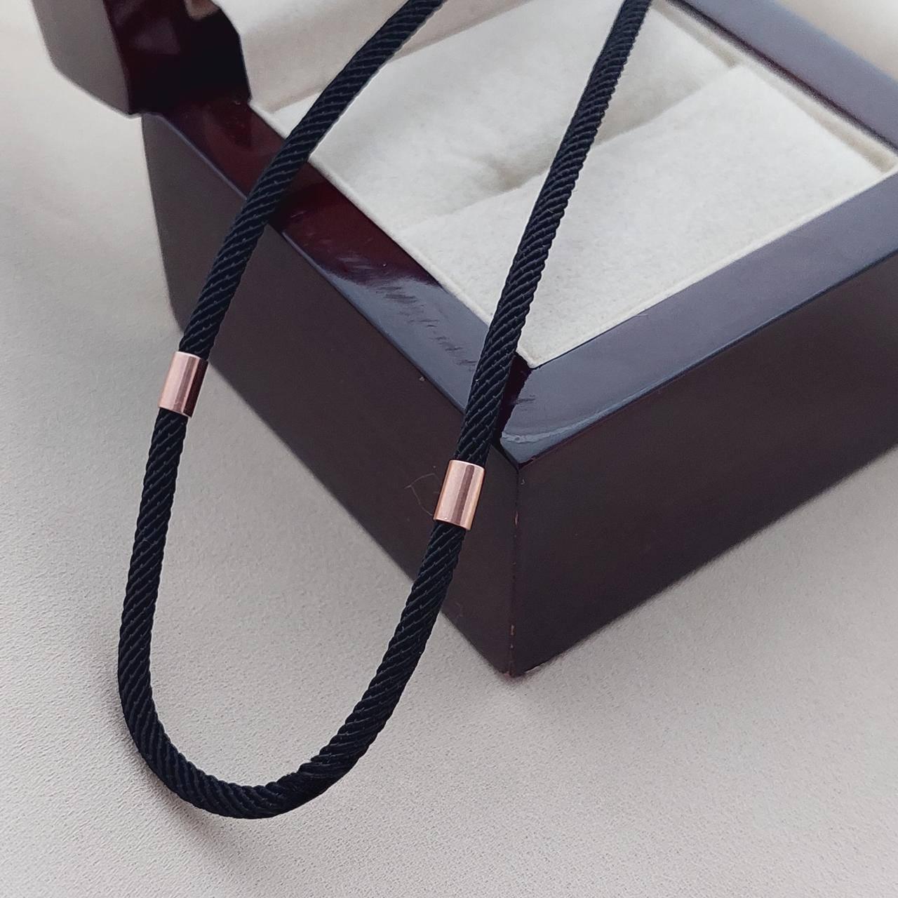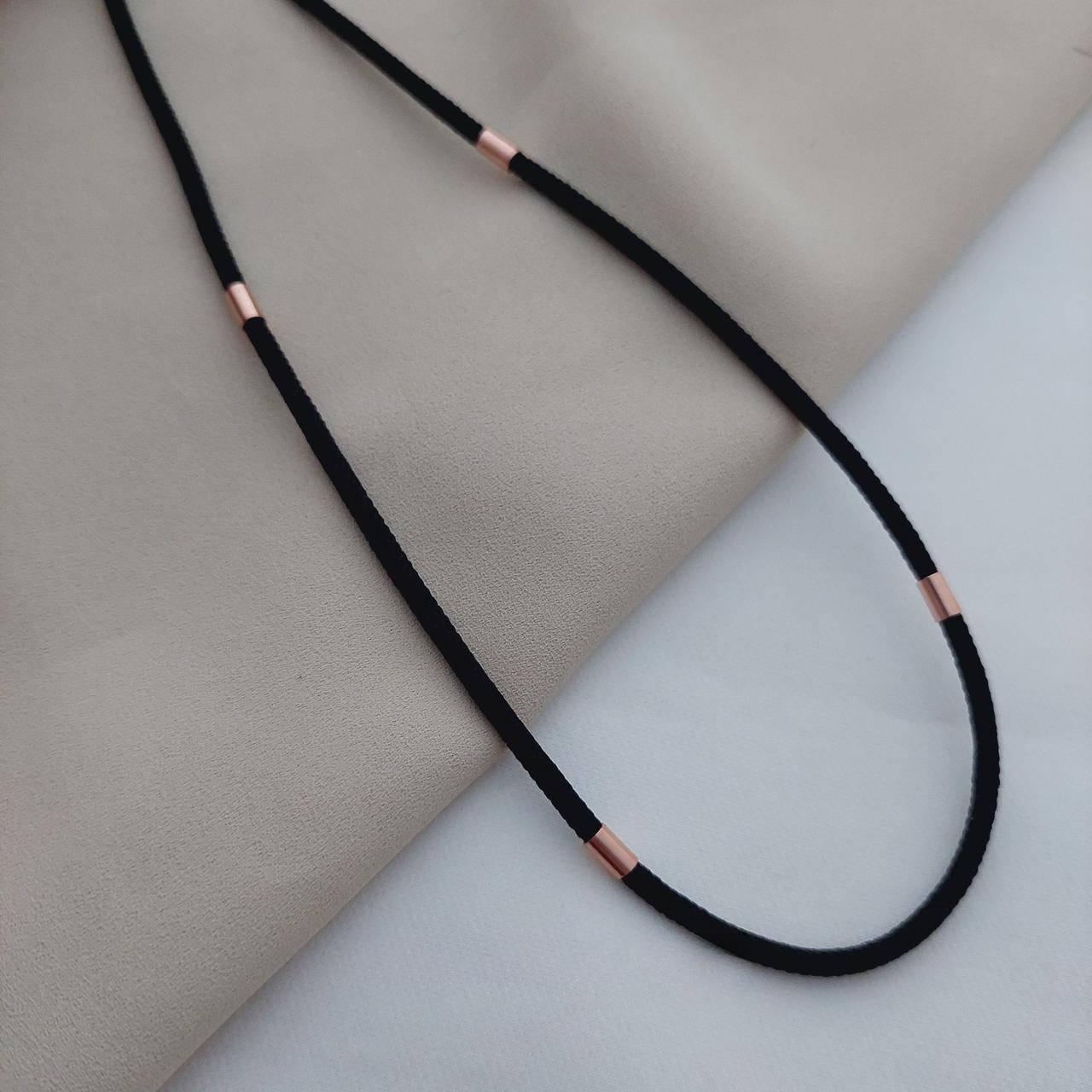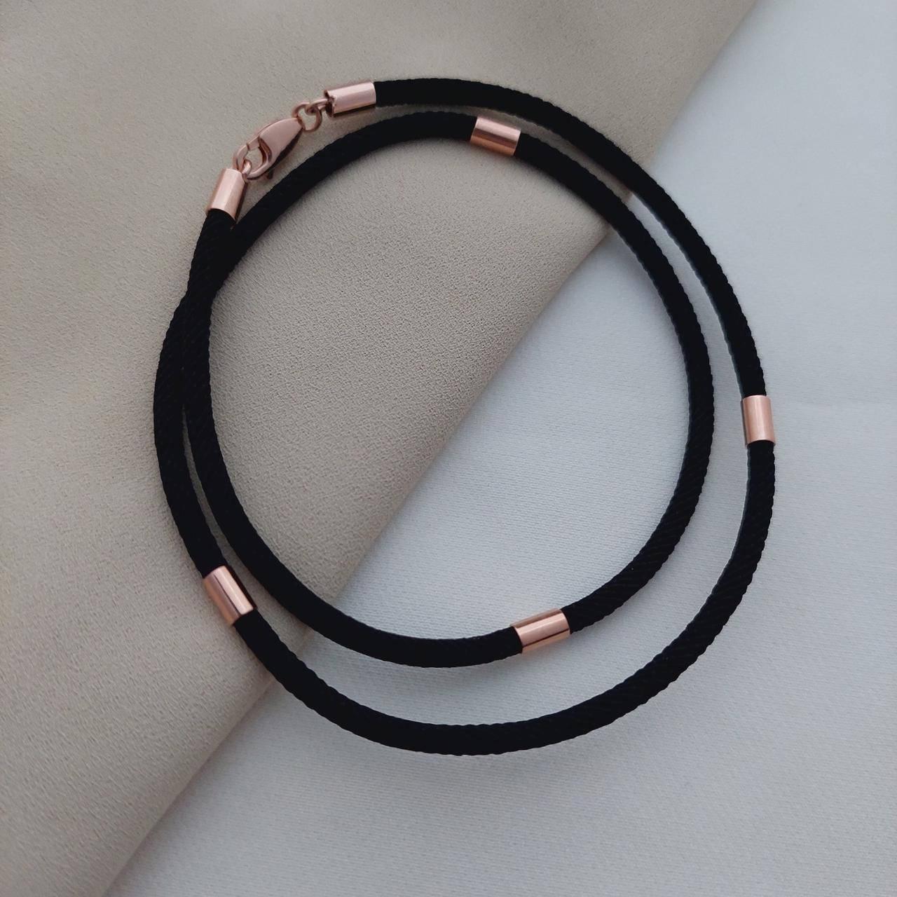 Шнурок джгут срібний з позолоченими вставками на шию чорний