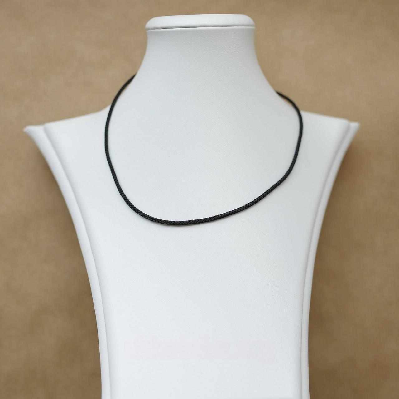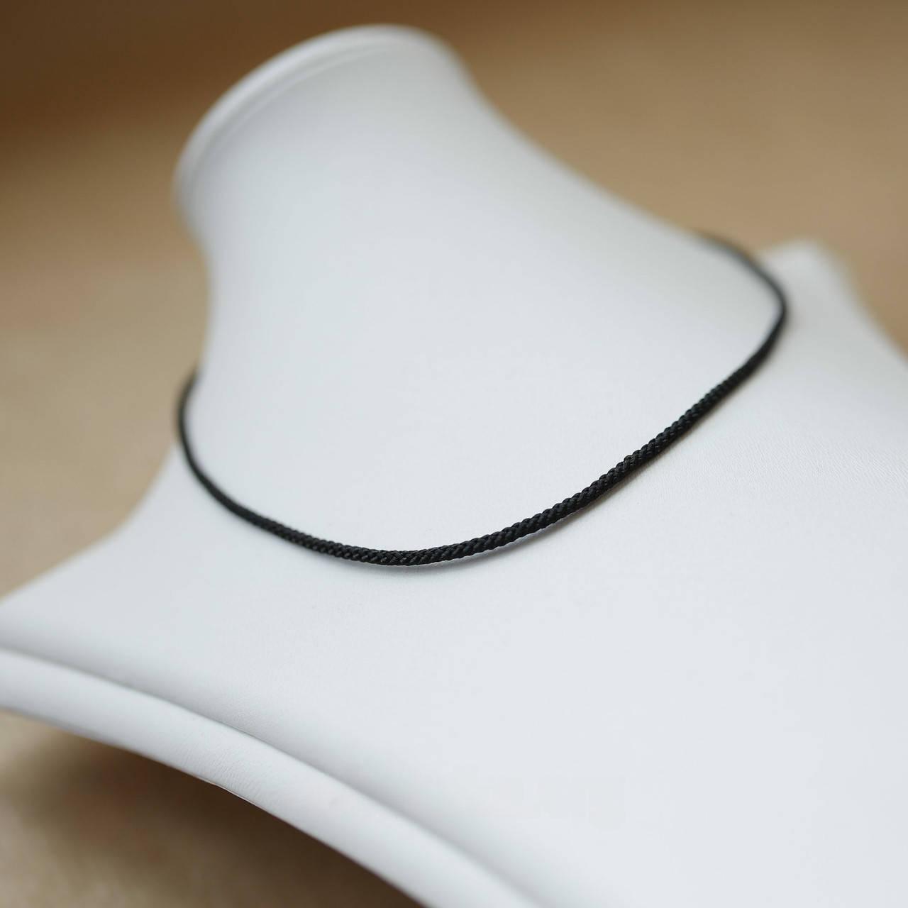Красиве шовкове кольє чорного кольору – вдалий вибір для подарунка як чоловікам, так і жінкам, оскільки прикраса повністю універсальна. Кольє може бути зі срібними вставками, срібними в позолоті та золотими. Замочок йде також із металу. Виріб прикрашатиме ваш повсякденний вигляд, або буде ідеально підкреслювати особливе вбрання. Дана модель виготовлена з шовку, срібла високої 925 проби та золотом 585 проби. Кольє виготовляємо завдовжки, стандартні розміри від 40 до 60 см.