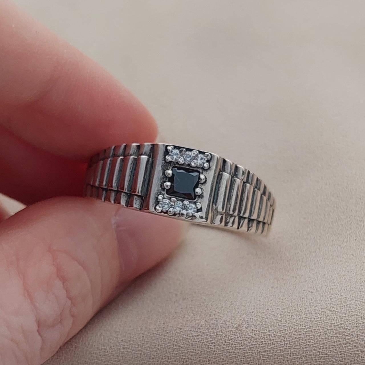 Перстень срібний з оніксом і фіанітами чоловічий