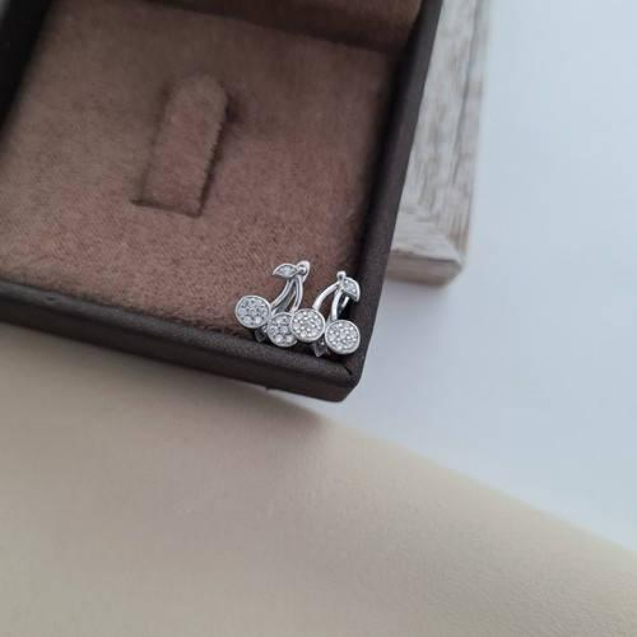 Срібні сережки вишеньки з білими фіанітами