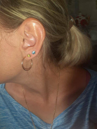 Срібло позолочене - повністю гіпоалергенний матеріал, тож вироби з нього не подразнюють шкіру та не викликають будь-якого дискомфорту при носінні. Пусети срібні з позолотою та жовто-блакитними камінцями - це вдале поєднання краси, глибокого сенсу та практичної цінності. Проста прикраса здатна задовольнити всі потреби сьогодення. Більш того, вони можуть стати просто ідеальним подарунком для близької людини, на добру пам’ять. Сережки пусети гвоздики універсально підійдуть для подарунку просто так, чи на знакову подію. Все буде Україна!