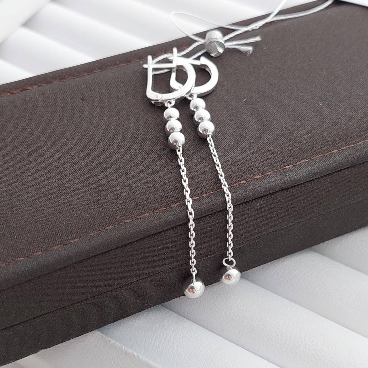 Срібні довгі сережки стануть справжньою окрасою вашої ювелірної колекції. Ці сережки мають унікальний дизайн з ланцюжками й кульками з блискучого срібла, що надають їм особливого шарму і краси. Срібні сережки привертають увагу своїм стильним виконанням. Ланцюжки та кульки мерехтять і поблискують під час потрапляння на них світла, створюючи легкий і грайливий ефект. Завдяки цьому, сережки стануть помітним акцентом і додадуть блиску вашому повсякденному образу. Сережки надійно тримаються в мочках вух за допомогою якісного англійського замка, забезпечуючи комфорт і безпеку носіння. Сережки-підвіски зі срібла стануть ідеальним доповненням до вашого образу і підкреслять вашу індивідуальність. Прикраса довго зберігатиме магазинний вигляд, якщо за нею правильно доглядати. Наприклад, намагайтеся знімати сережки зі срібла 925 проби перед взаємодією з водою або хімічними речовинами.